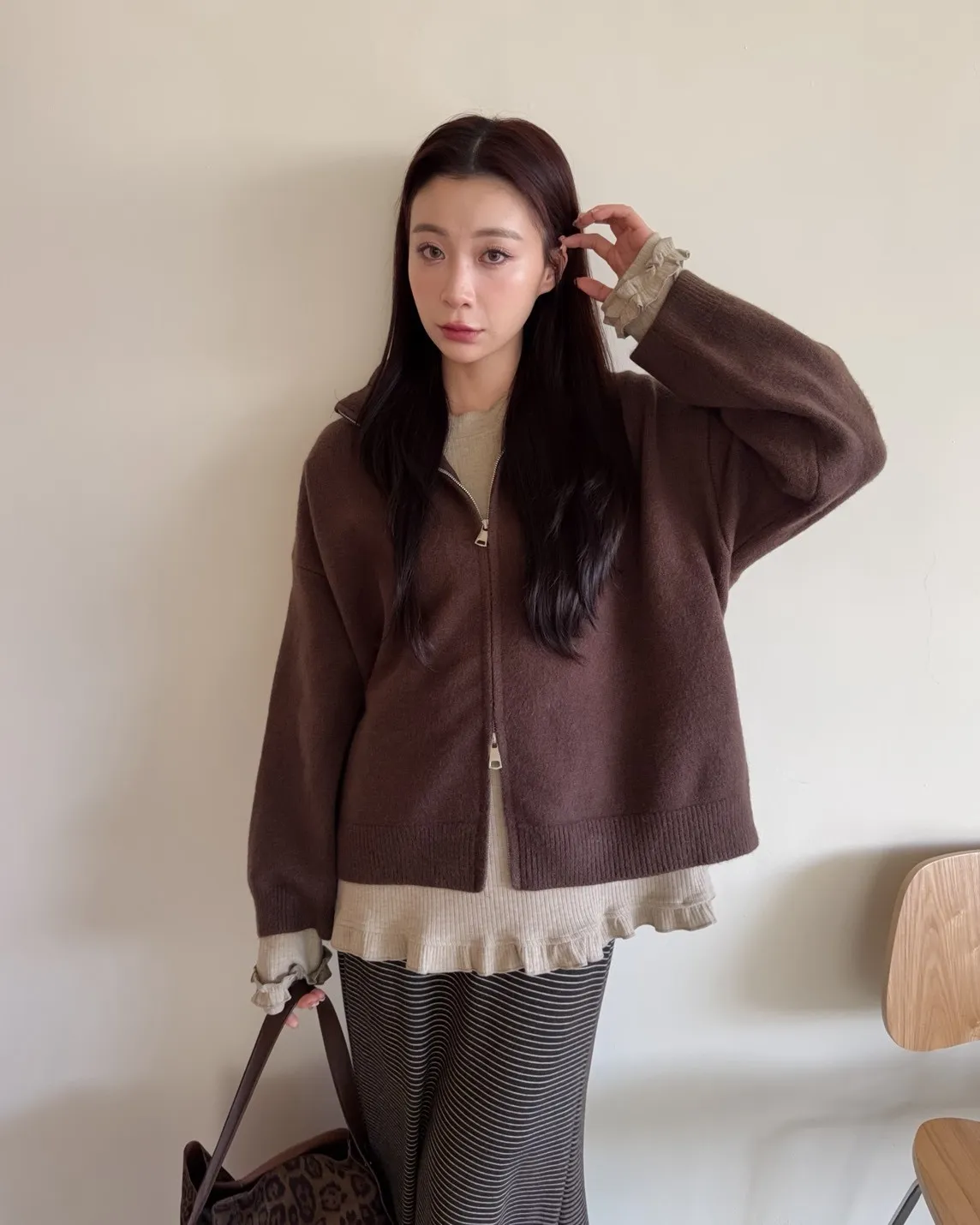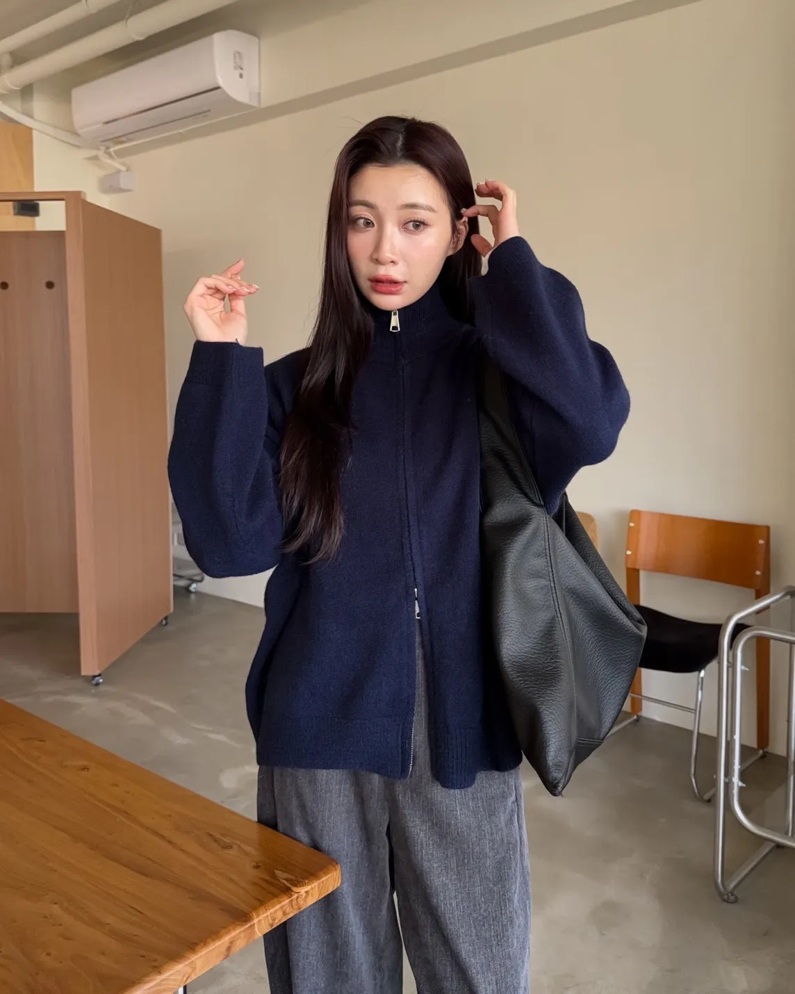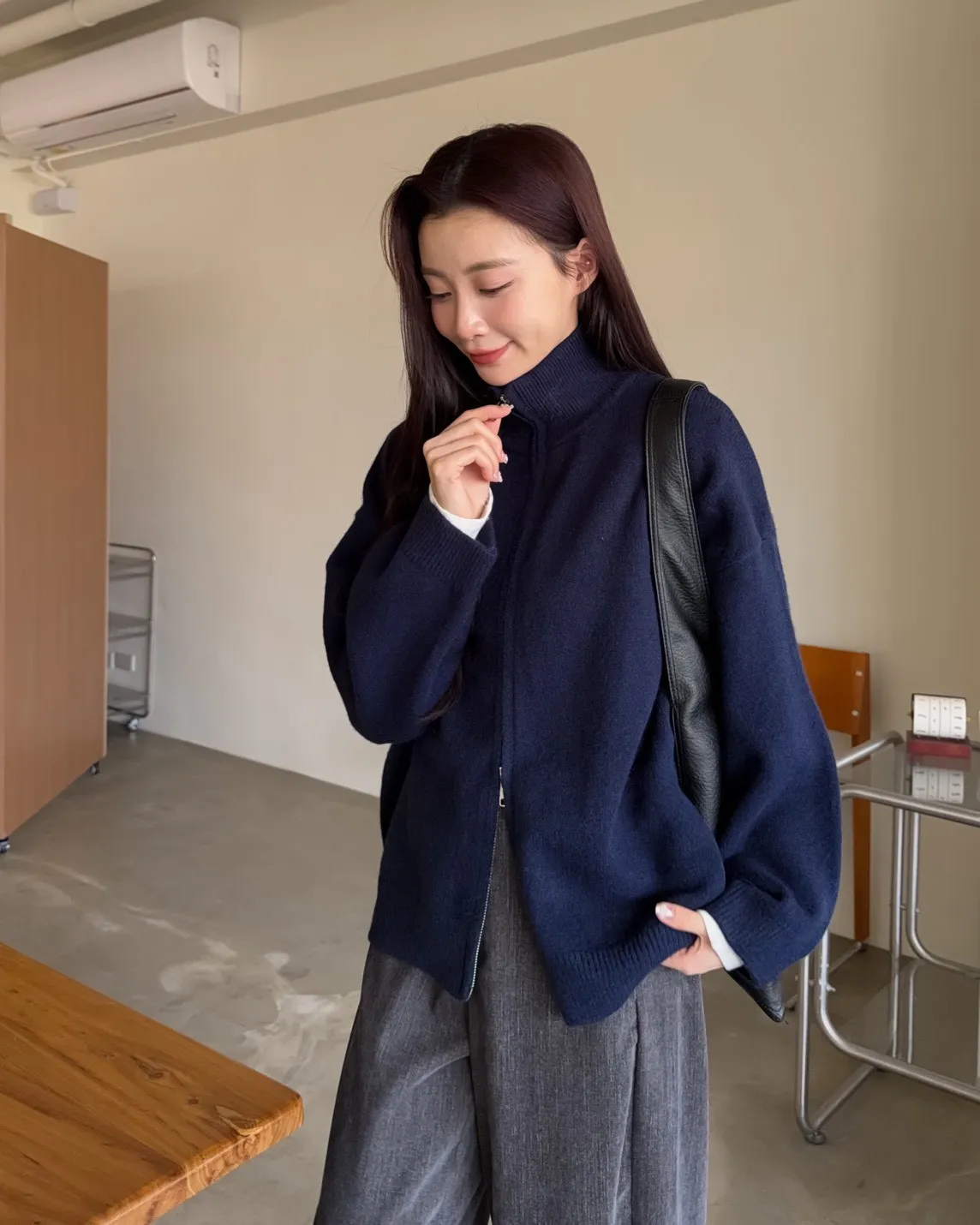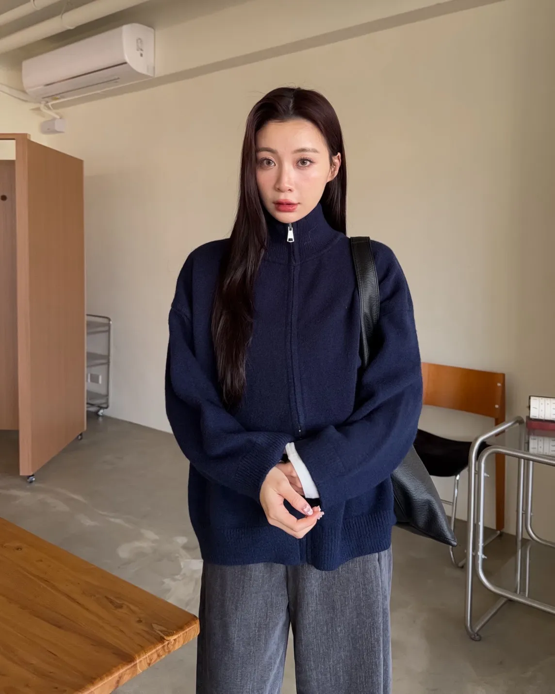 雙拉鍊 立領 厚實針織 寬鬆落肩 飽和色系