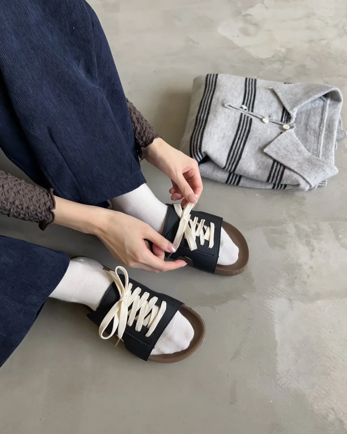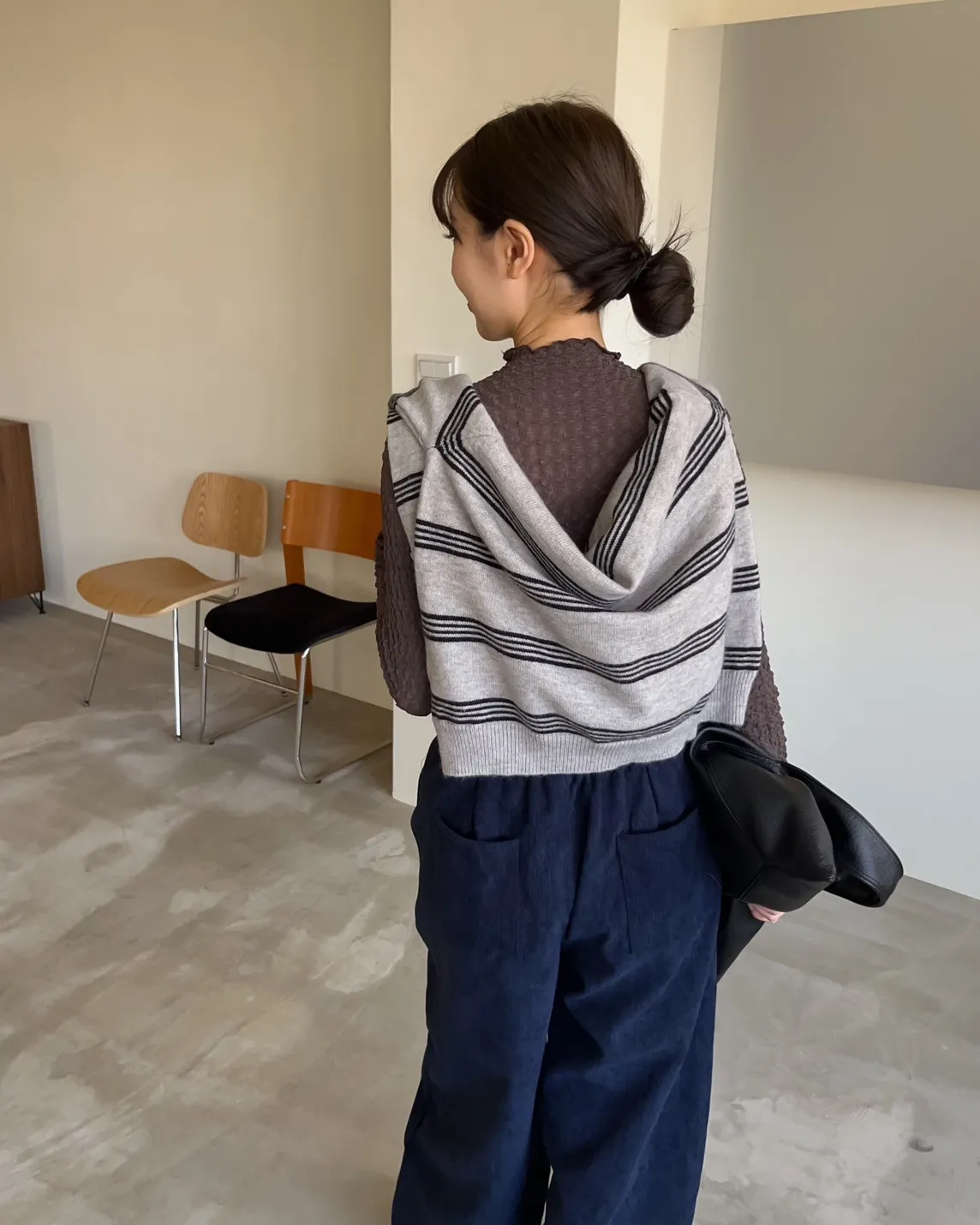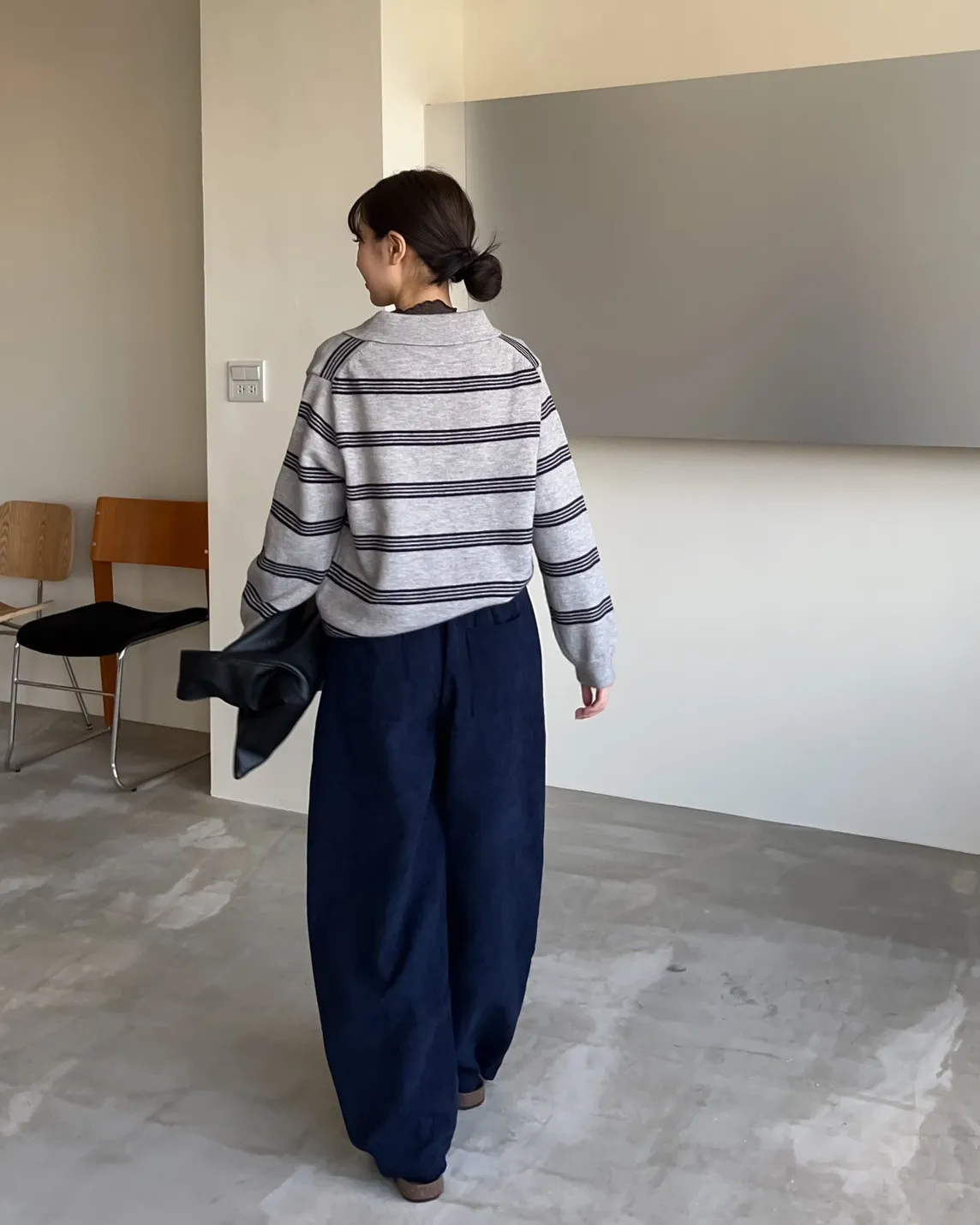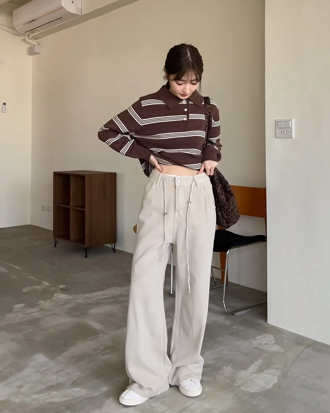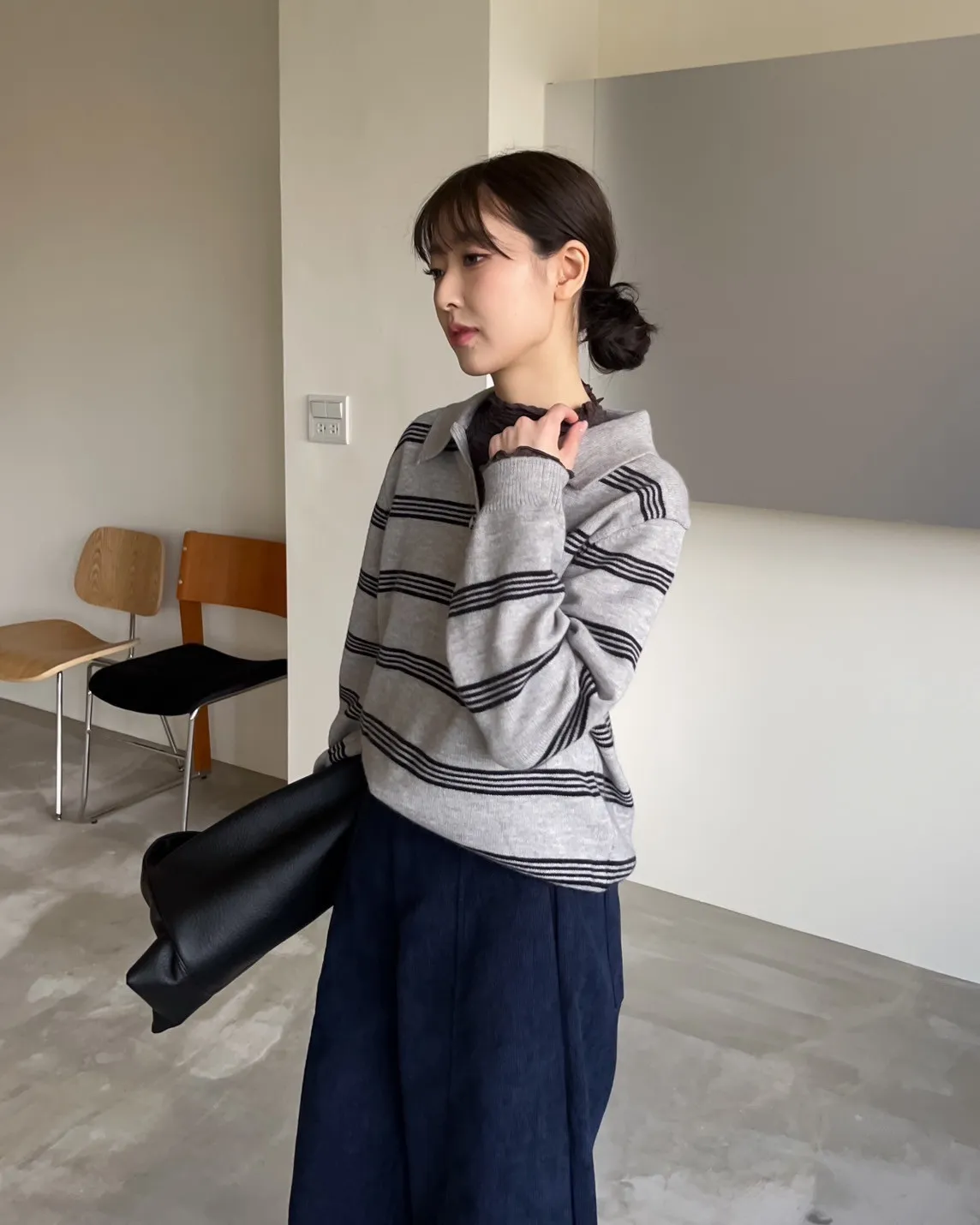 V0086小鈕扣POLO領橫紋毛衣(米/咖啡/灰)