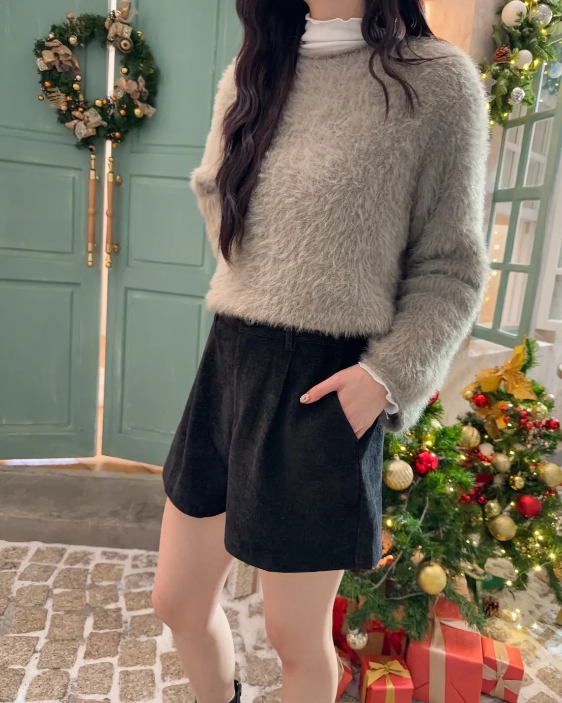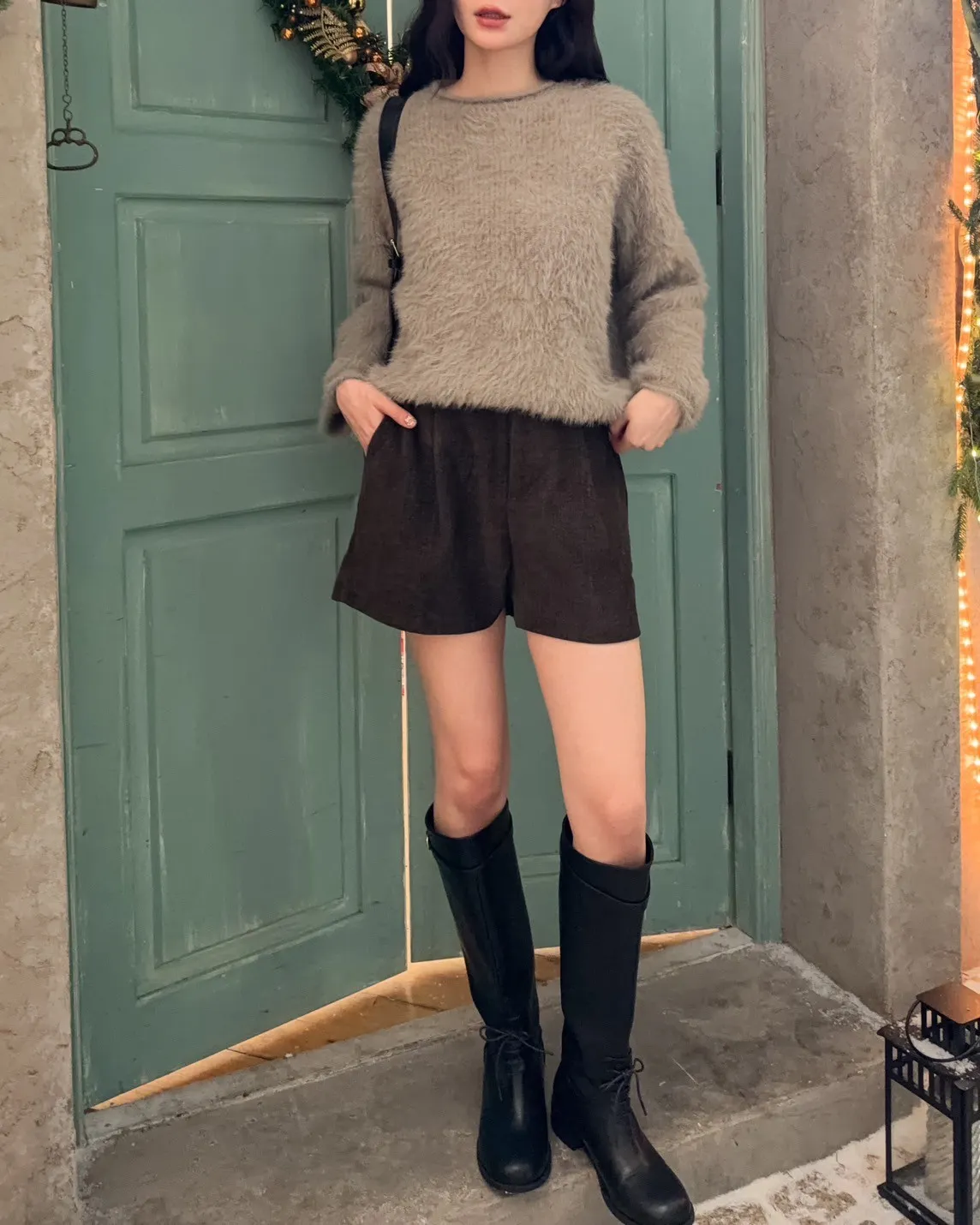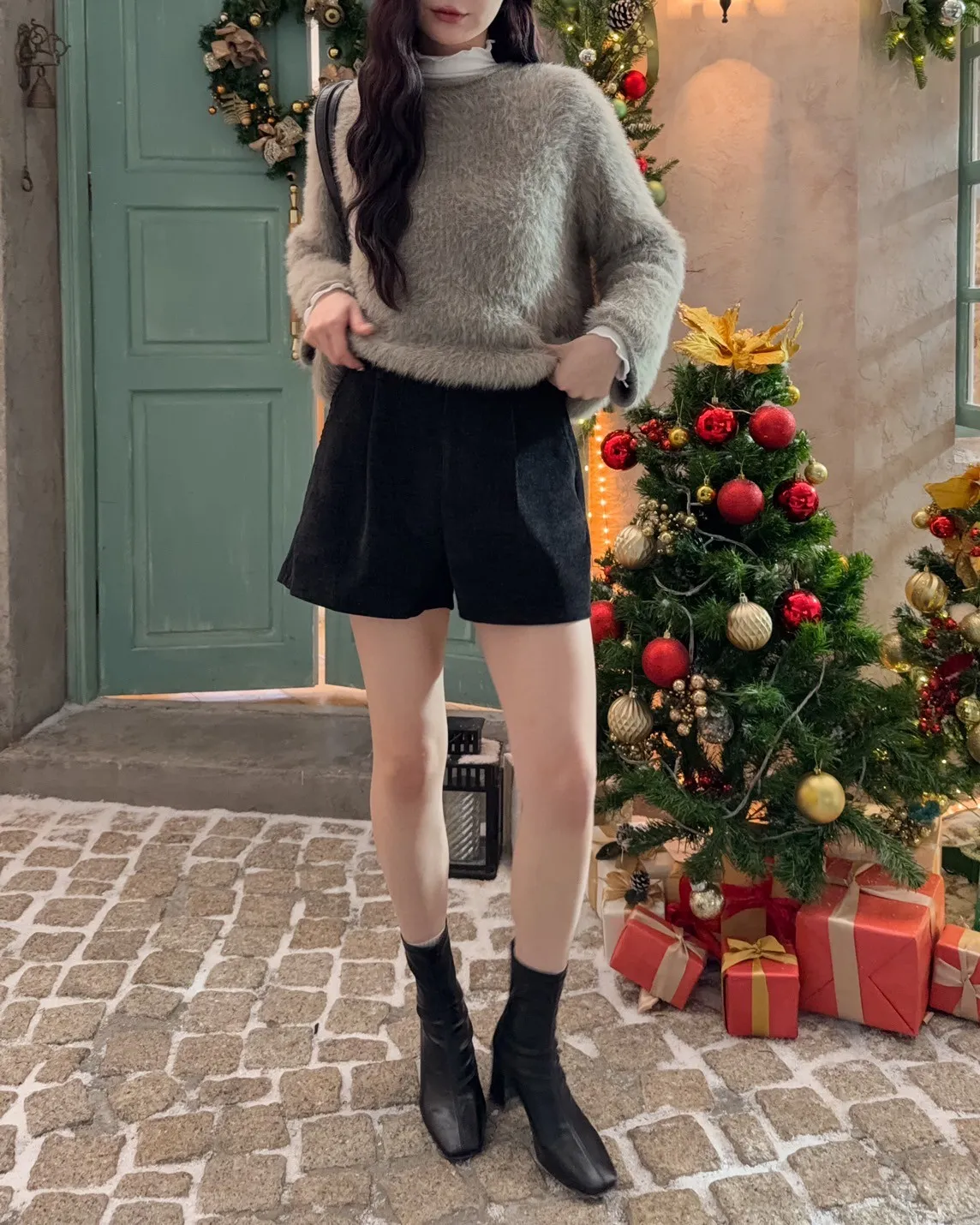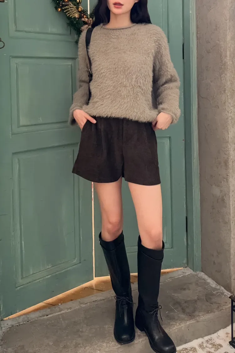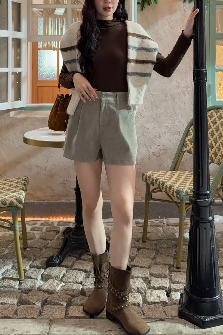 X0056率性質感毛呢西裝短褲(卡其/深咖啡/黑)
