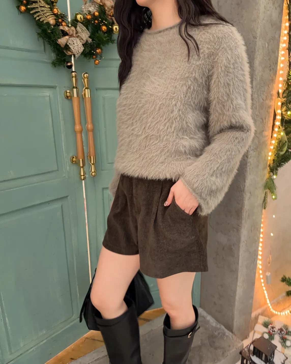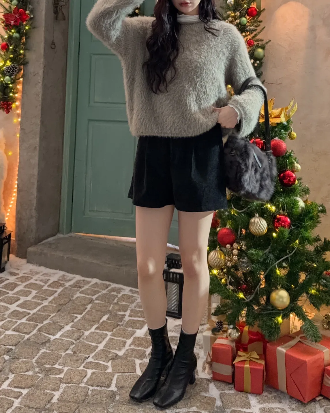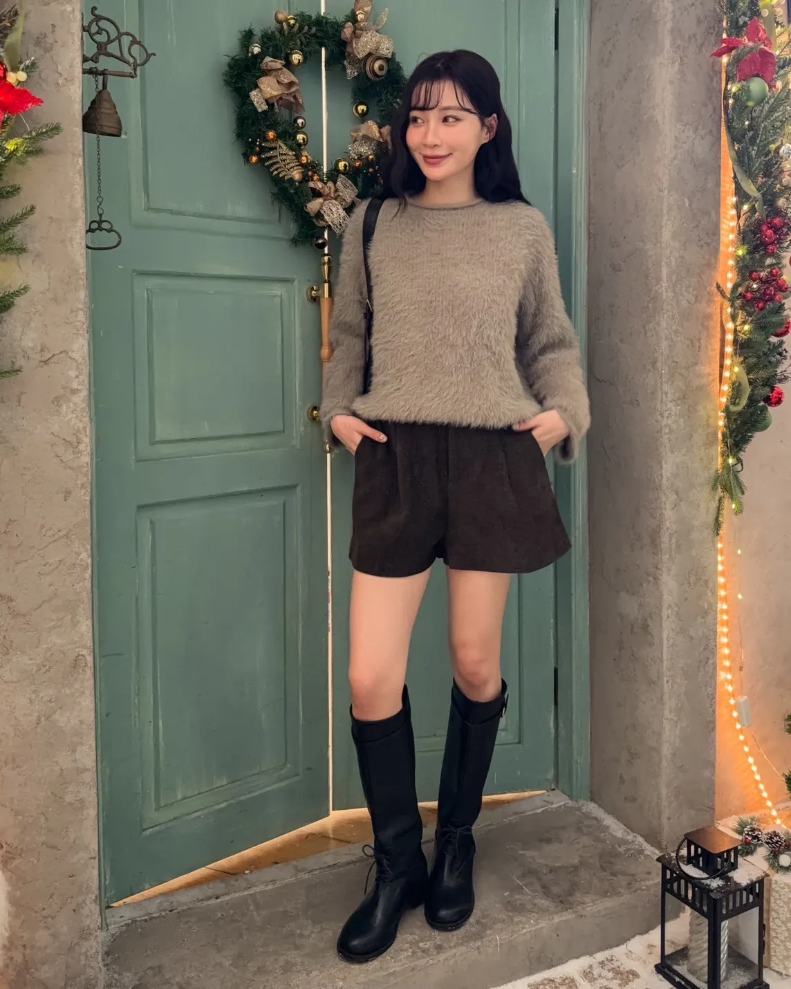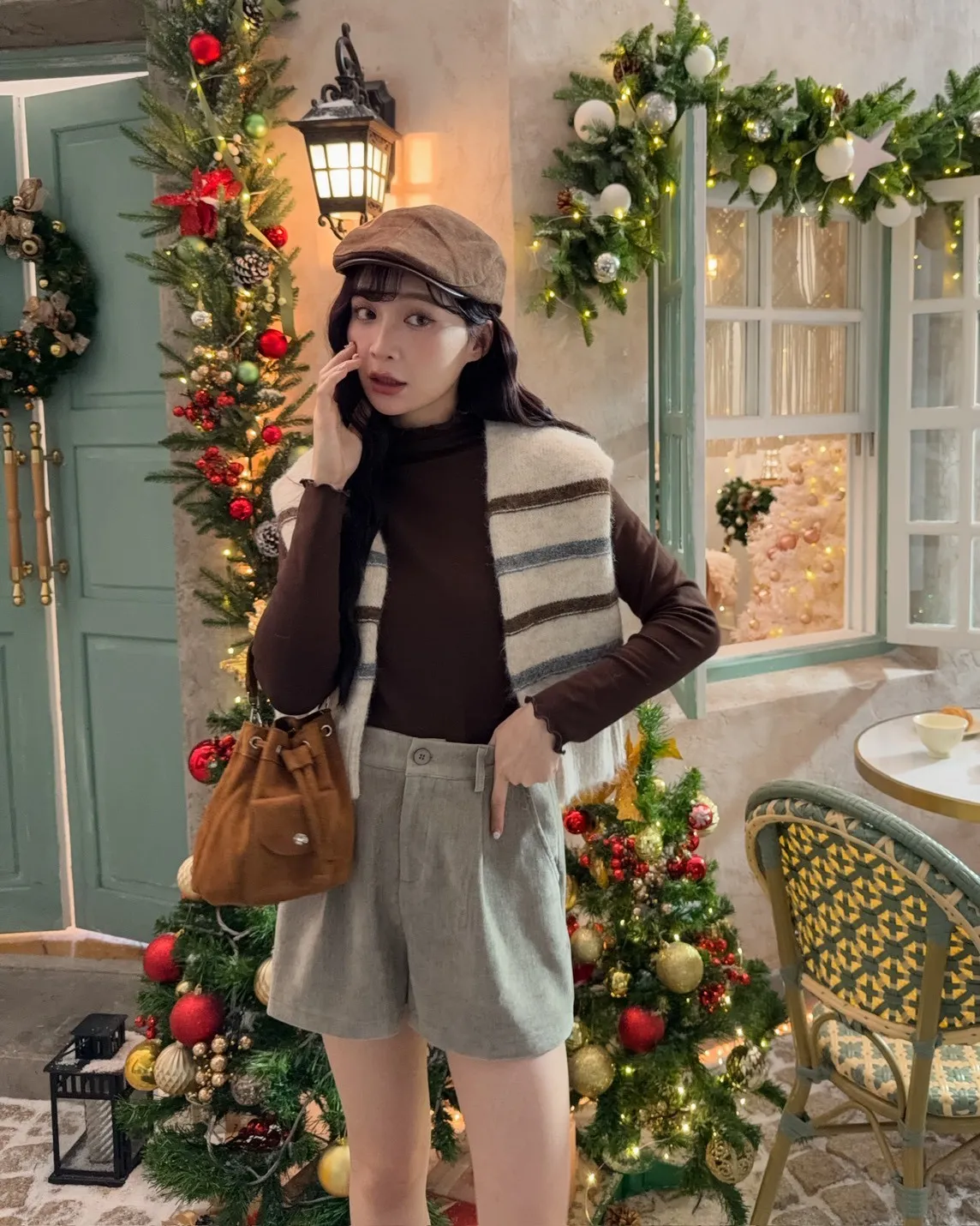 X0056率性質感毛呢西裝短褲(卡其/深咖啡/黑)