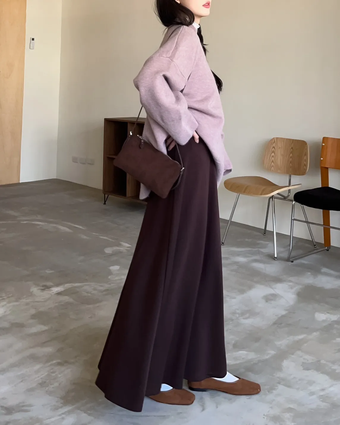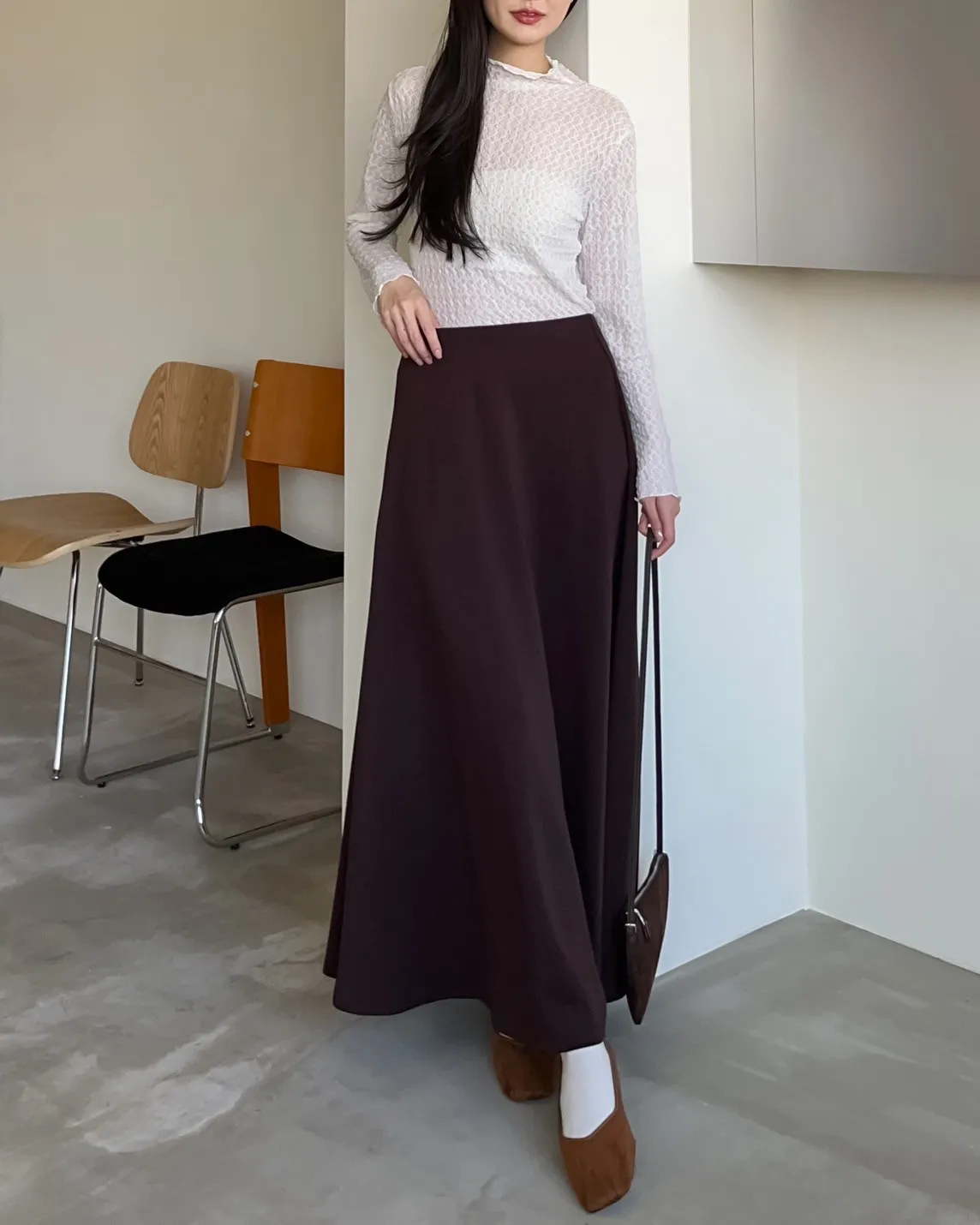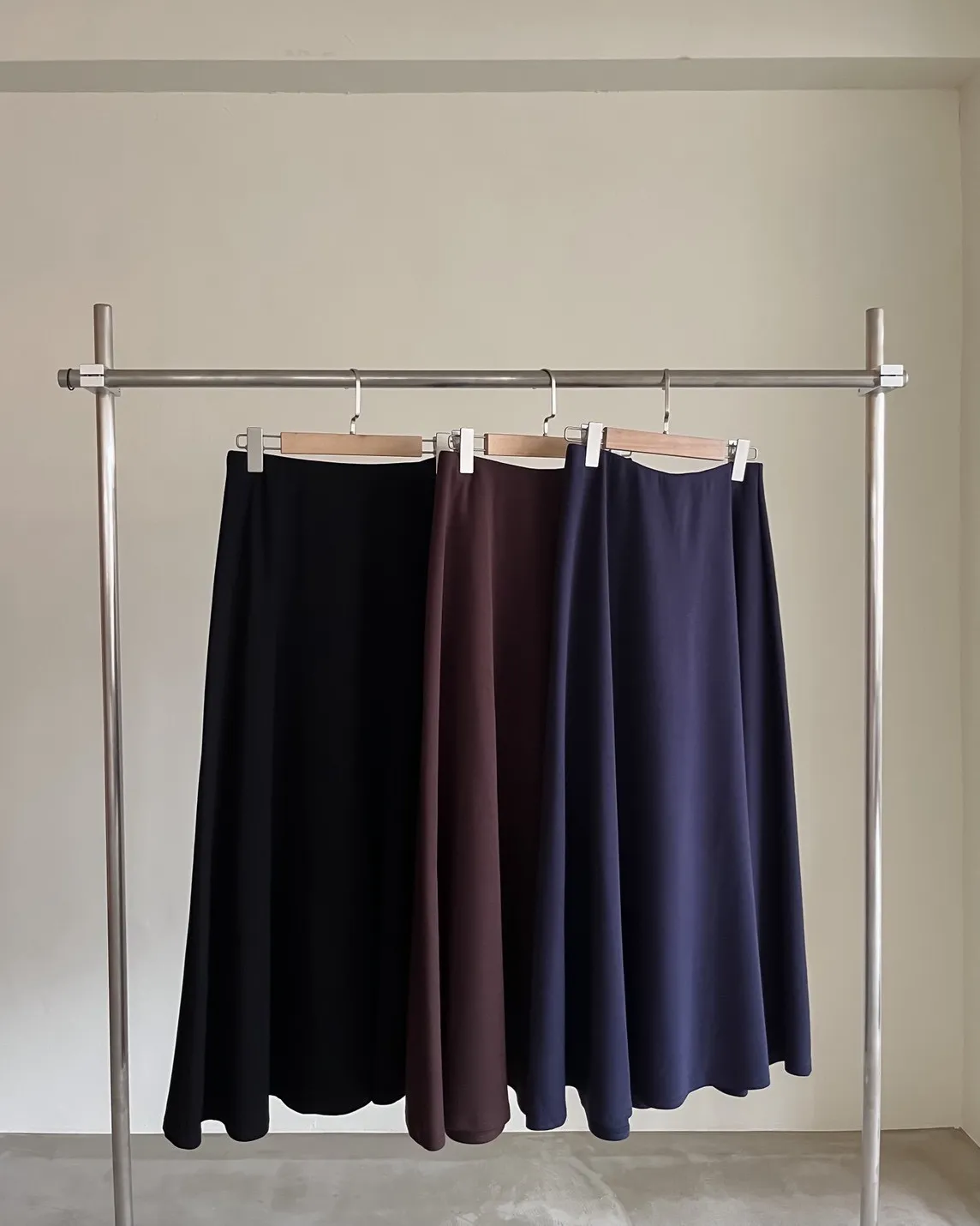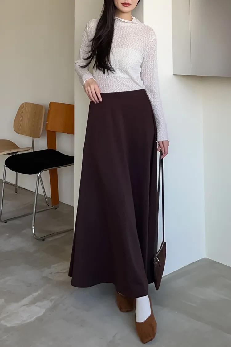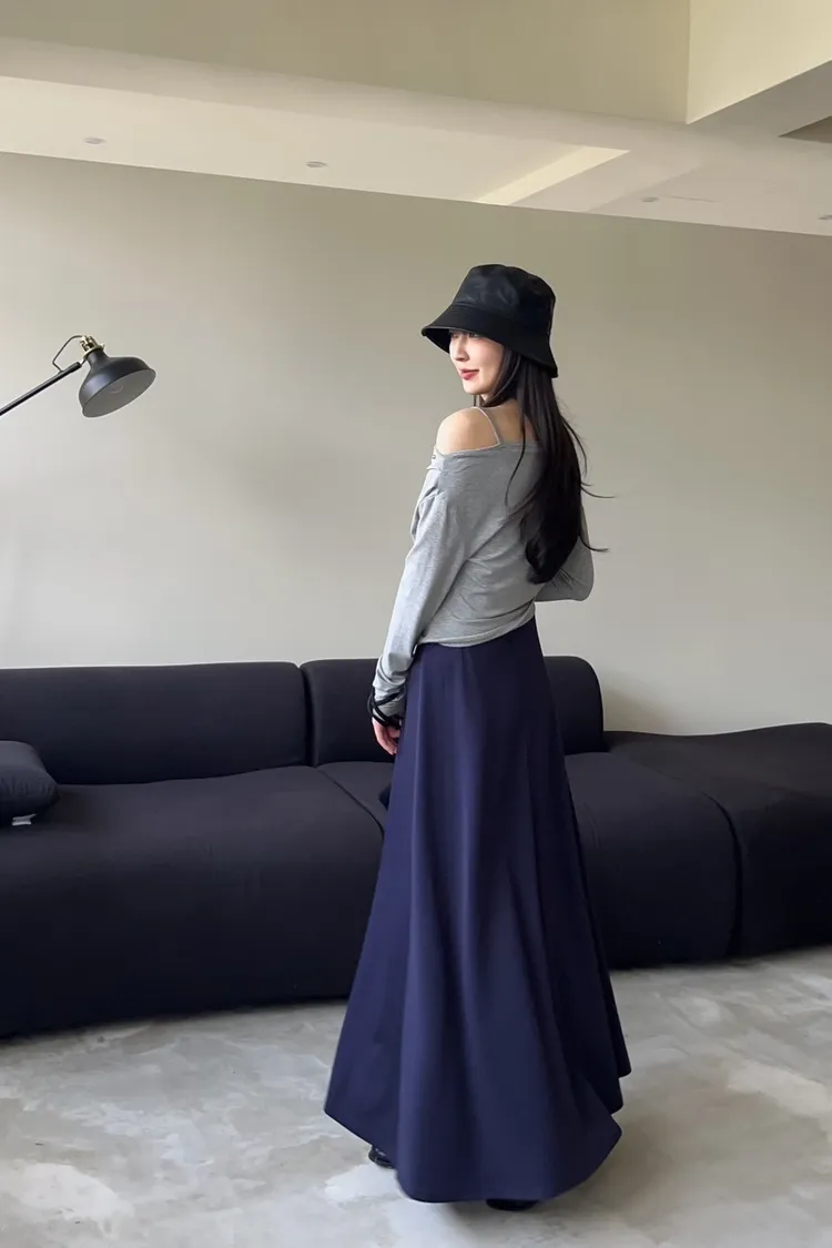 V0081輕薄QQ棉優雅傘擺長裙(咖啡/深藍/黑)