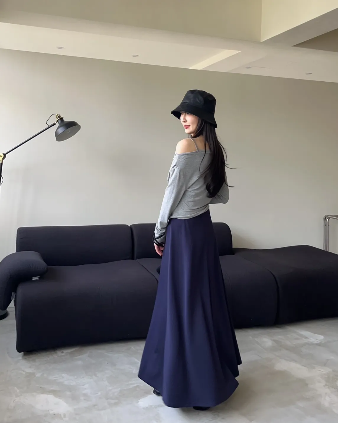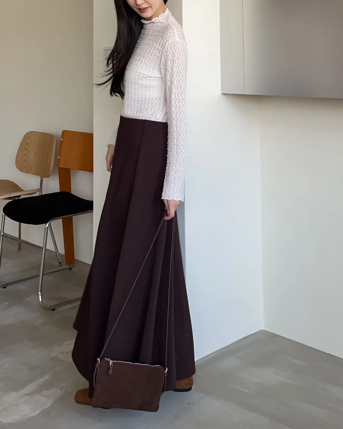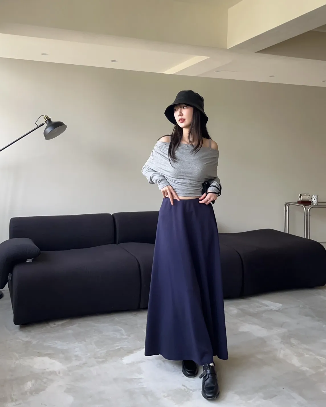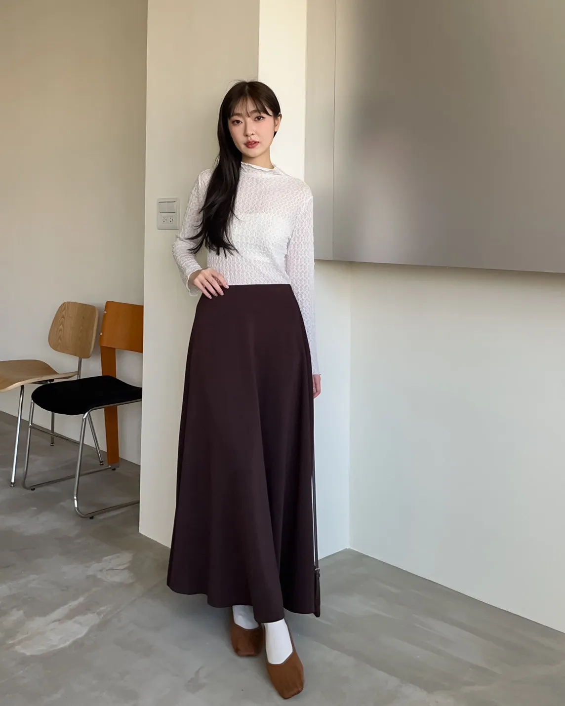 V0081輕薄QQ棉優雅傘擺長裙(咖啡/深藍/黑)