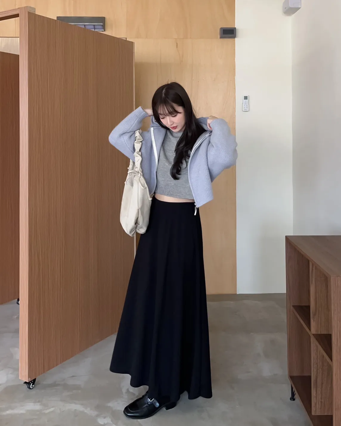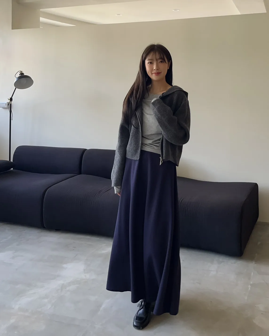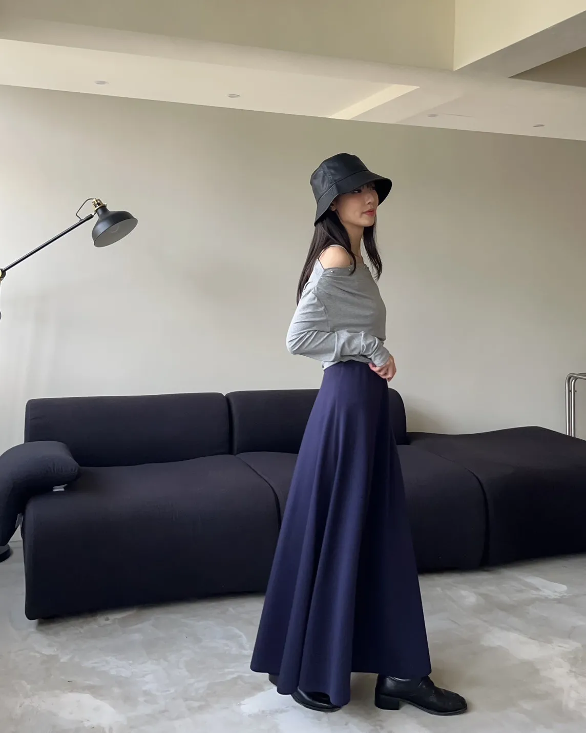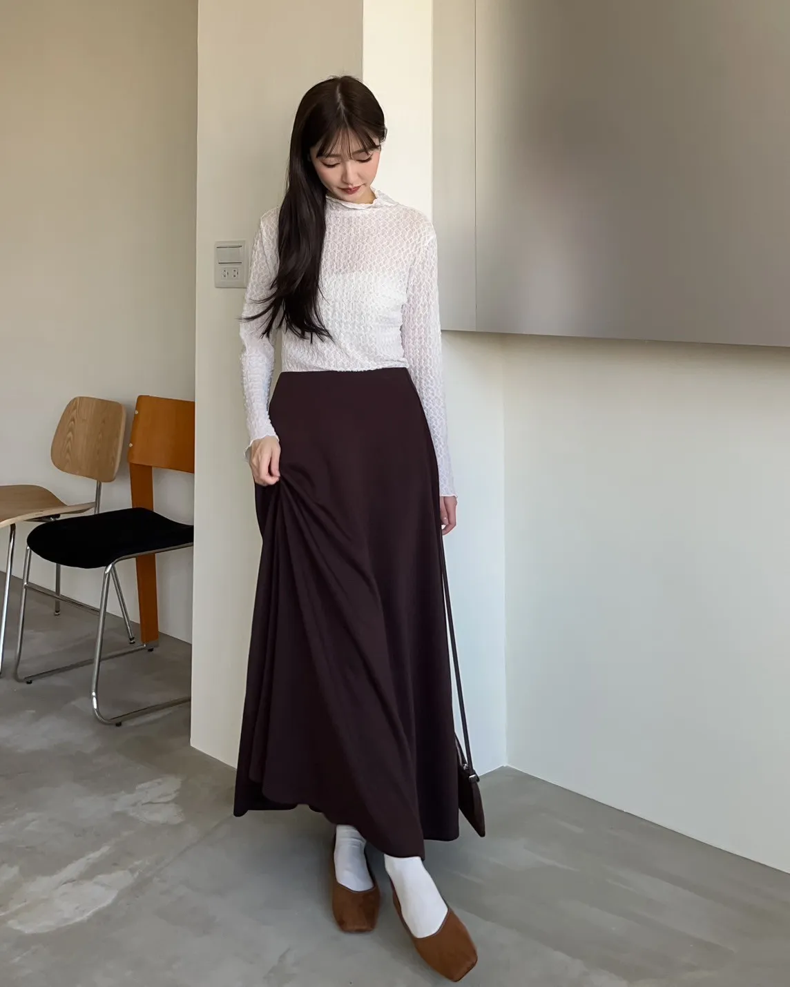 V0081輕薄QQ棉優雅傘擺長裙(咖啡/深藍/黑)