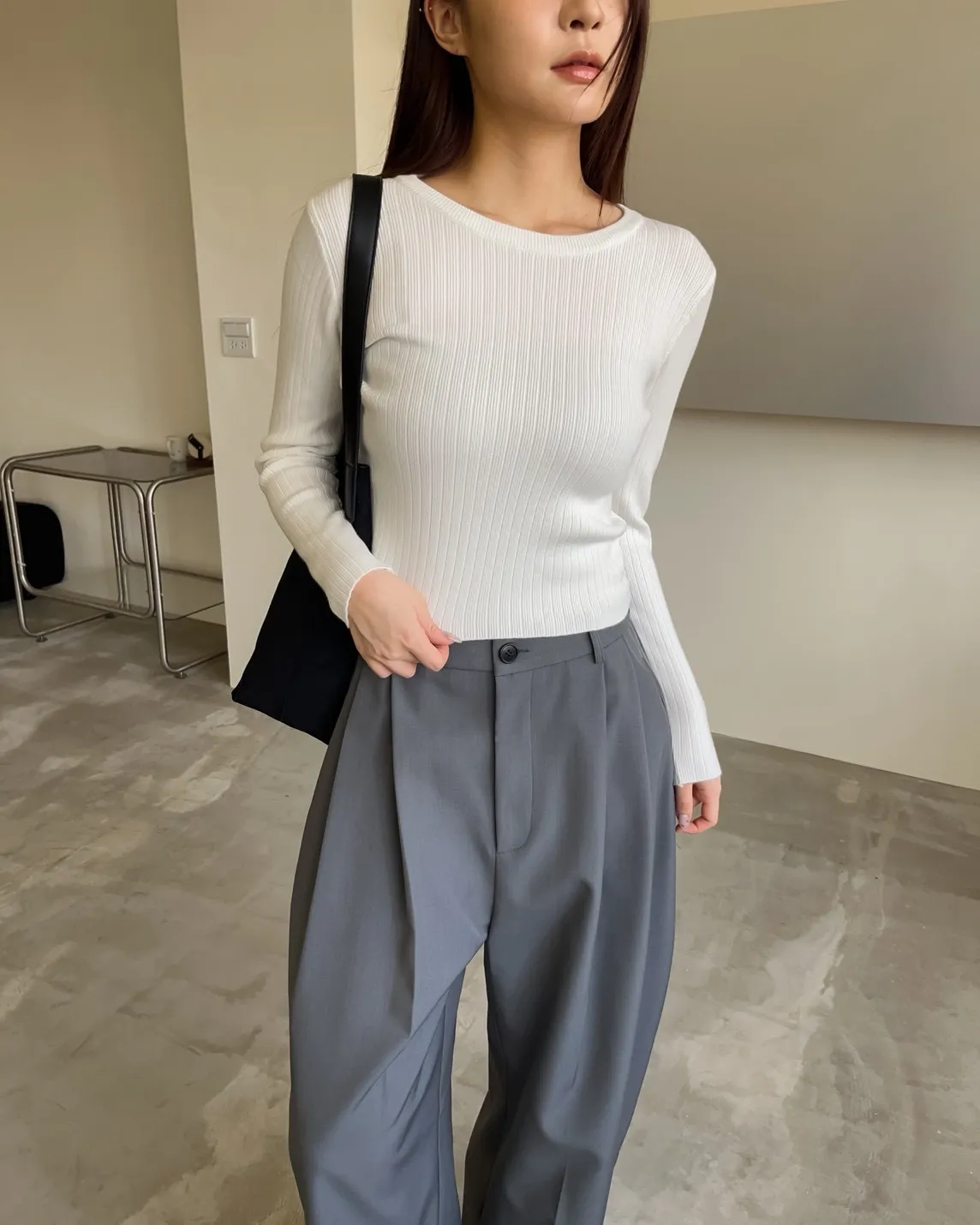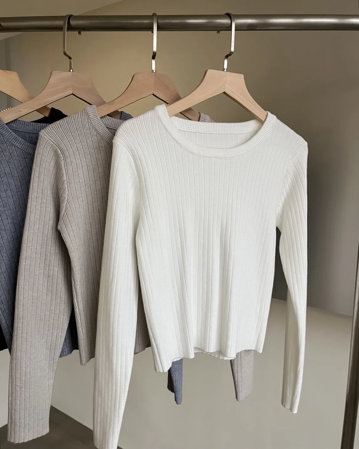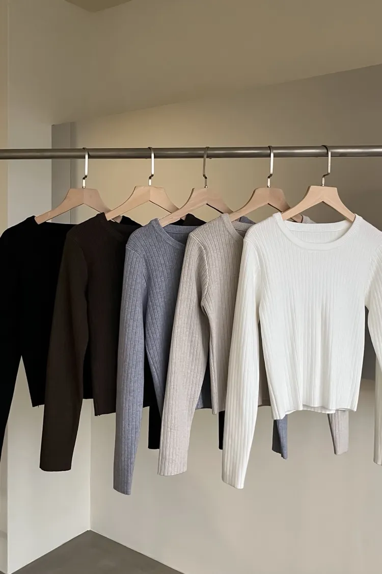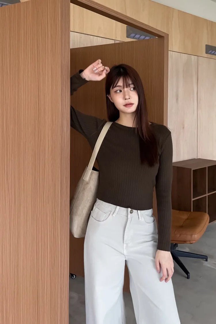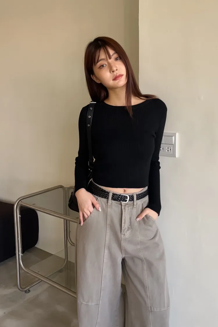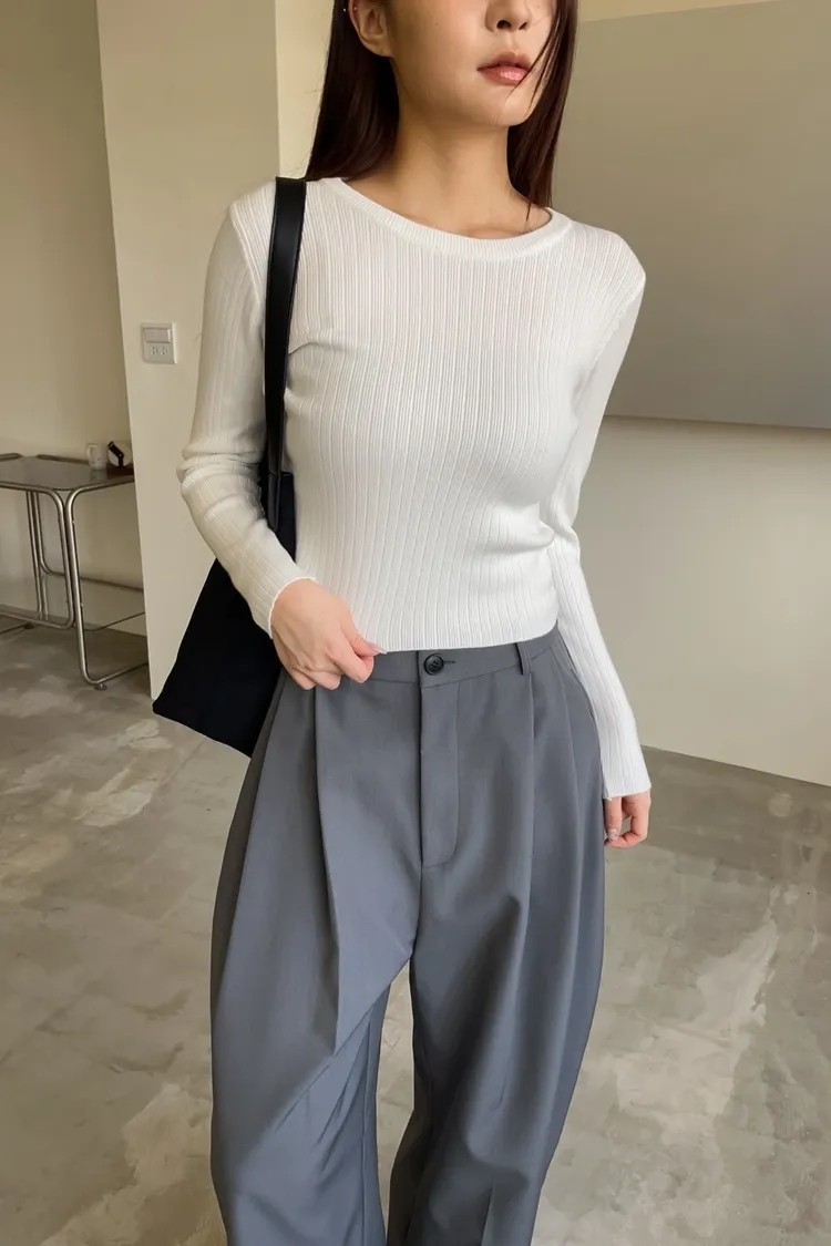 密實針織 微厚度 圓領 寬版坑紋