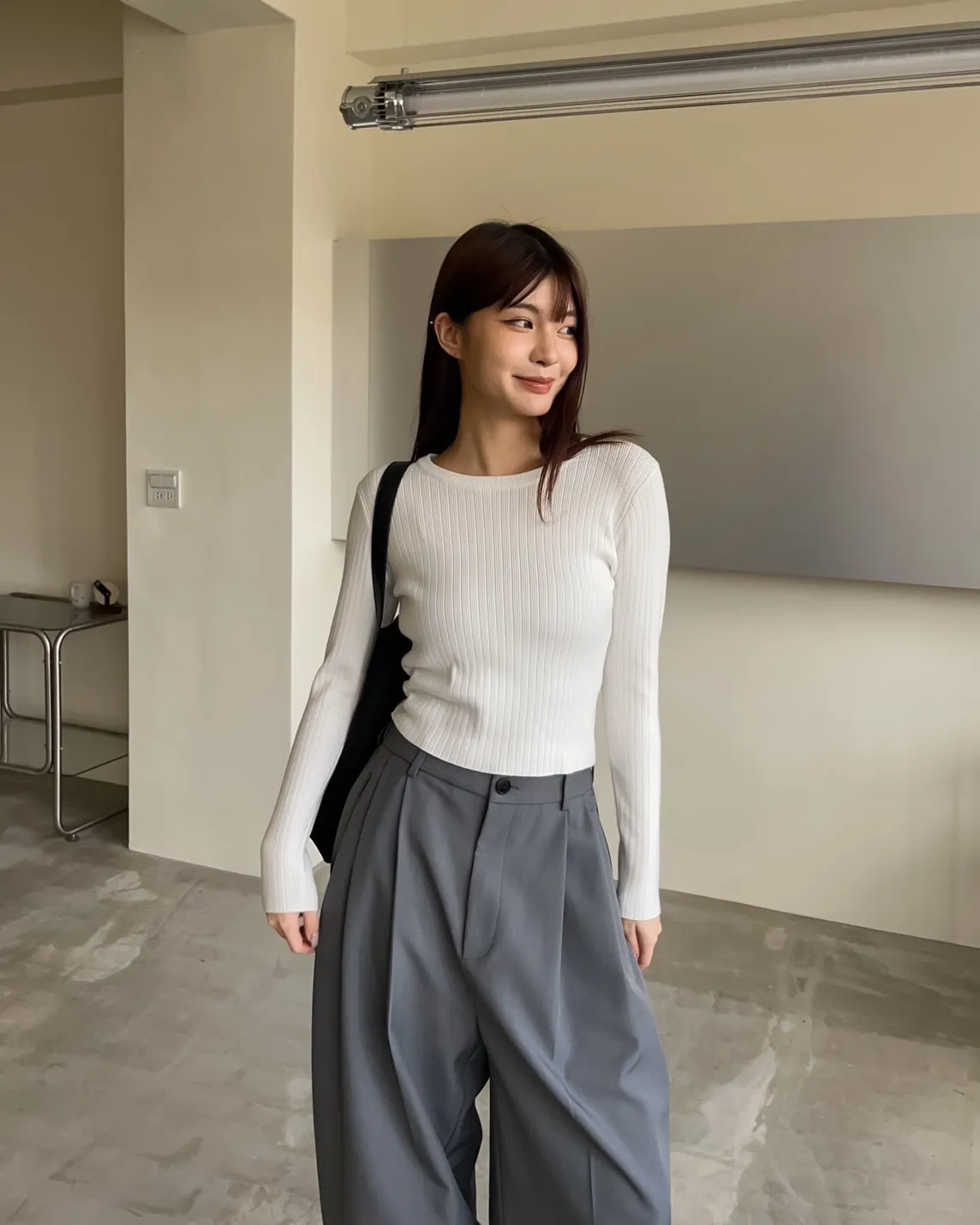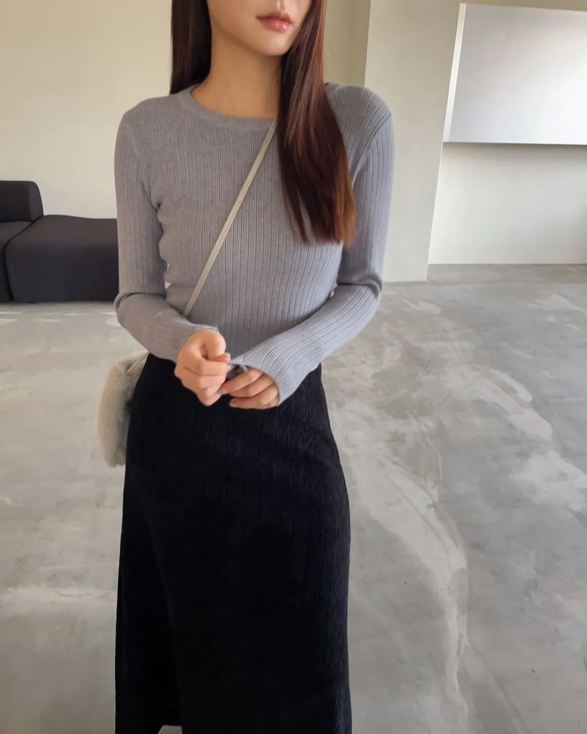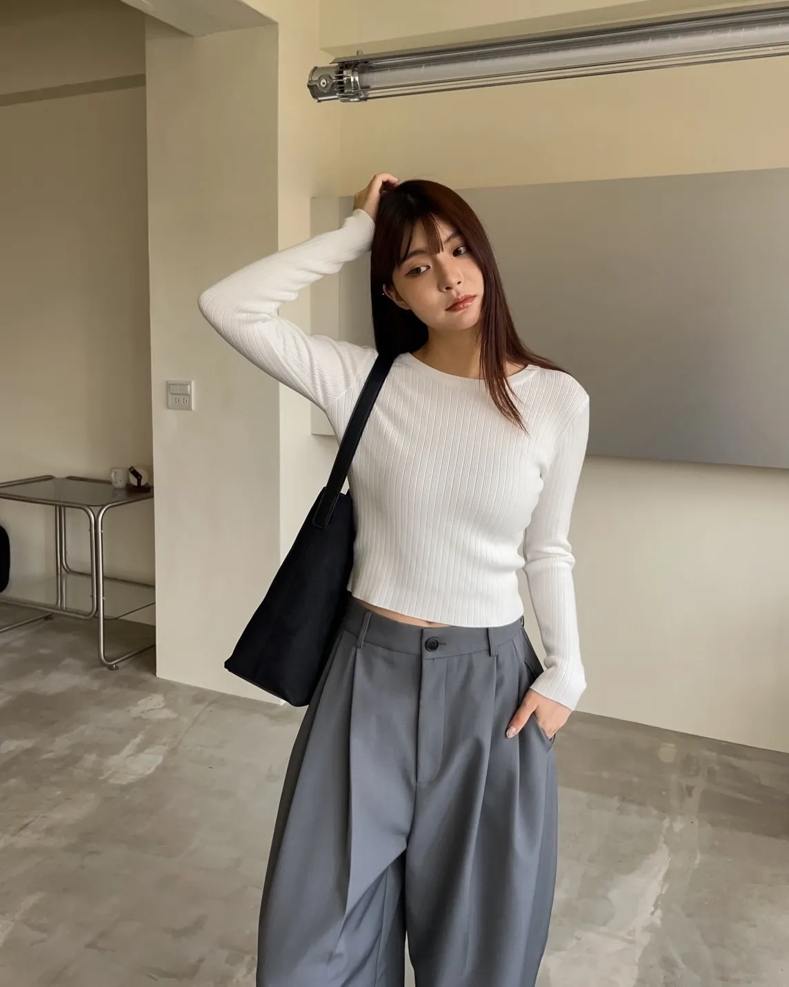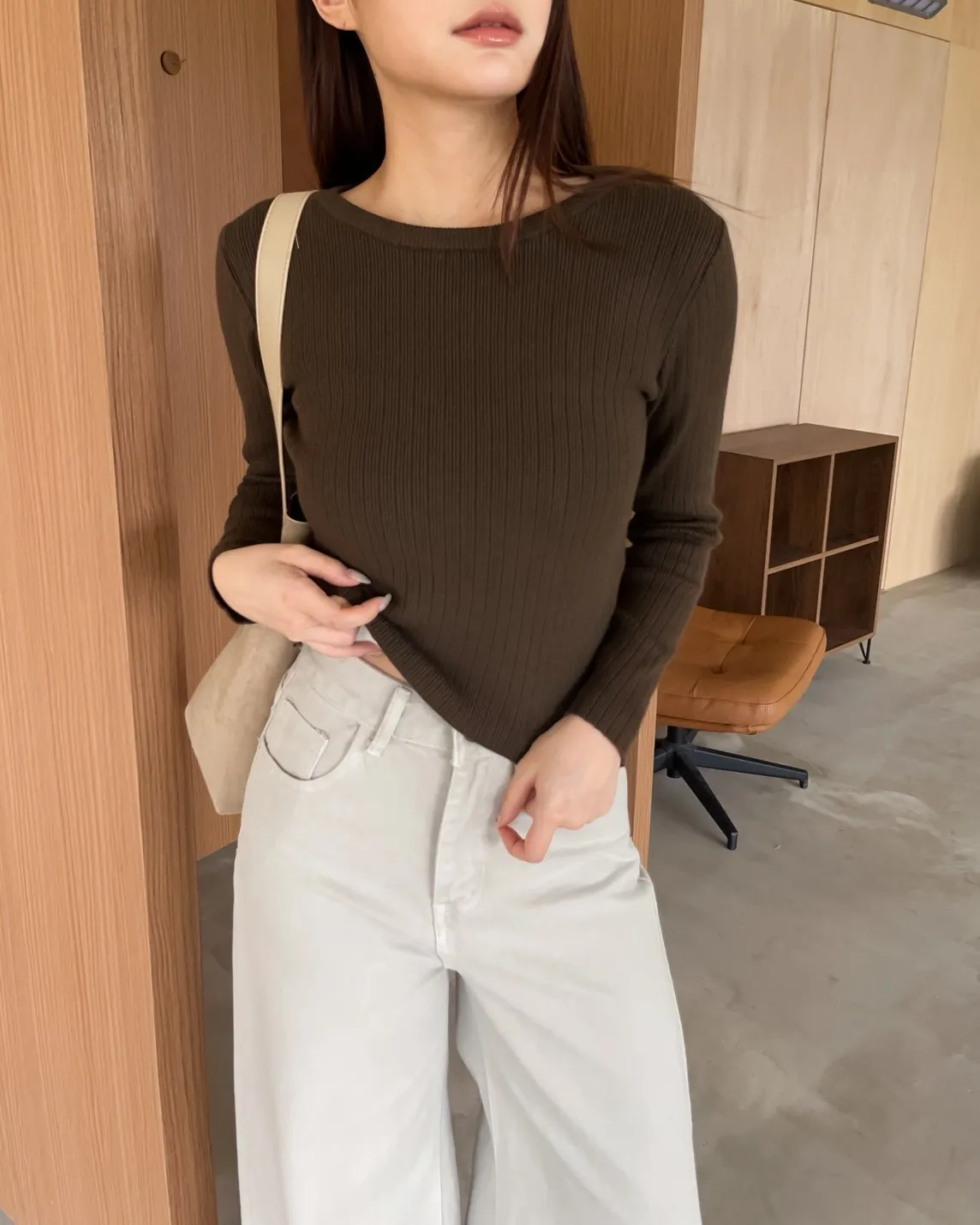密實針織 微厚度 圓領 寬版坑紋