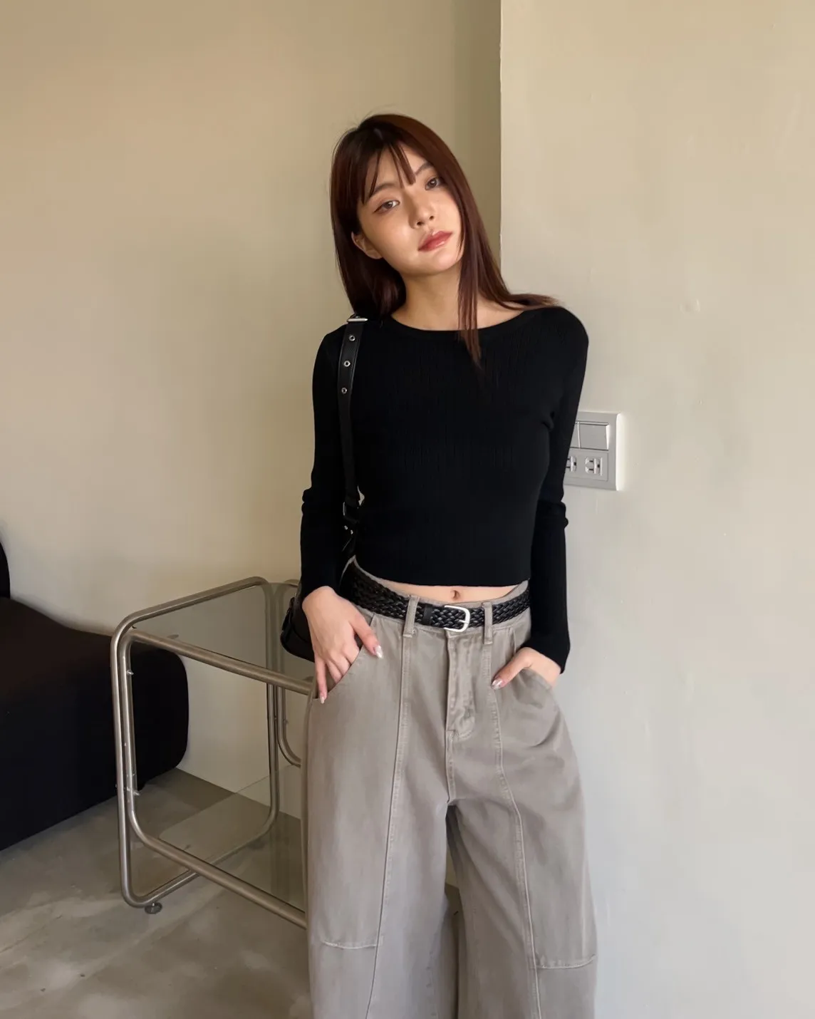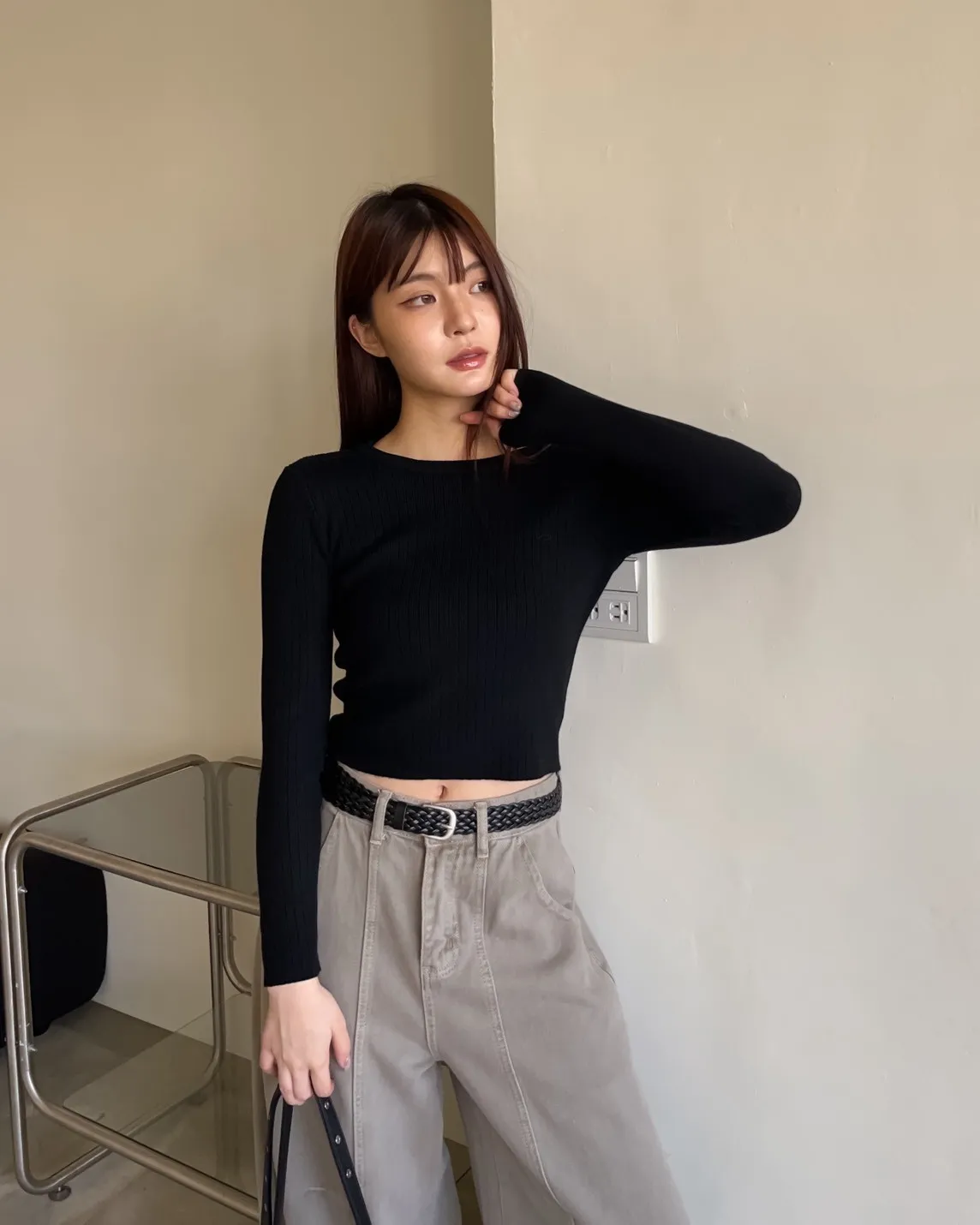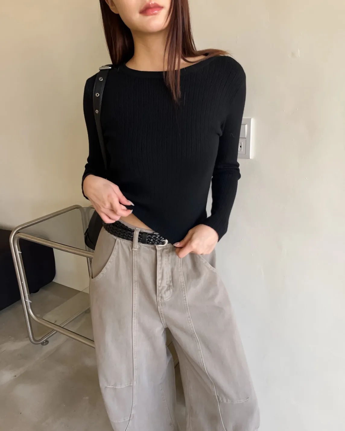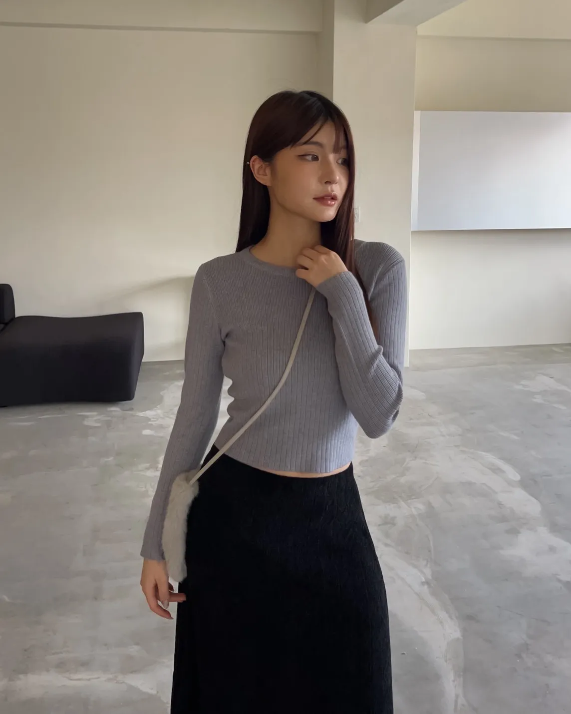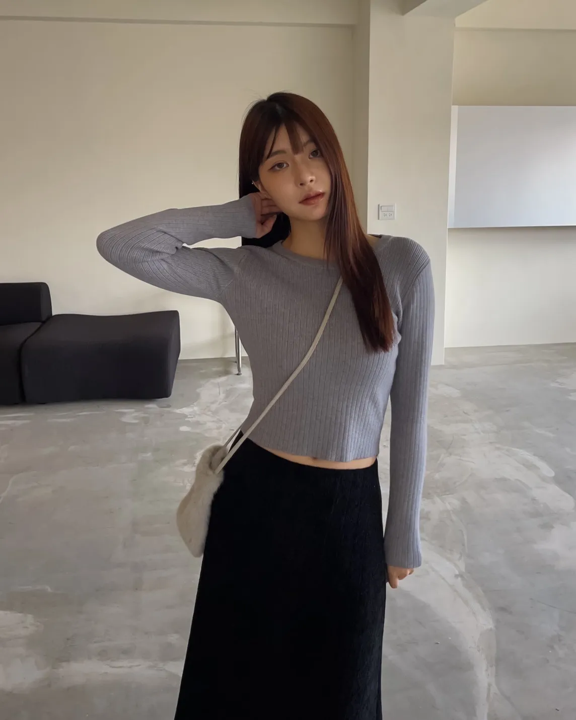 密實針織 微厚度 圓領 寬版坑紋