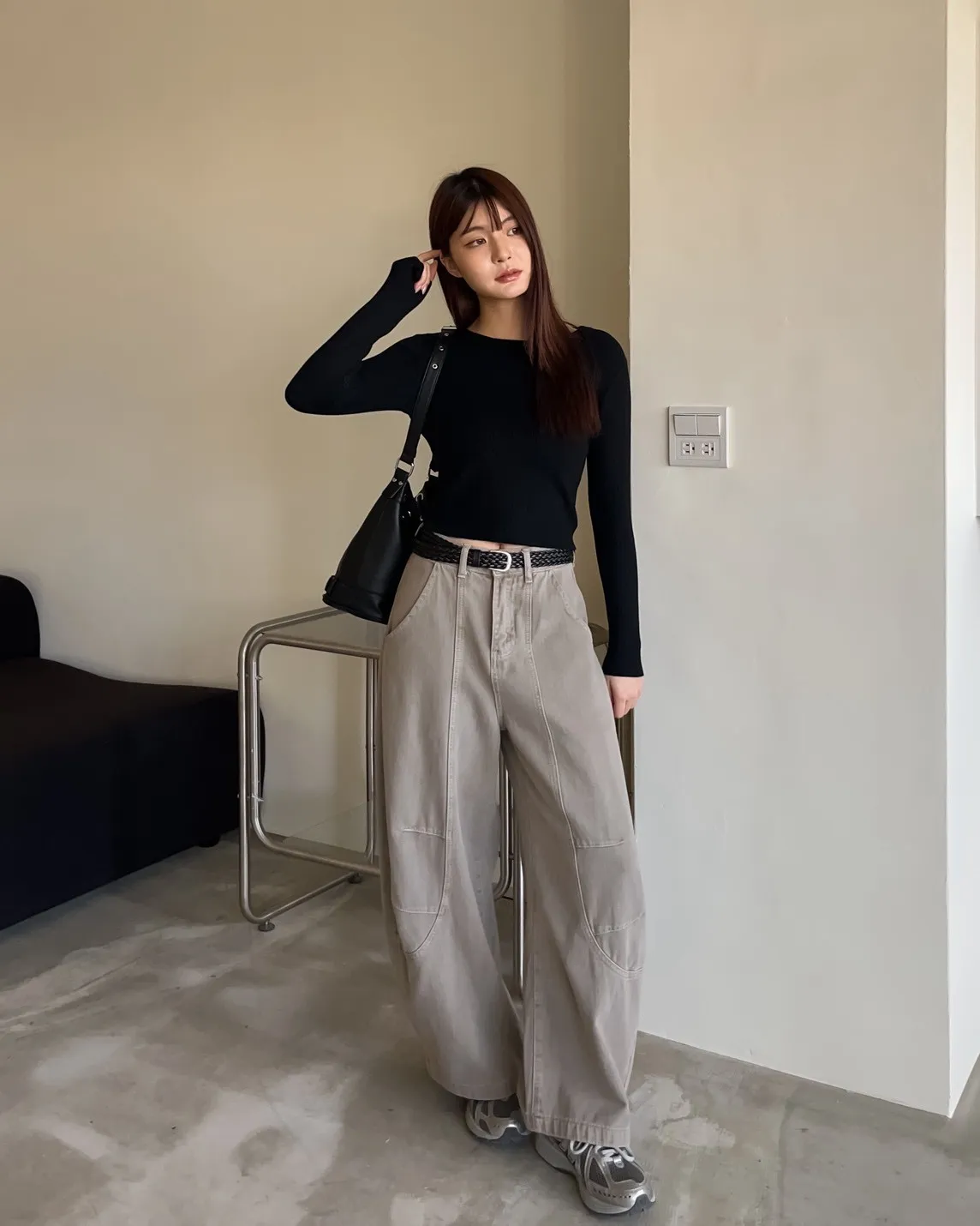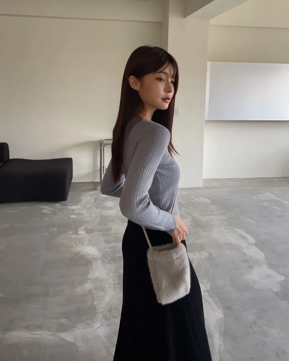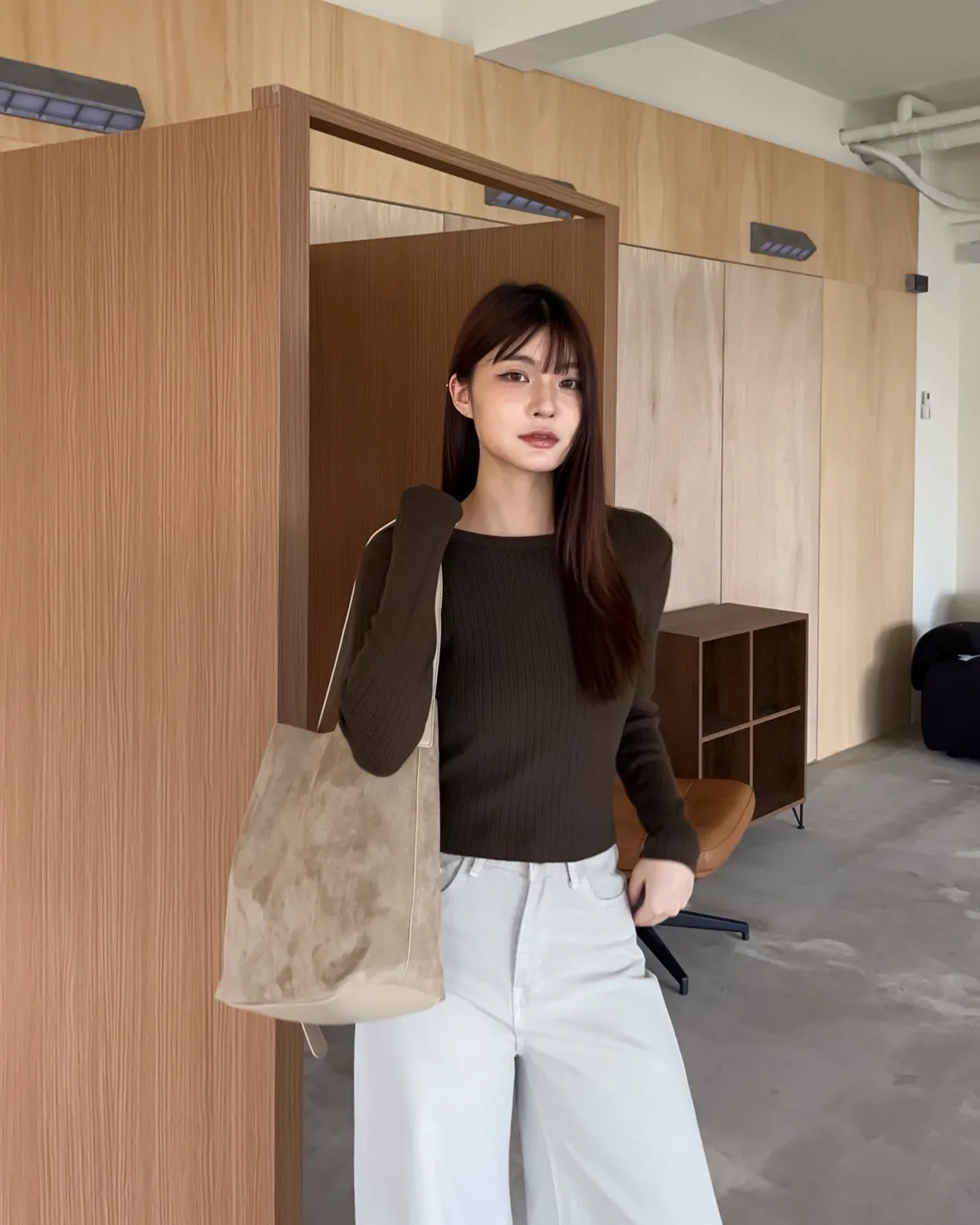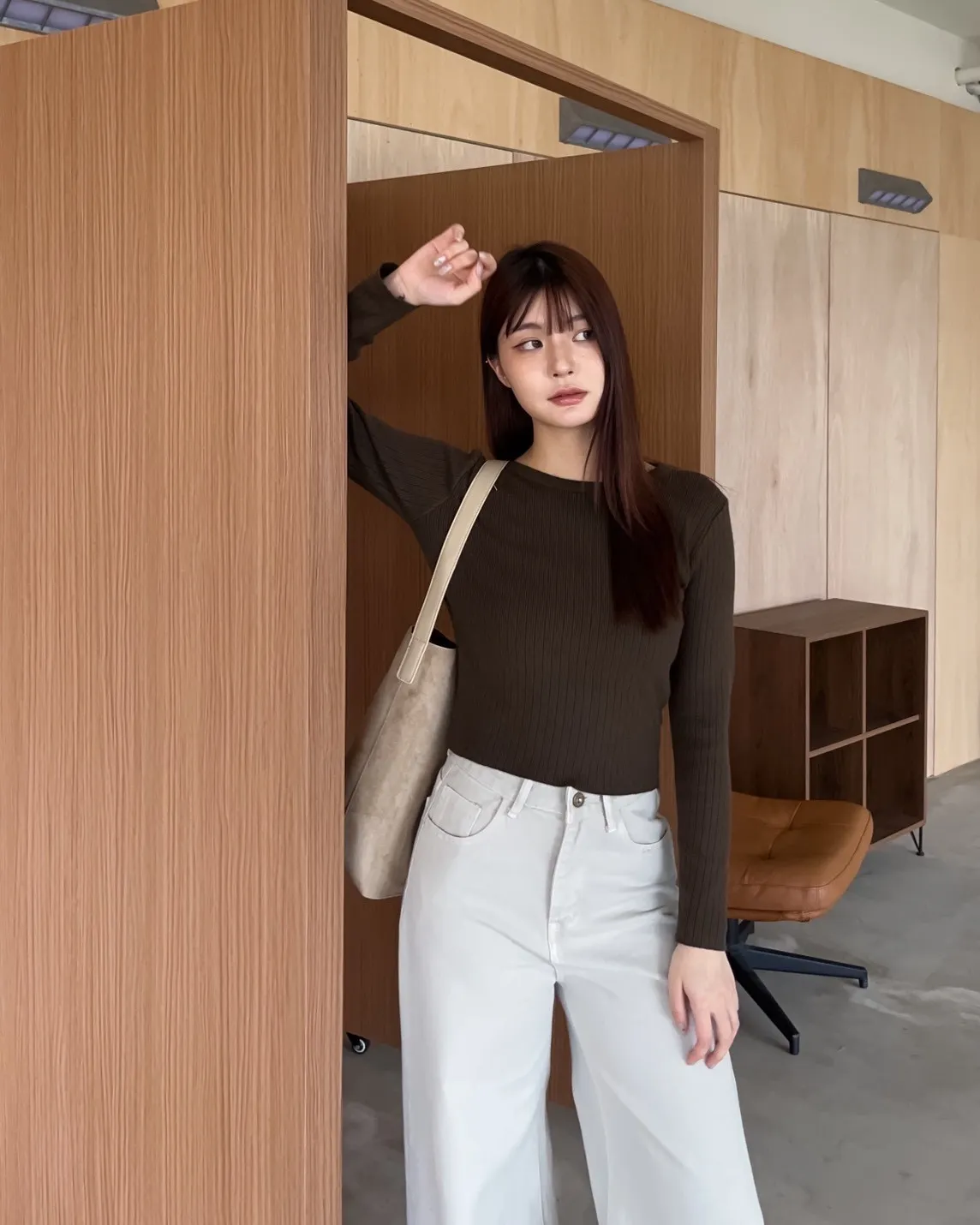 密實針織 微厚度 圓領 寬版坑紋