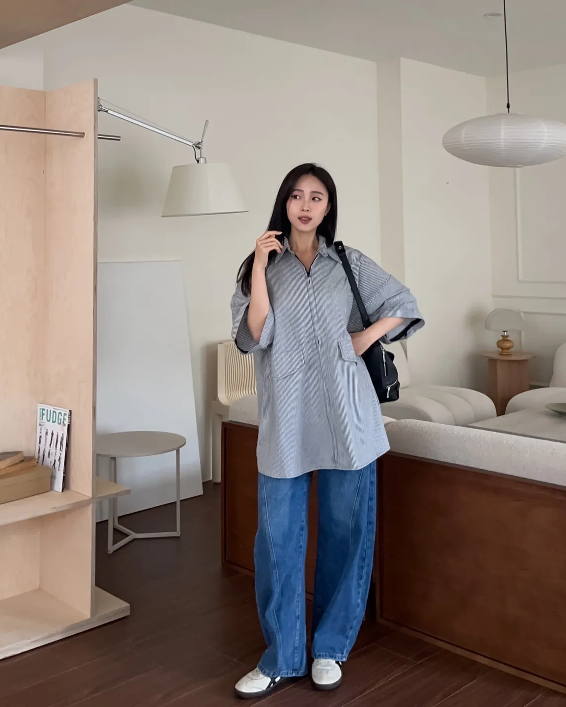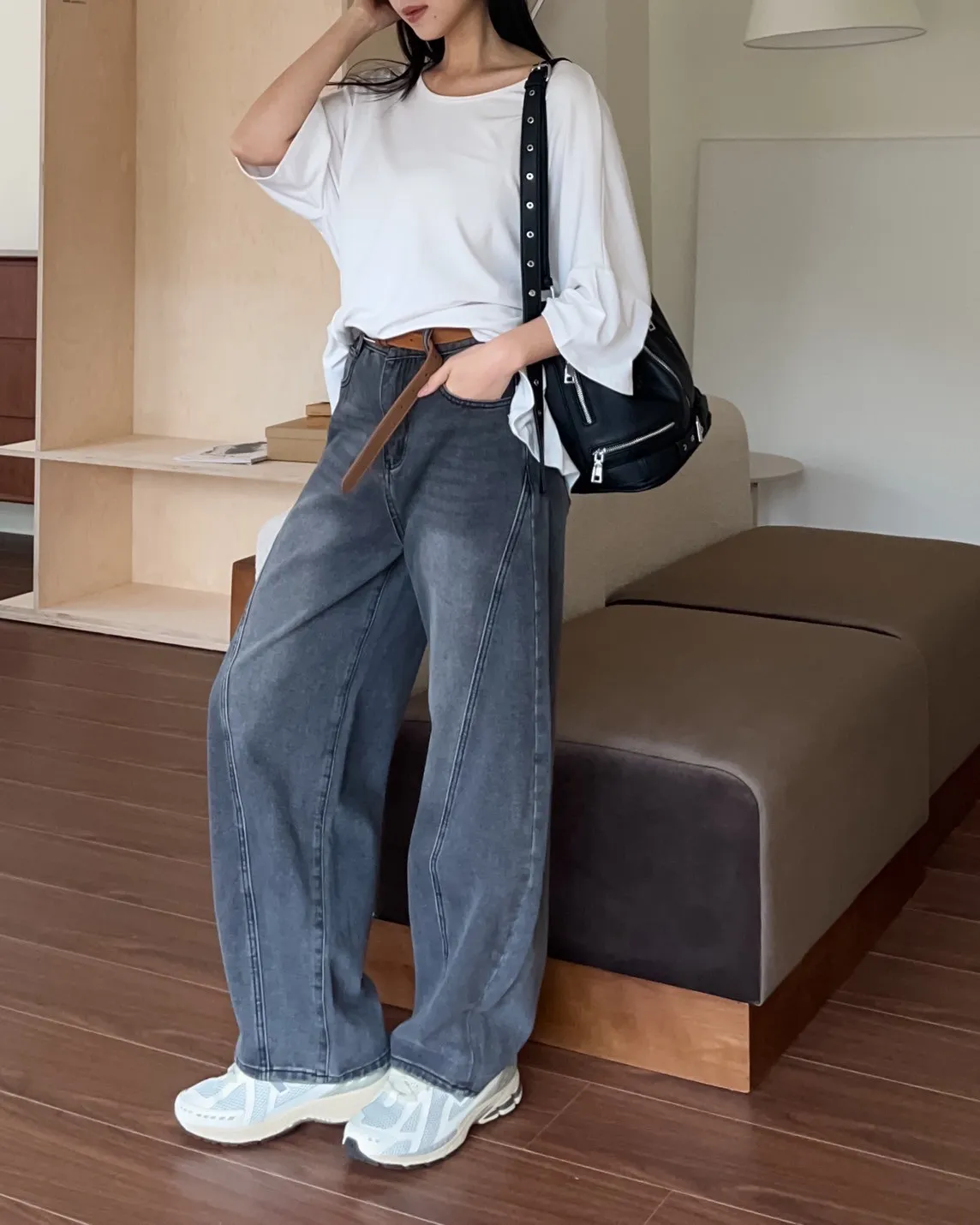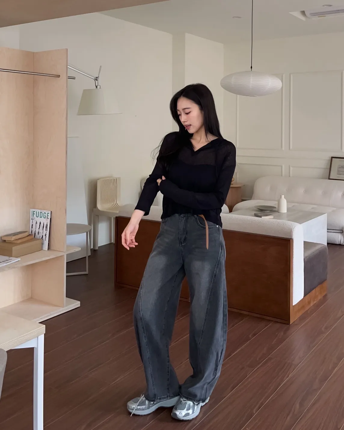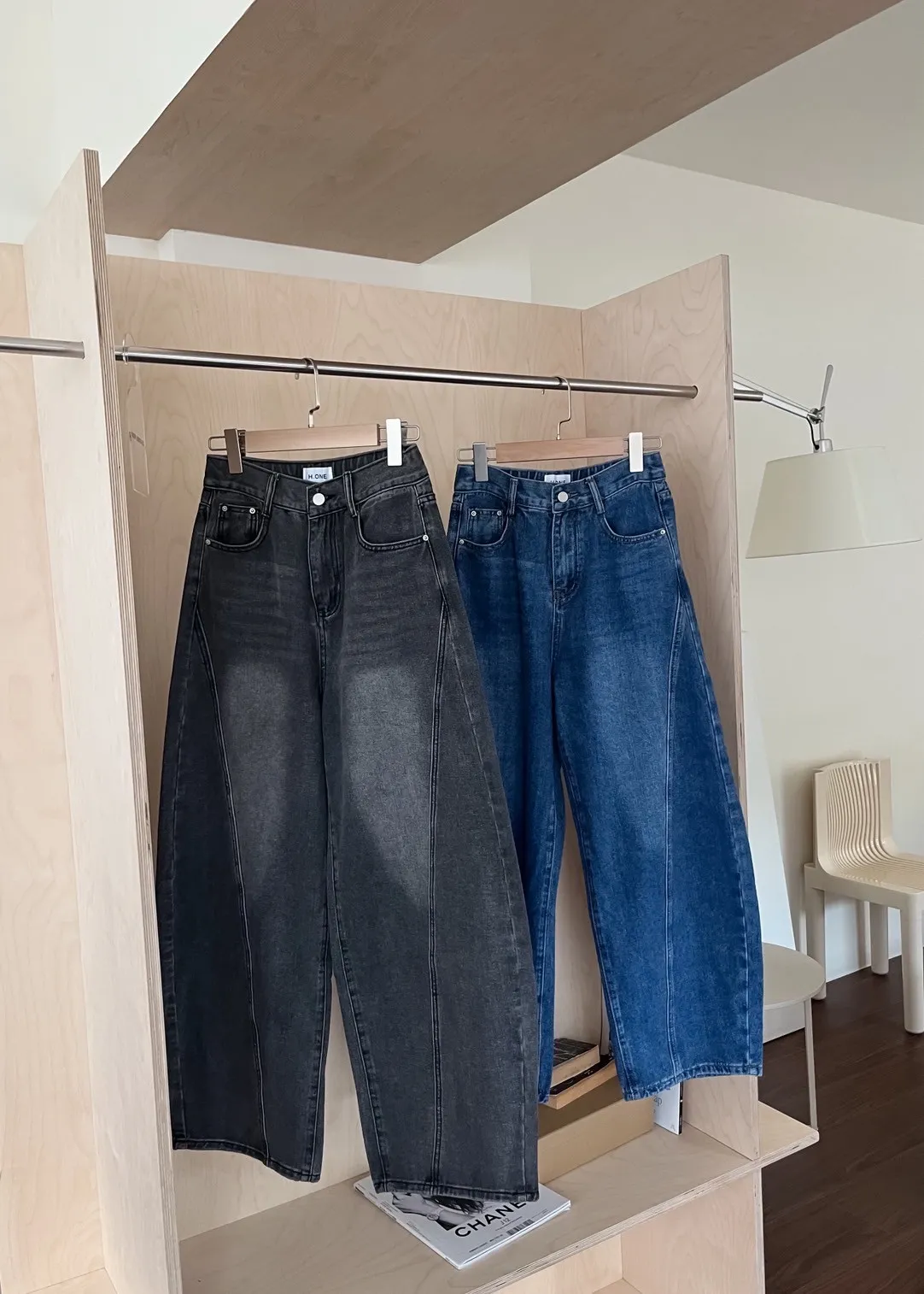 T0064[S-XL]推!!版型必入牛仔彎刀褲(藍/灰)