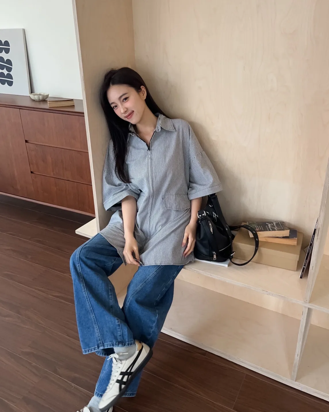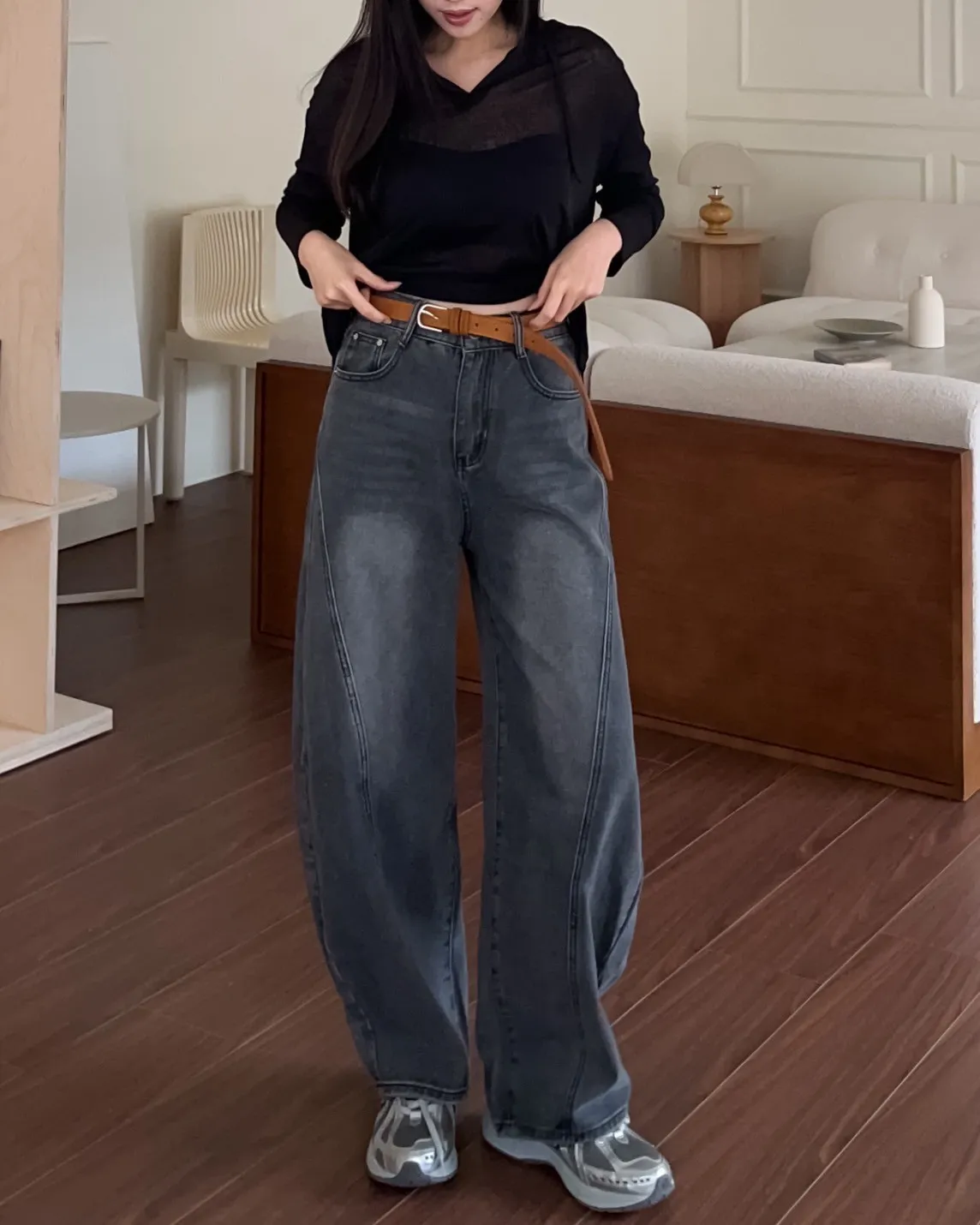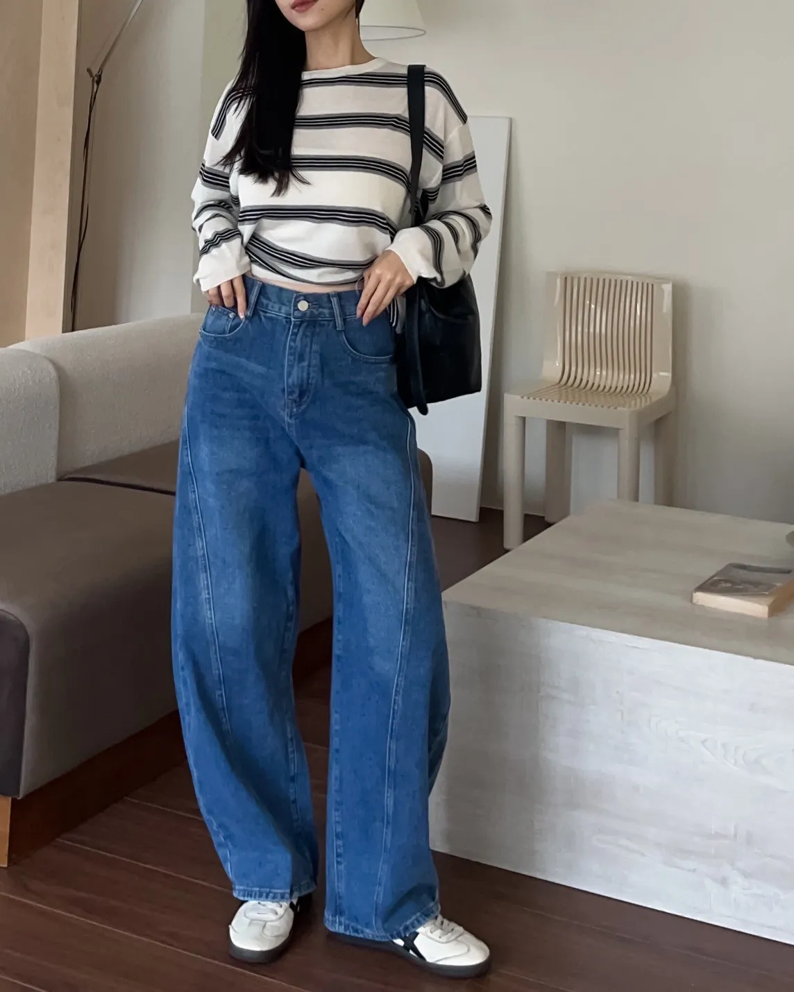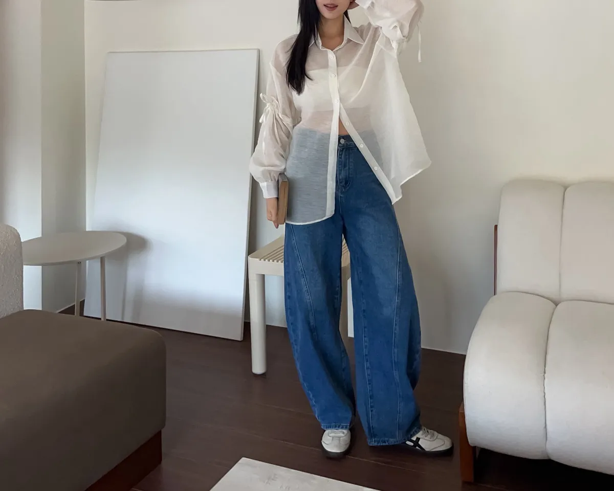 T0064[S-XL]推!!版型必入牛仔彎刀褲(藍/灰)