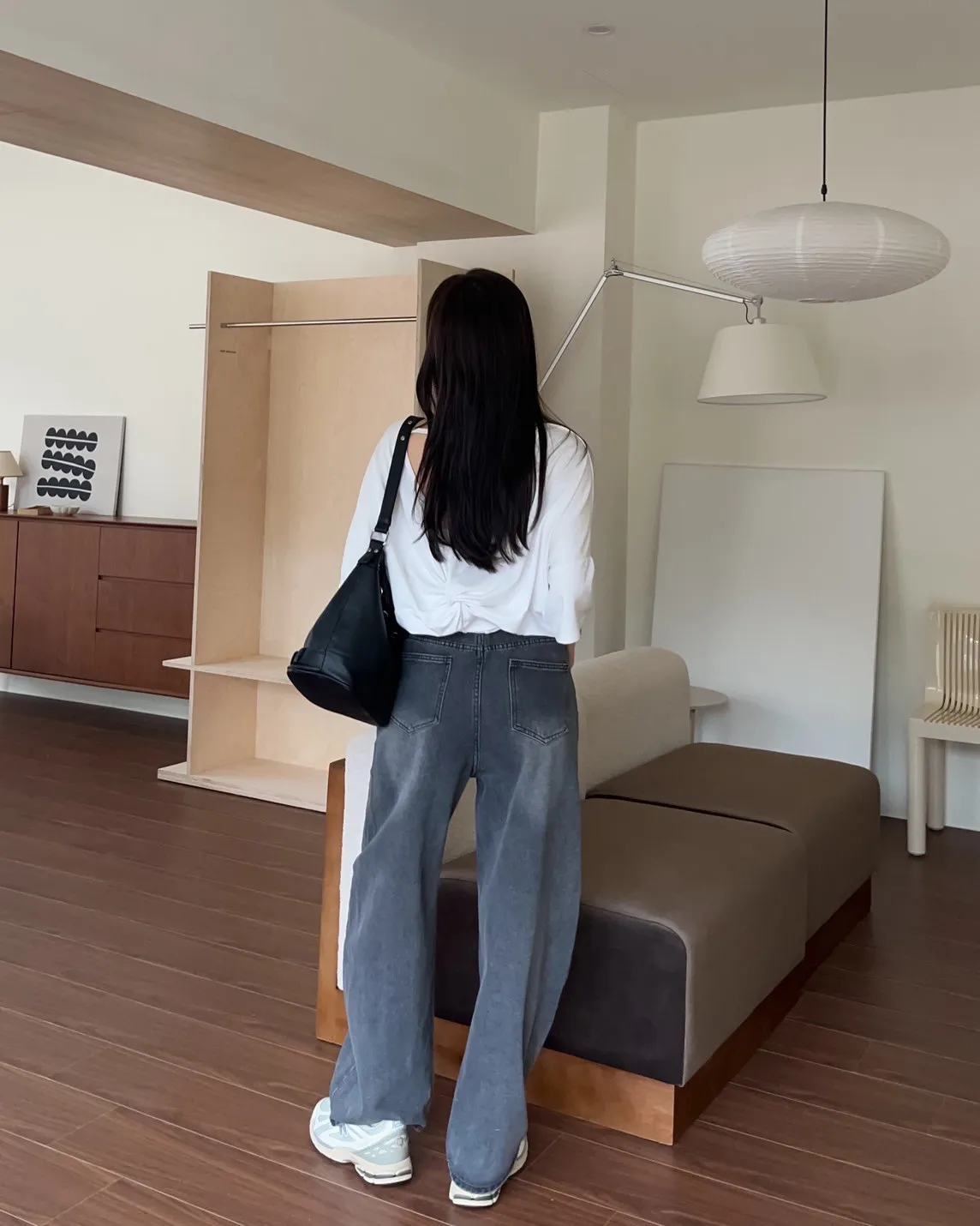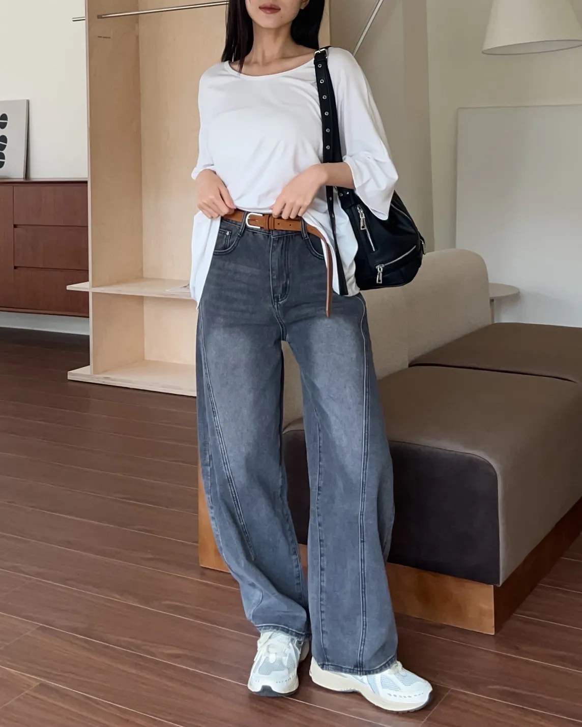 版型正常 有後鬆緊(一點點彈性) 兩側口袋 車線造型 彎刀褲型 腿部刷白 布料本身無彈性