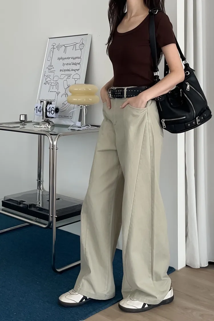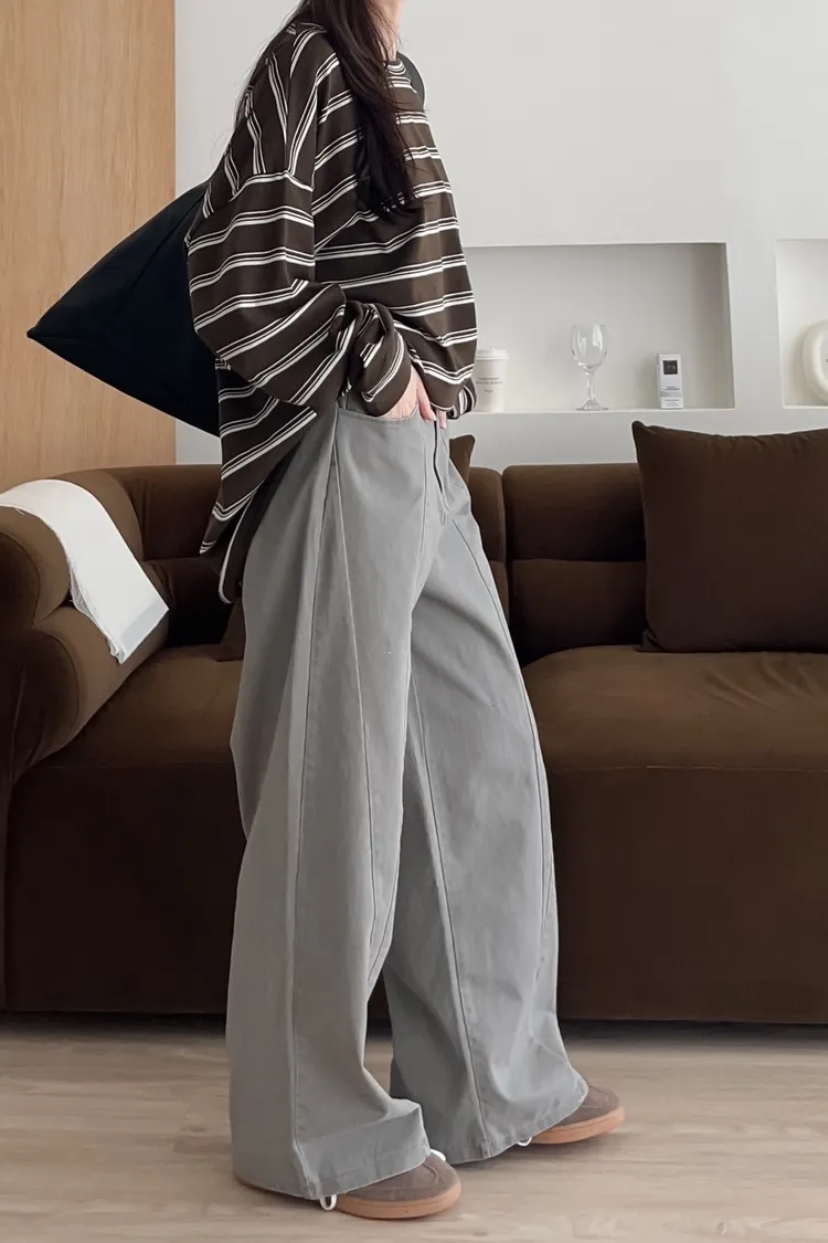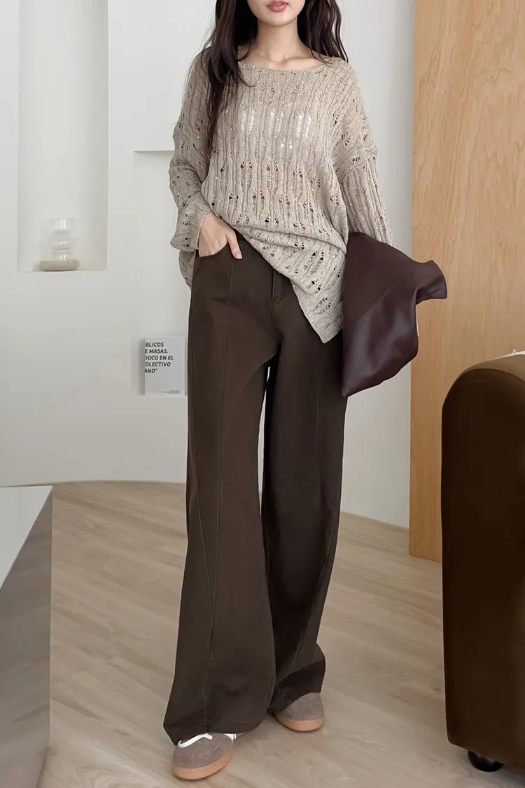 U0007栗子蒙布朗磨毛割線寬褲(杏/咖啡/灰)