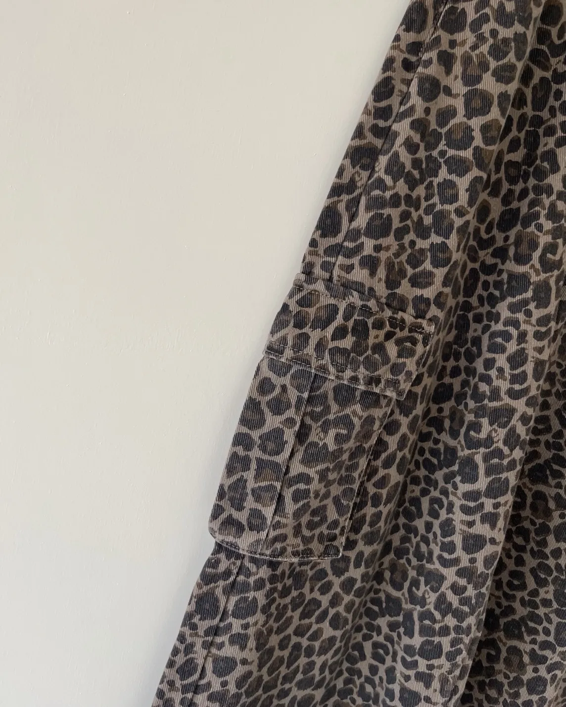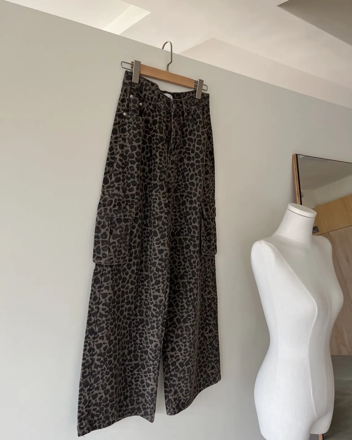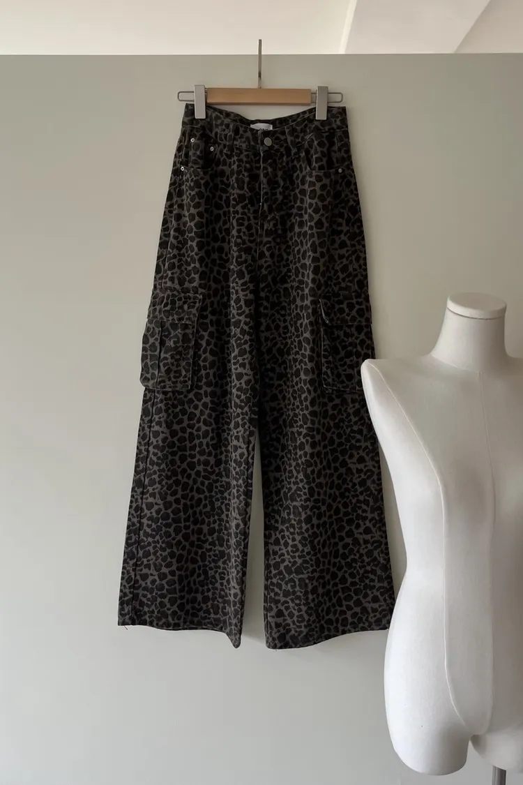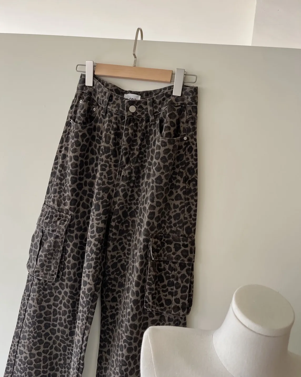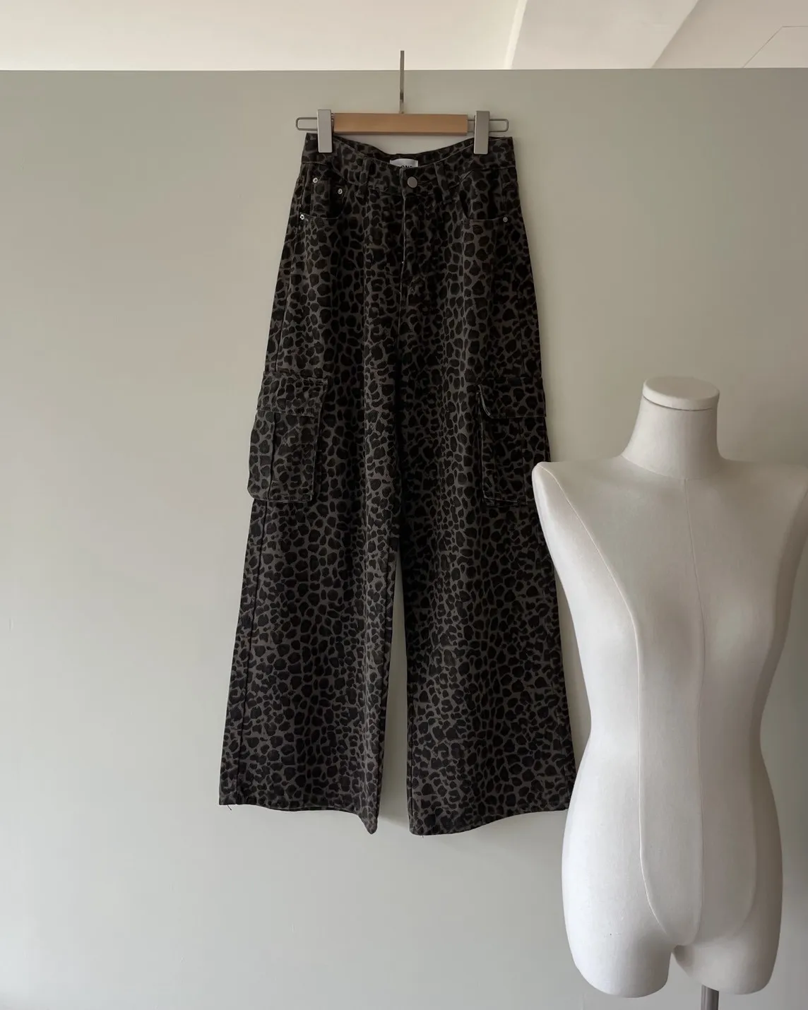 W0029[S-XL]都會野性豹紋工裝寬褲