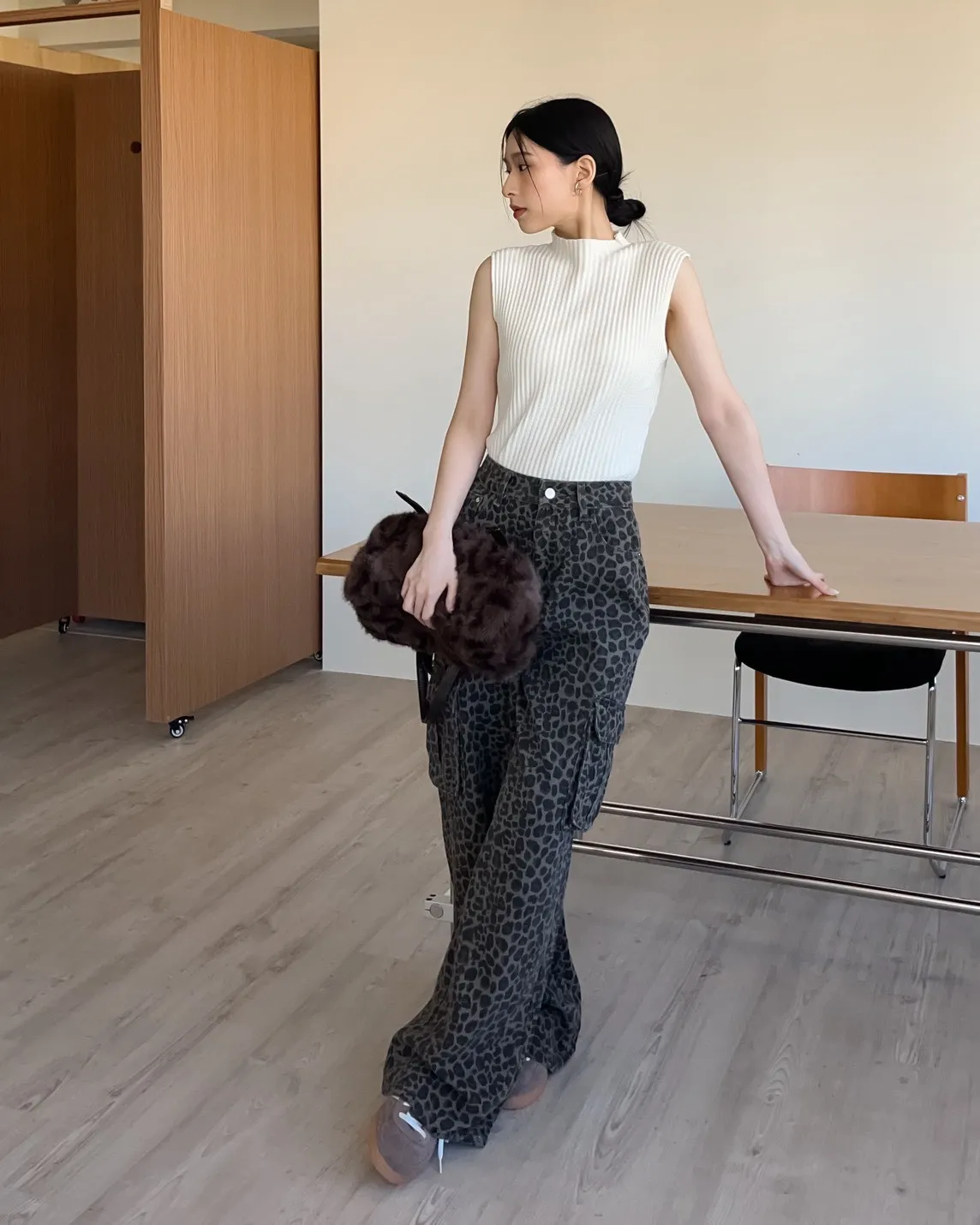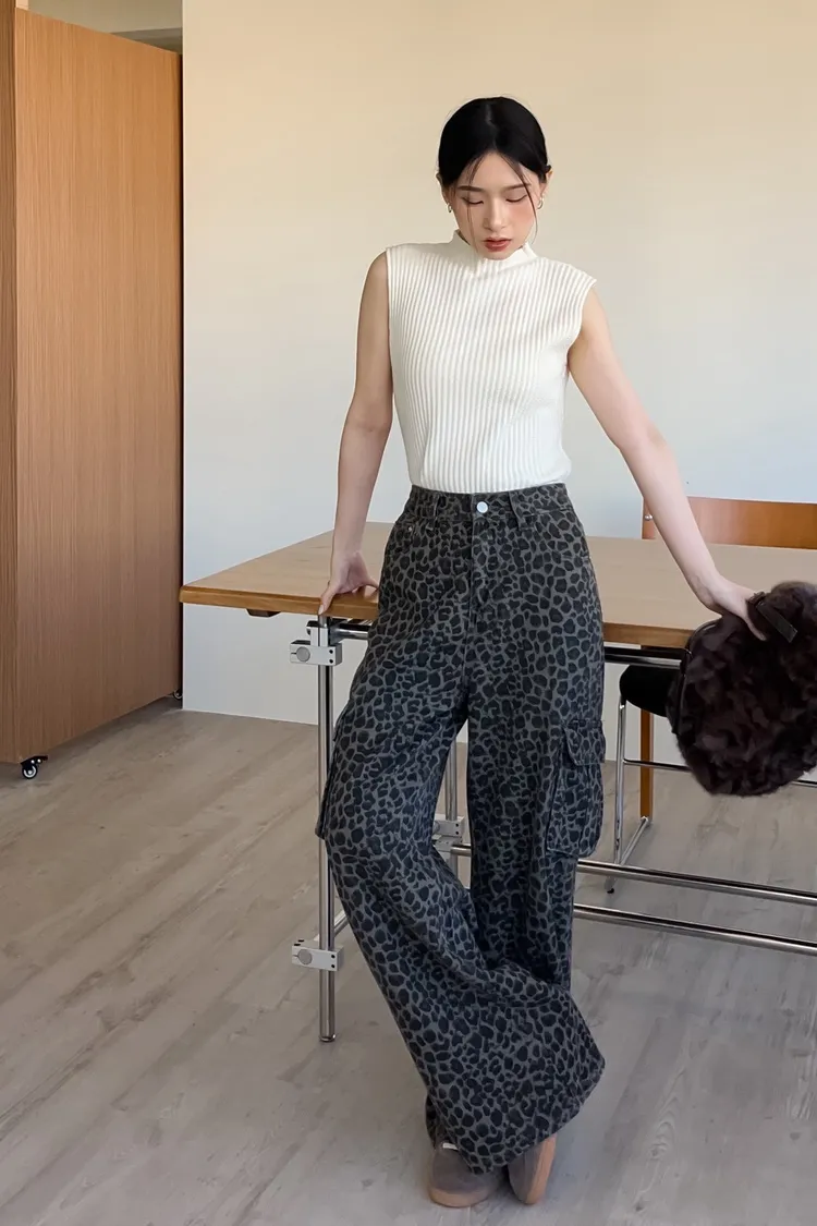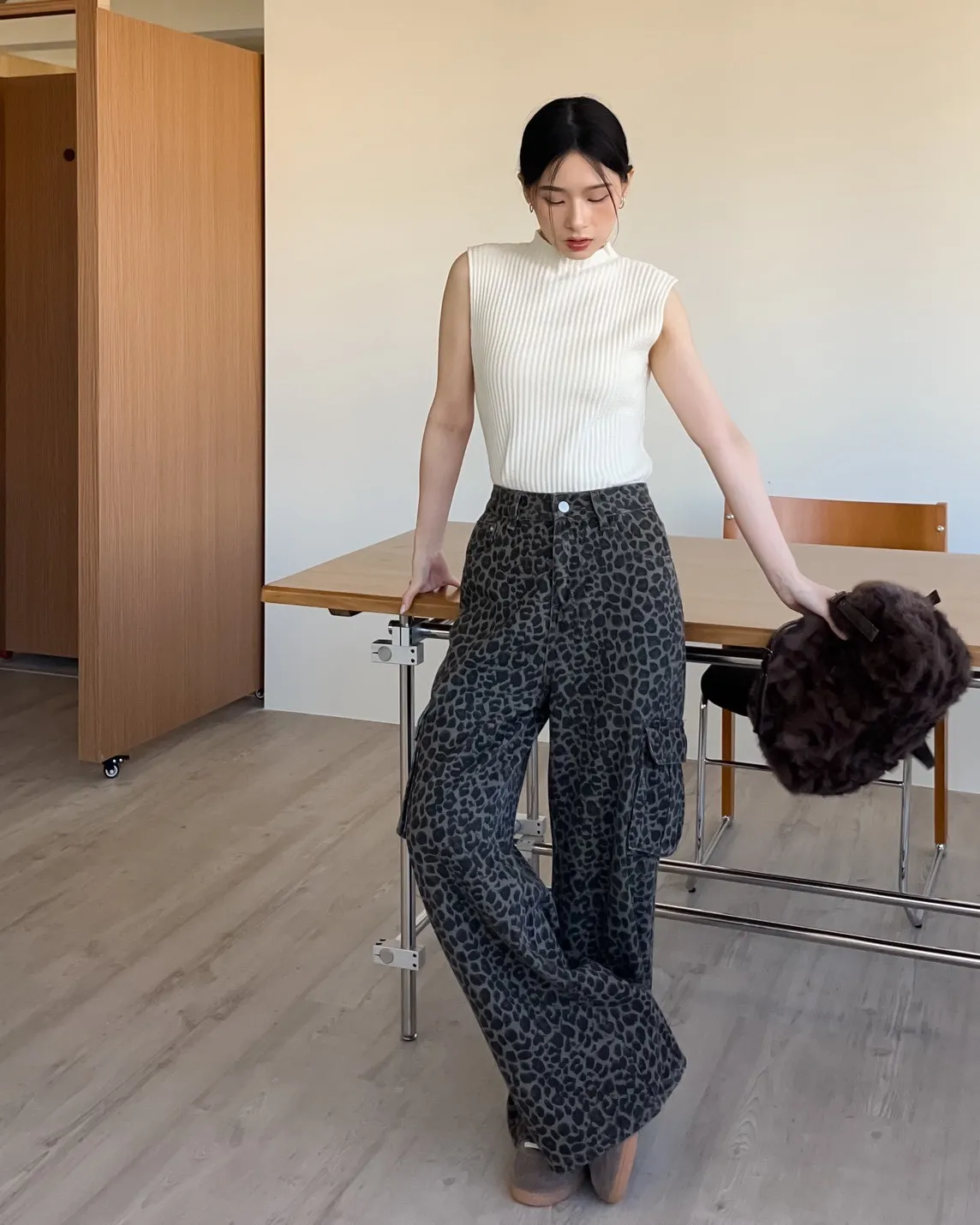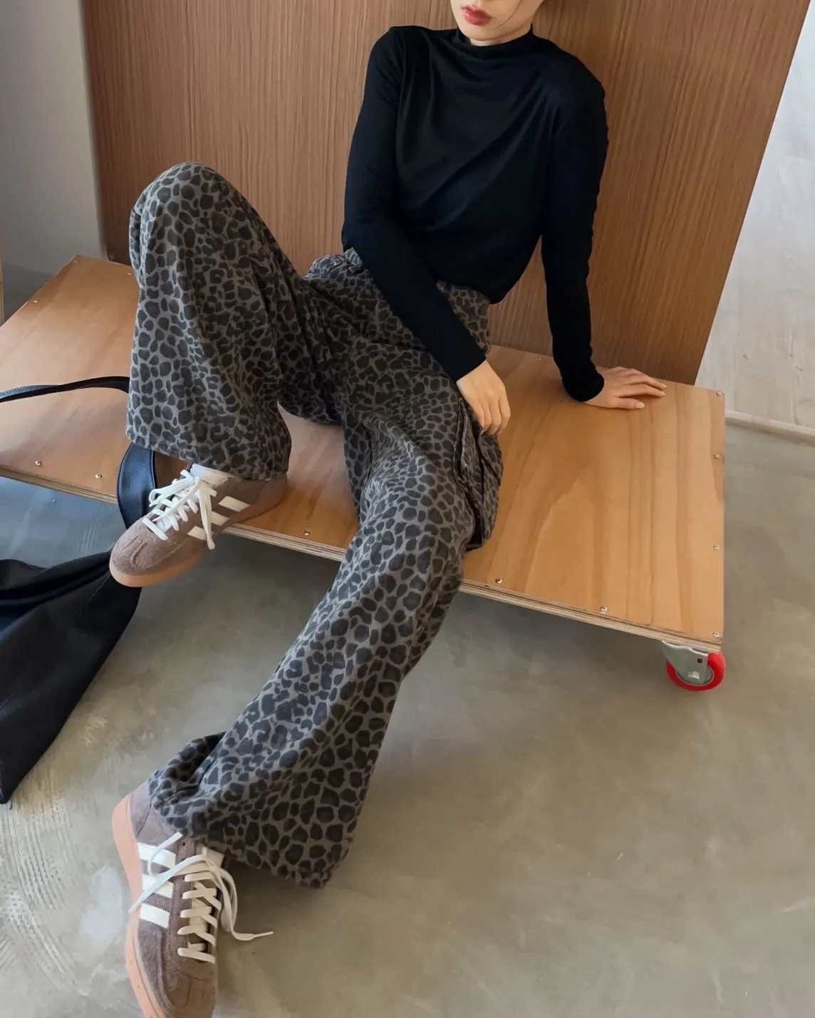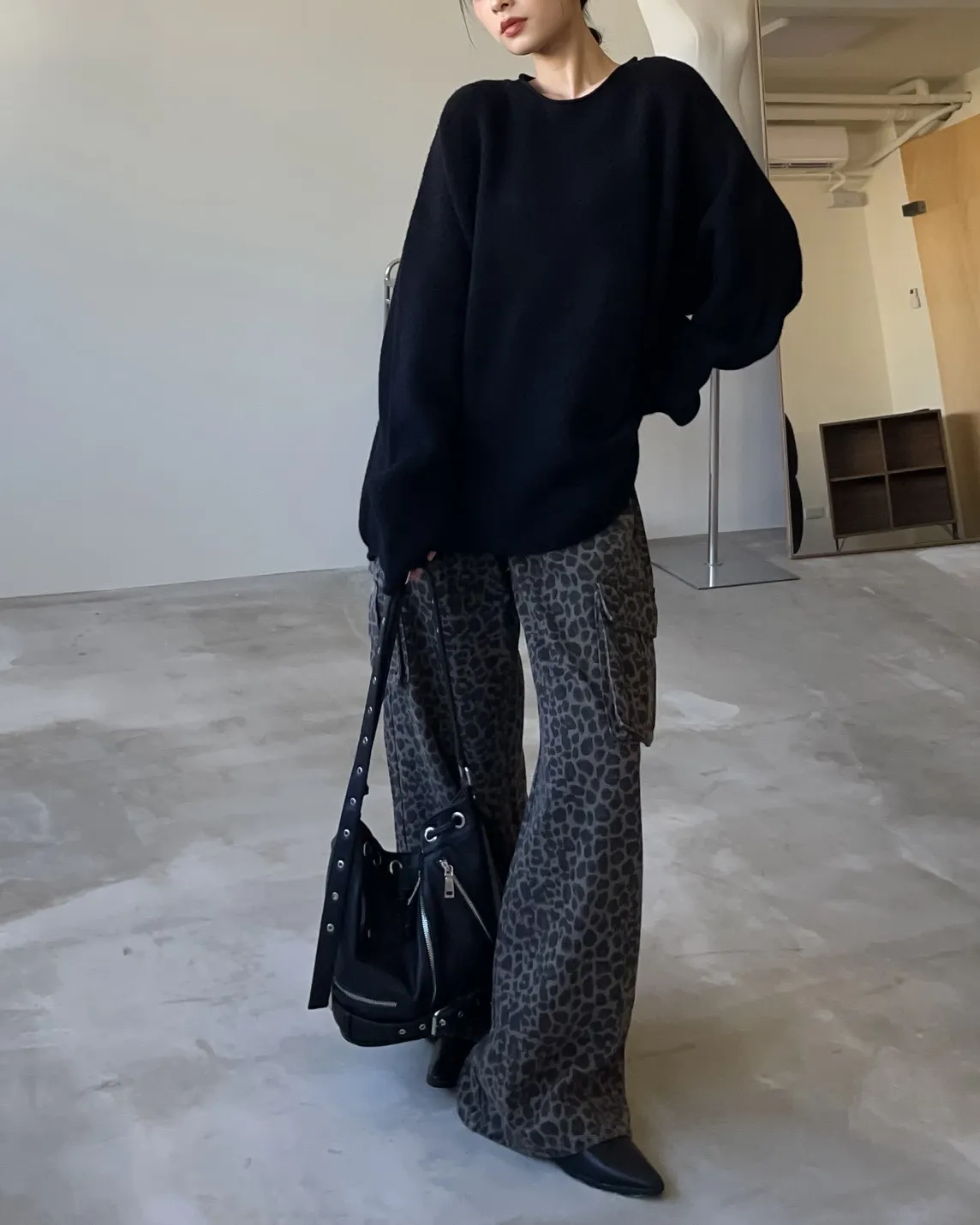 W0029[S-XL]都會野性豹紋工裝寬褲