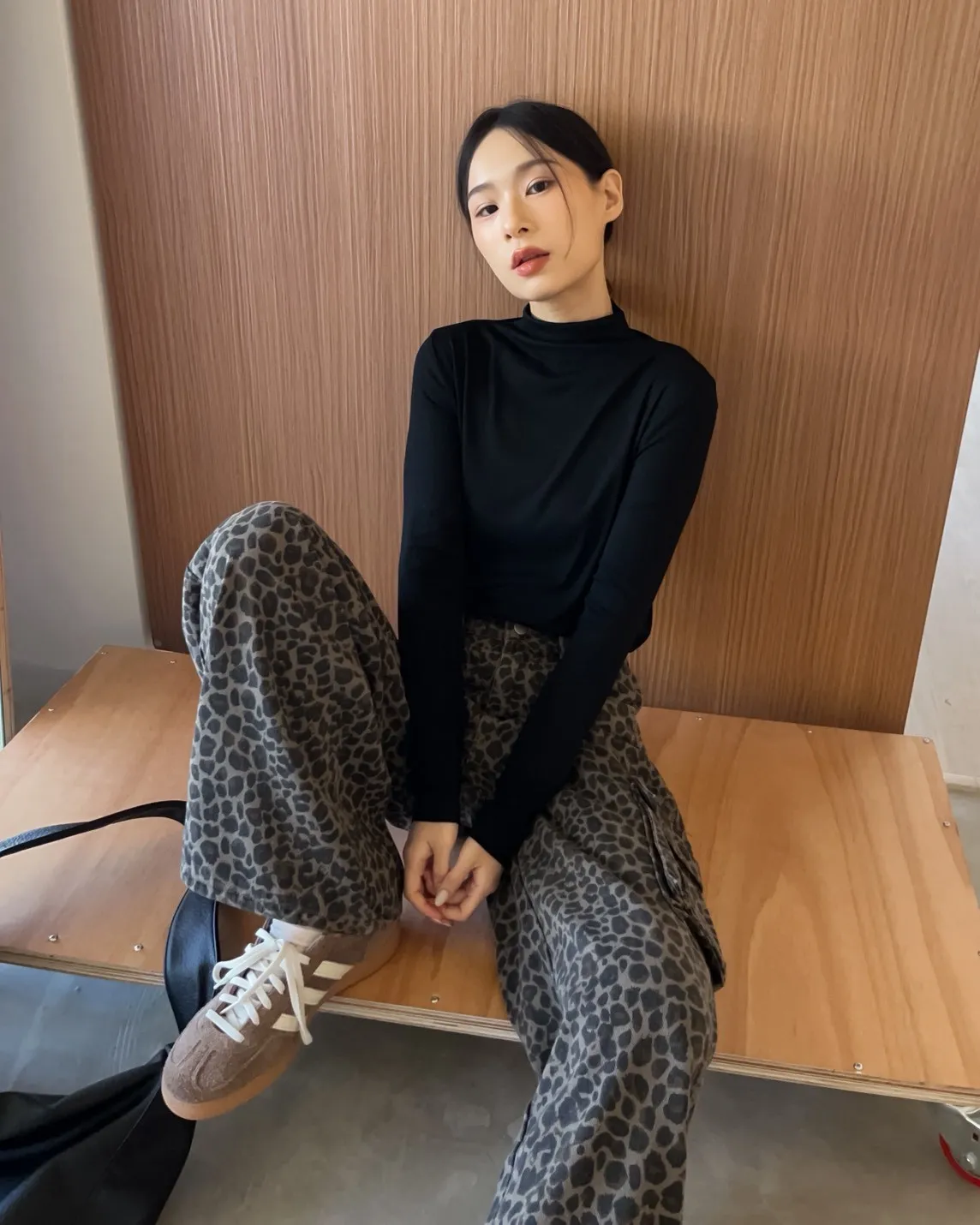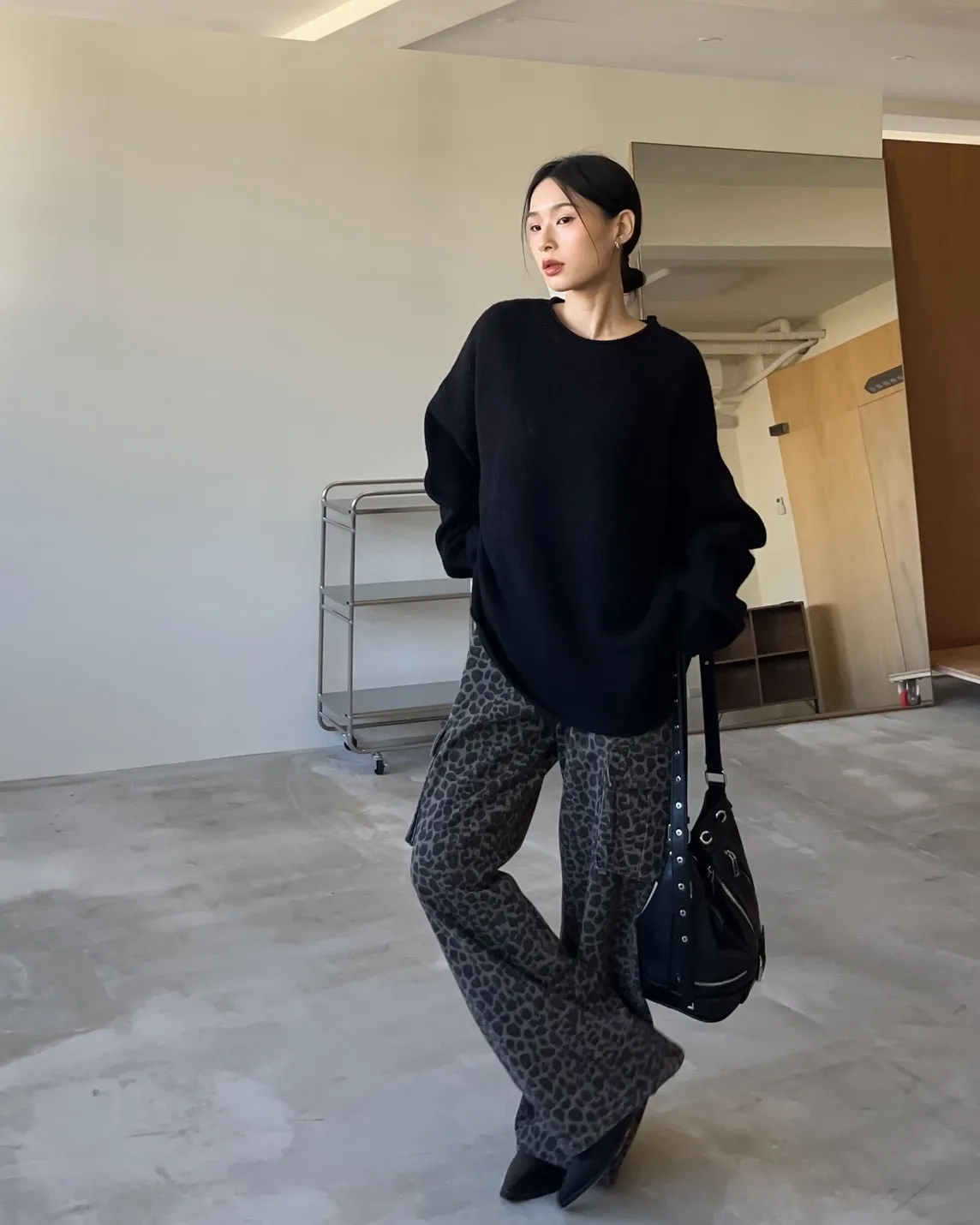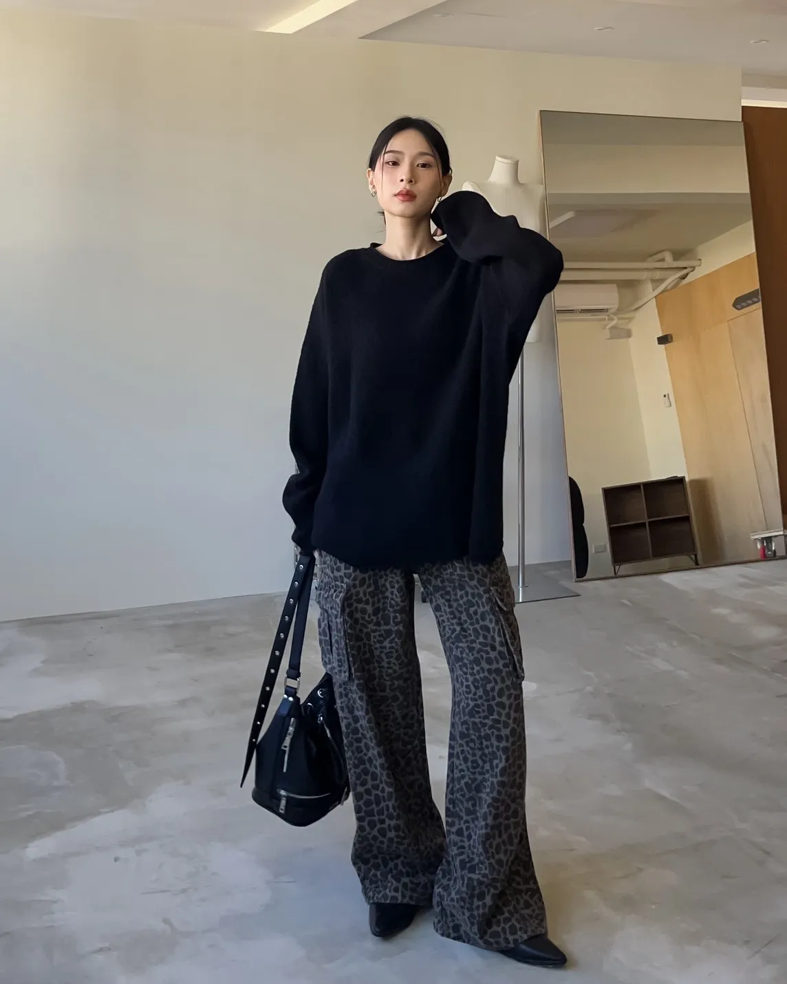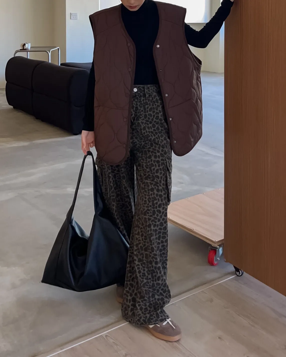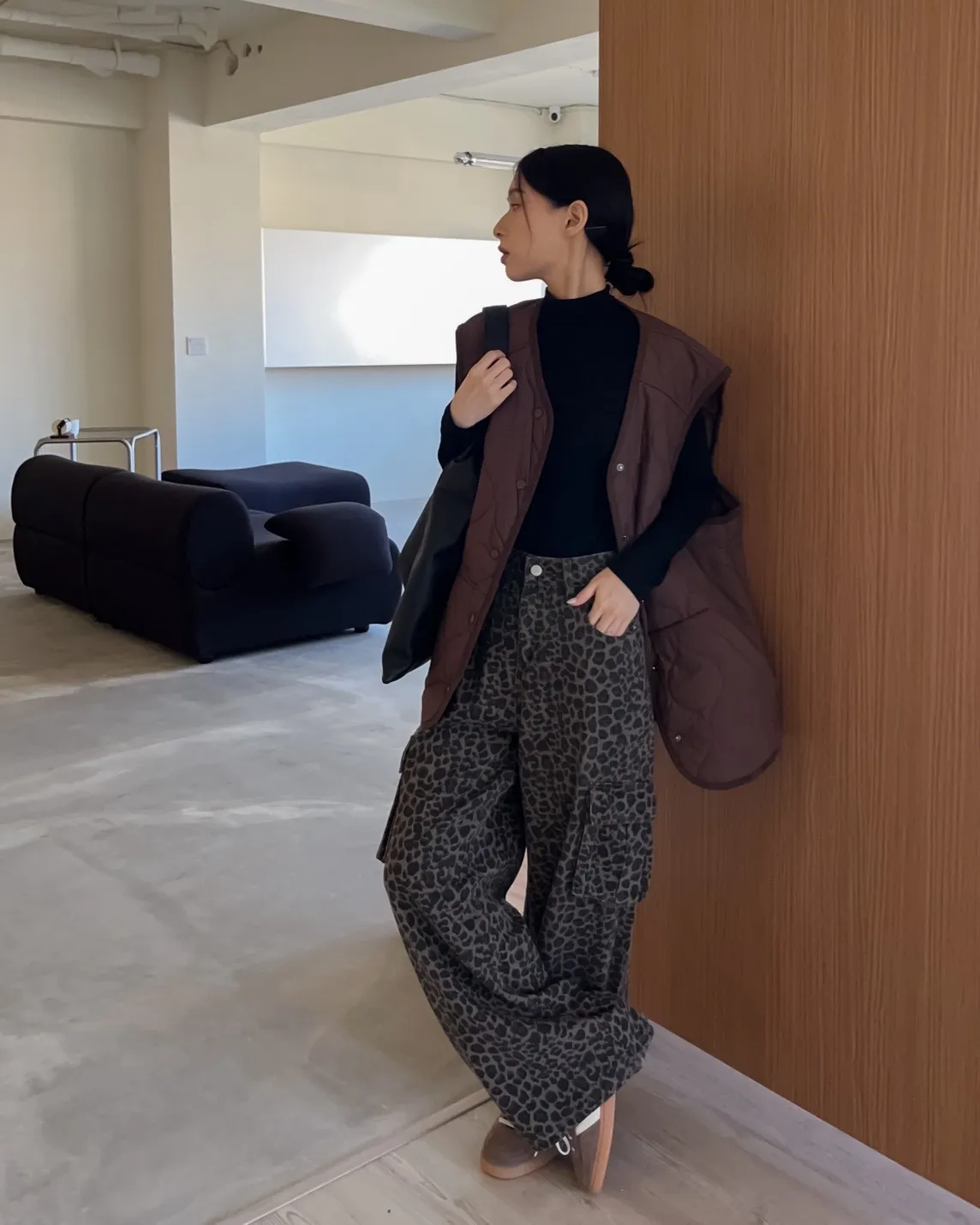 W0029[S-XL]都會野性豹紋工裝寬褲