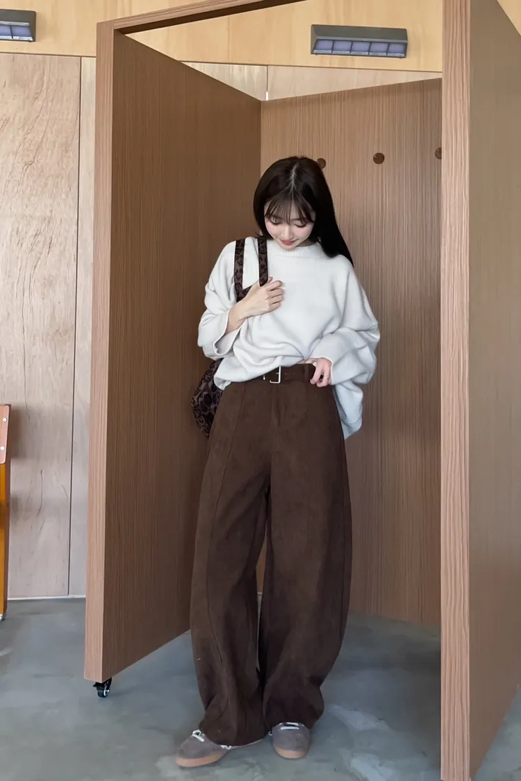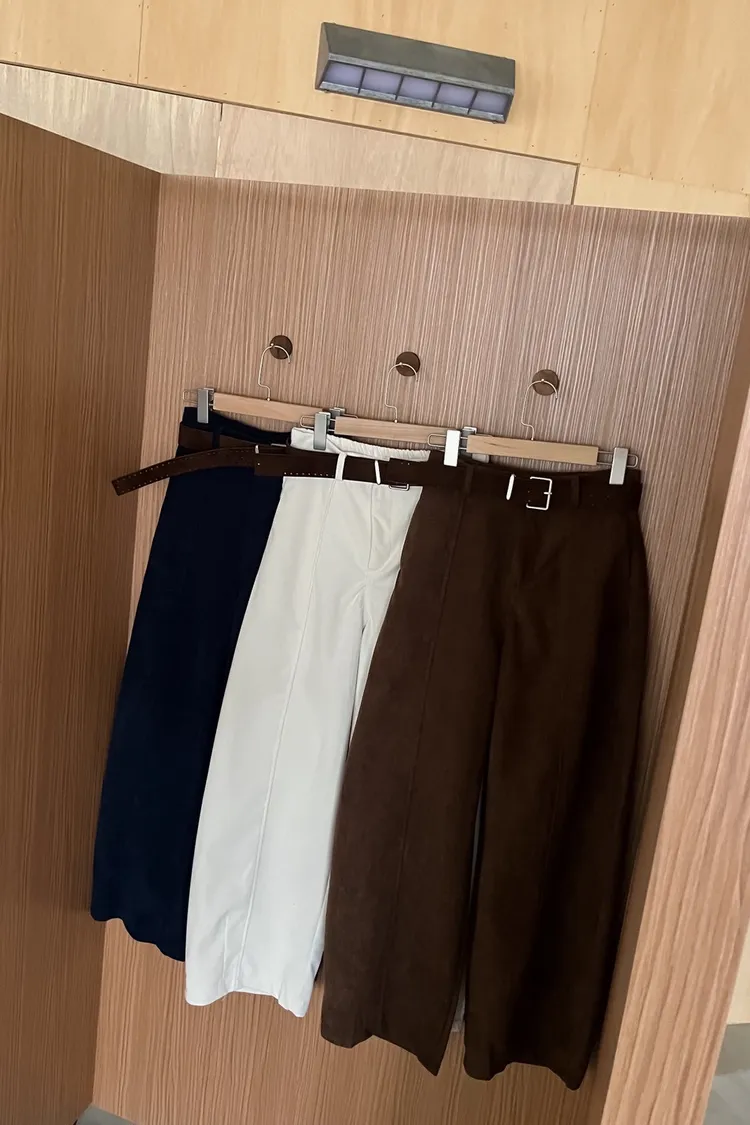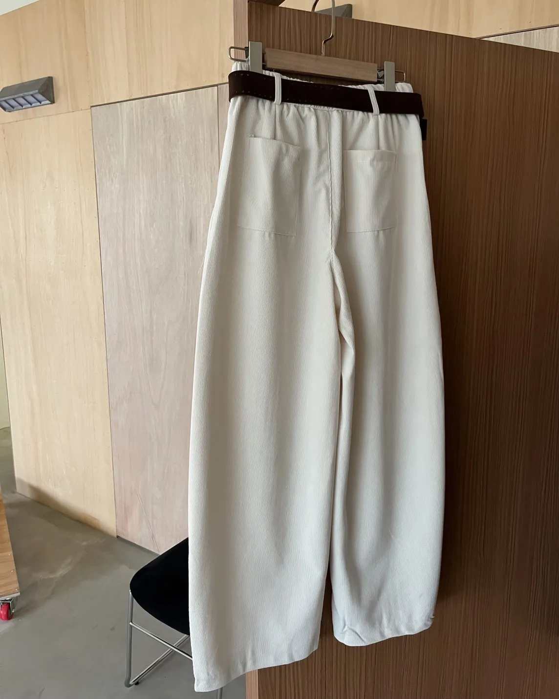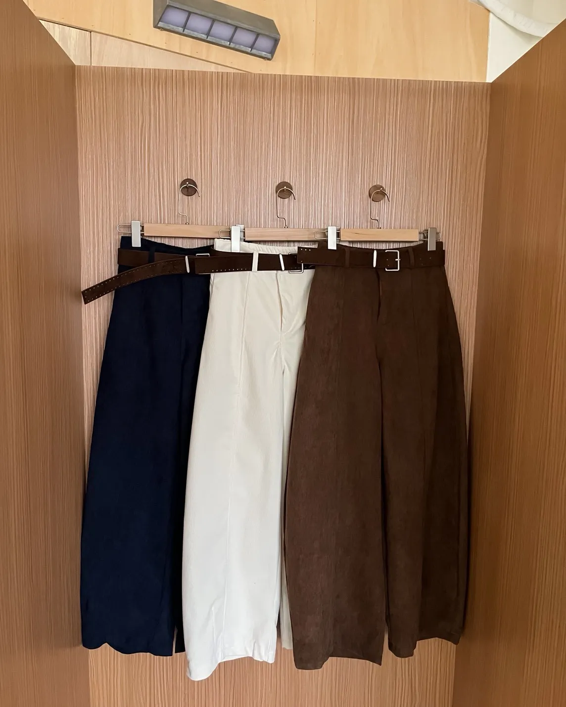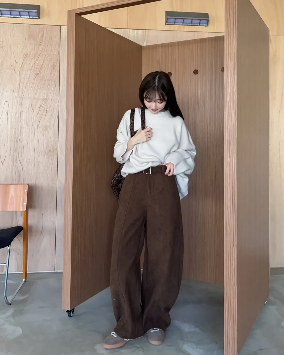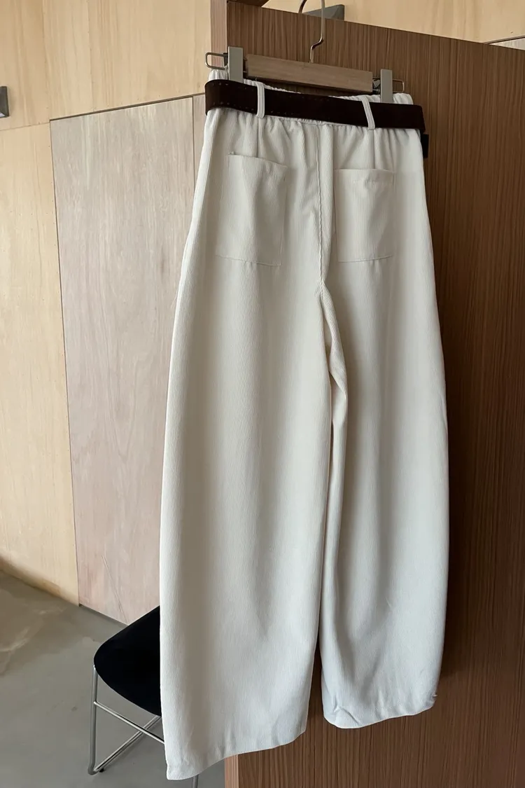 V0077(附麂皮帶)梨寶必買!!燈心絨繭型褲(米白/咖啡/深藍)
