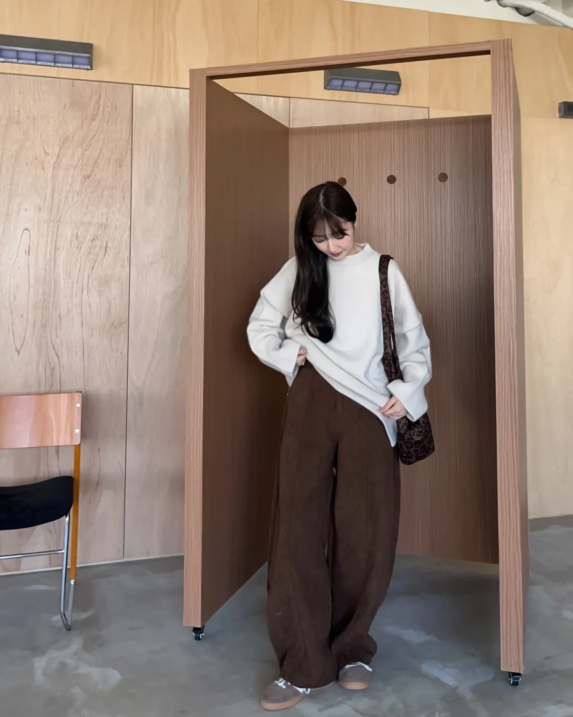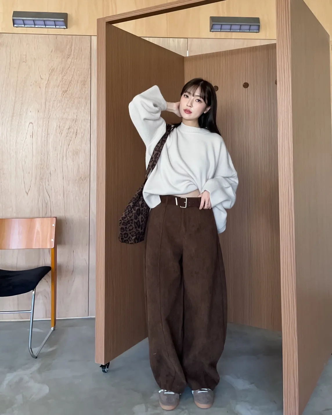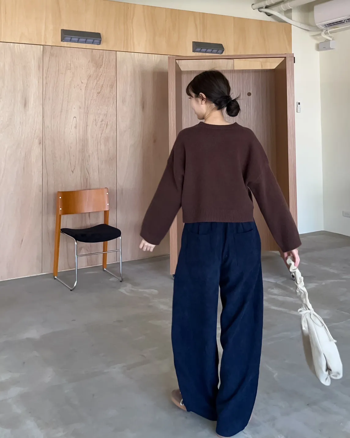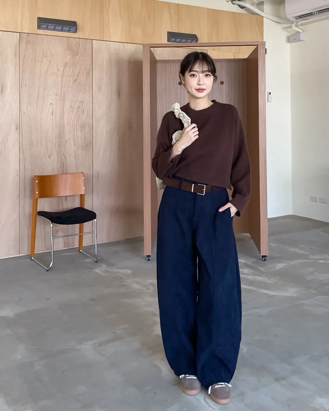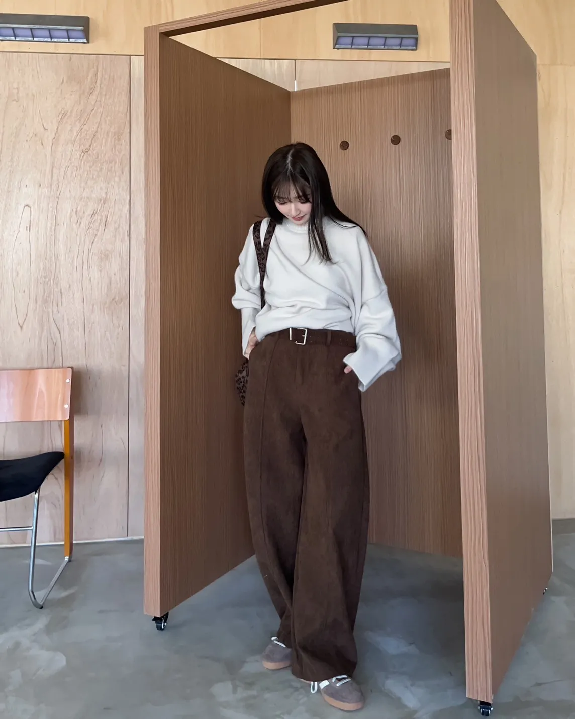 V0077(附麂皮帶)梨寶必買!!燈心絨繭型褲(米白/咖啡/深藍)
