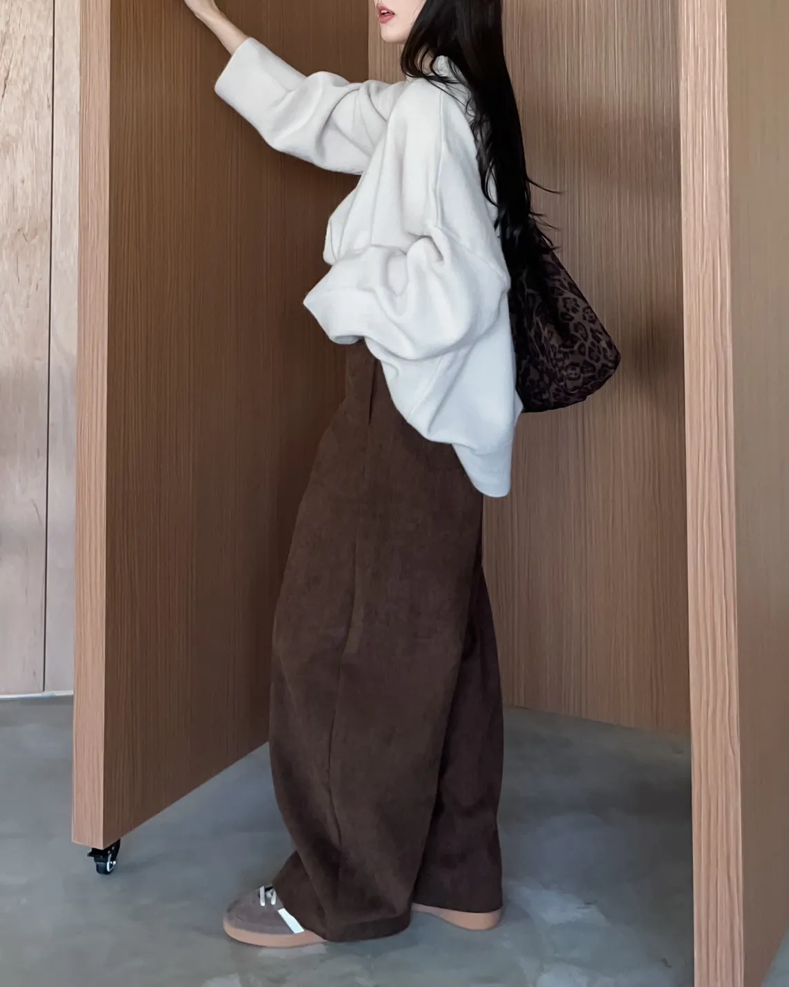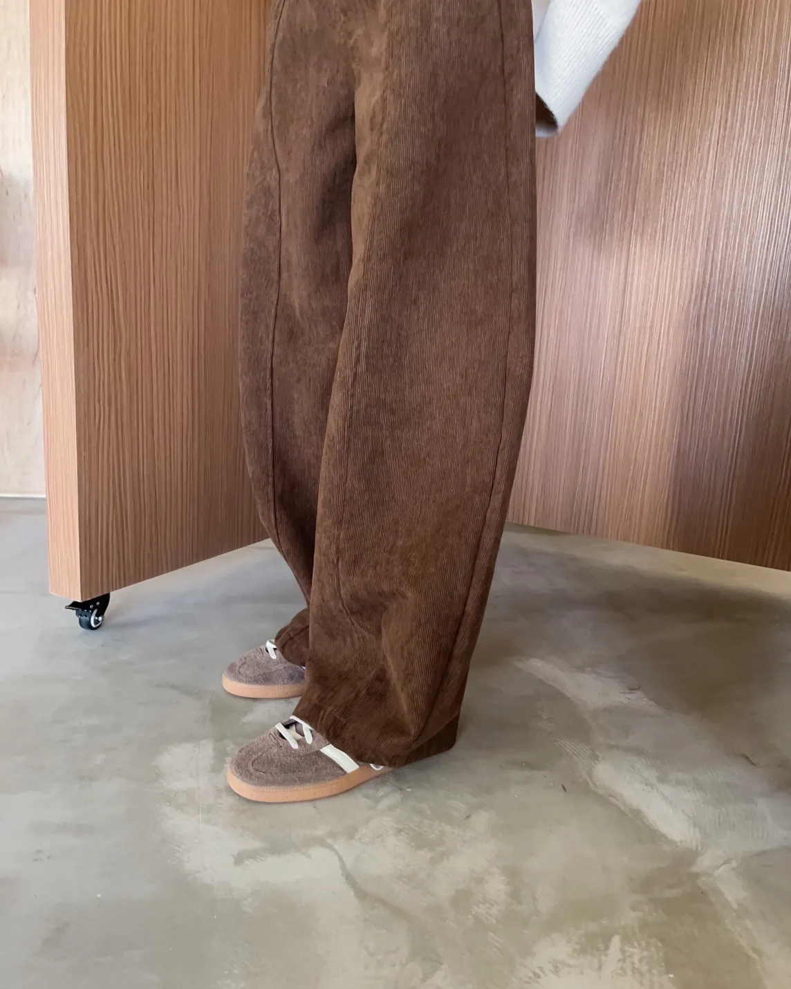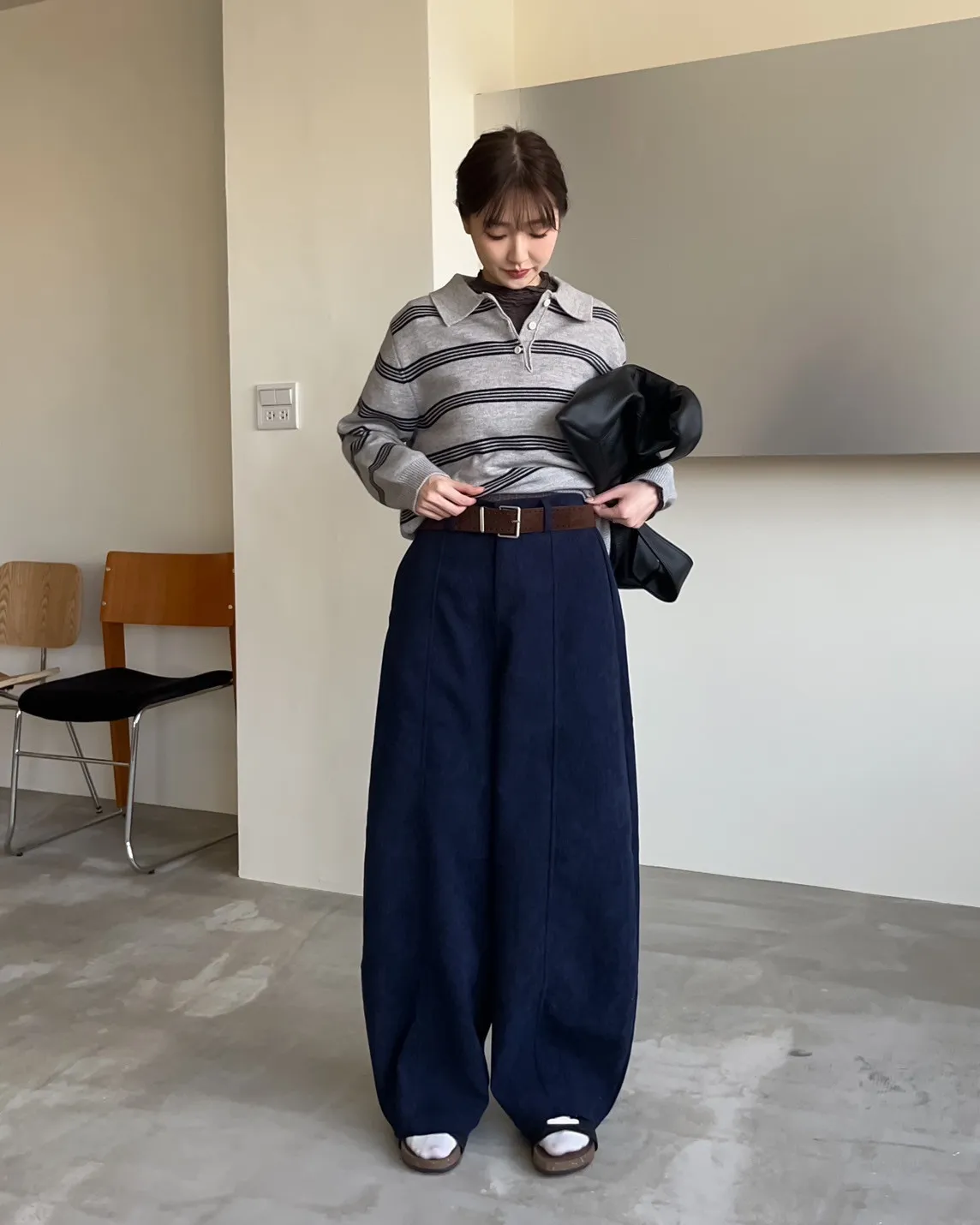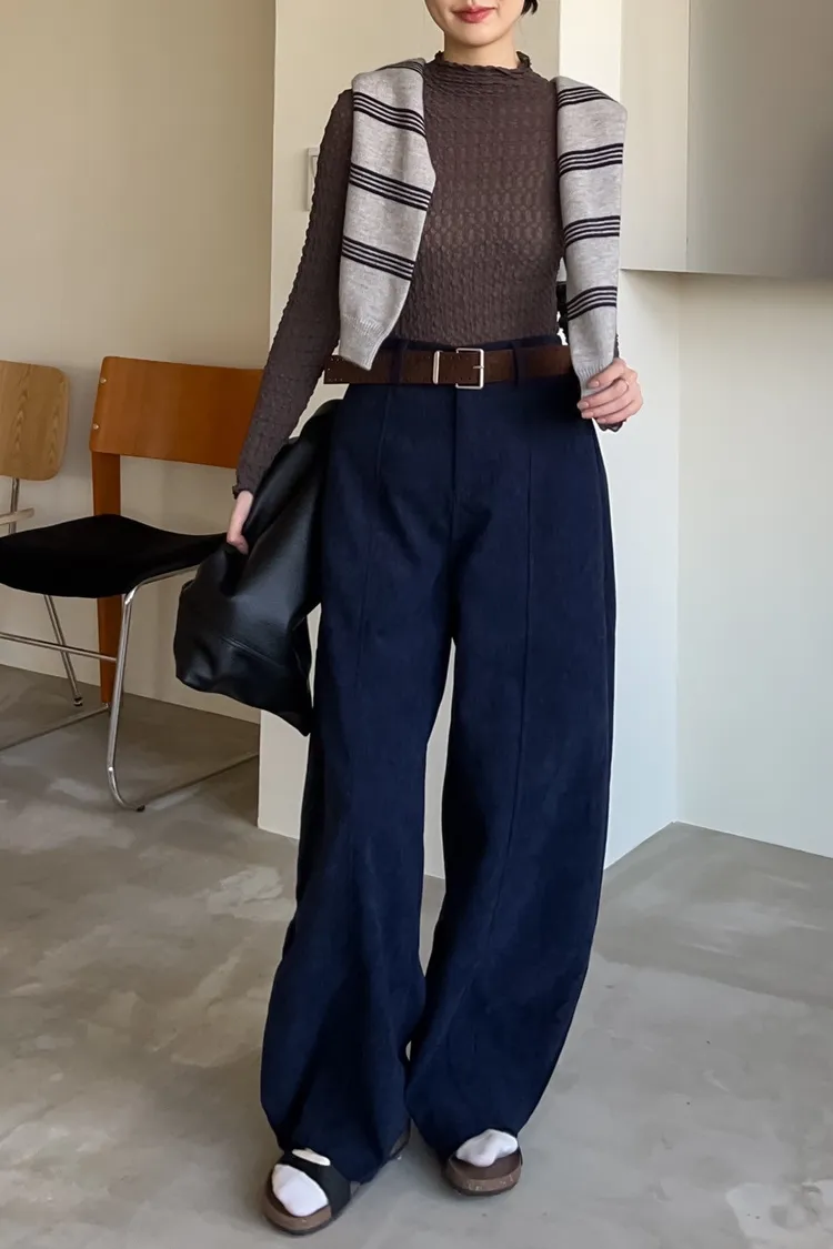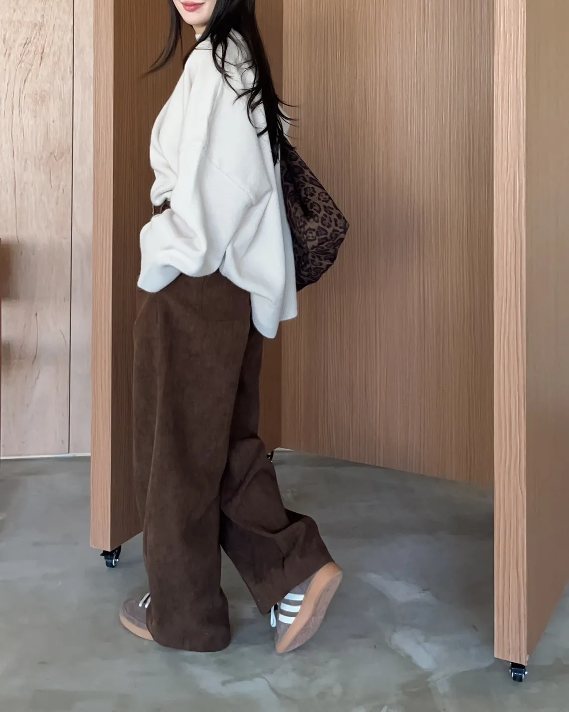V0077(附麂皮帶)梨寶必買!!燈心絨繭型褲(米白/咖啡/深藍)