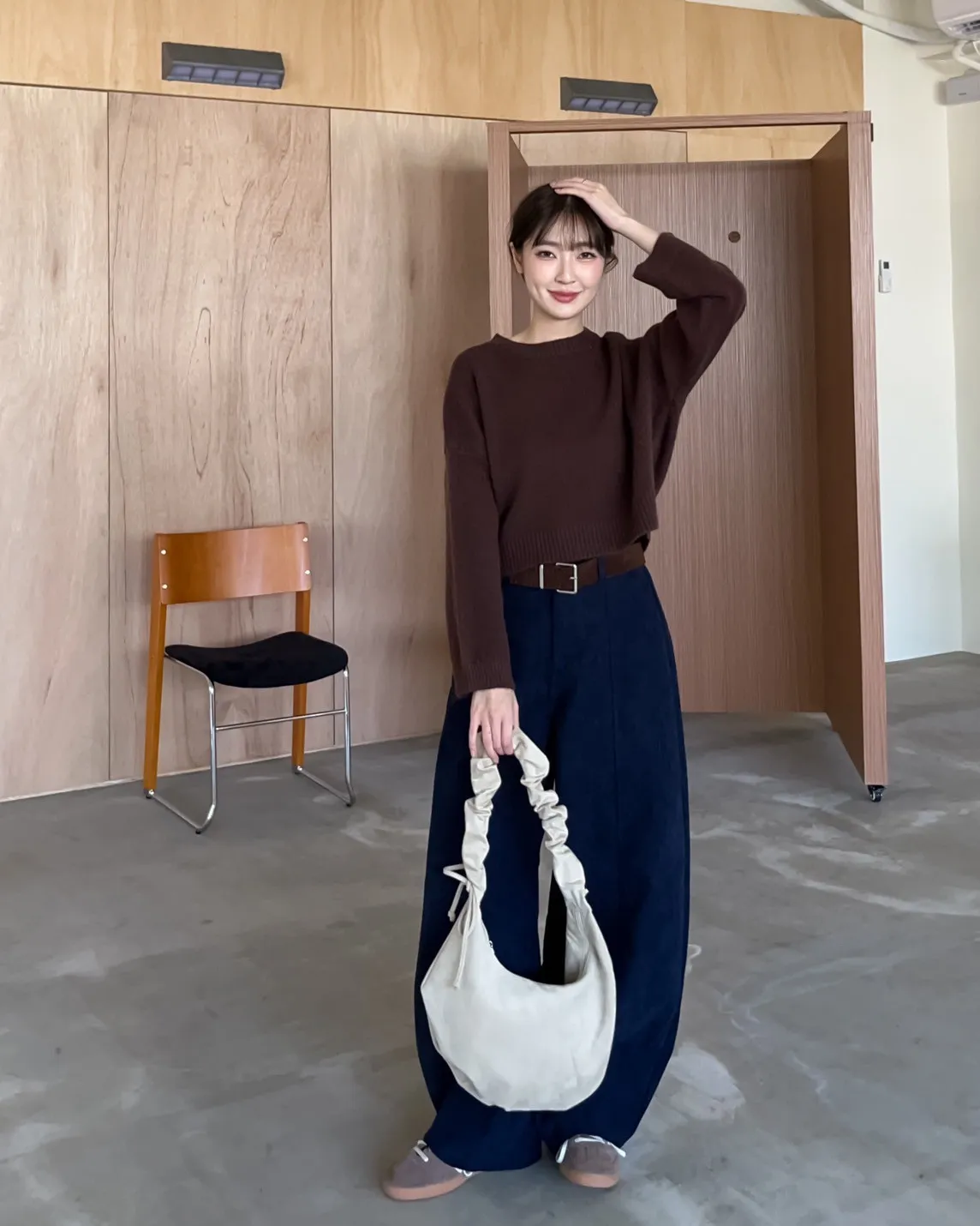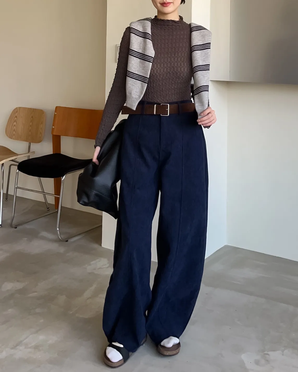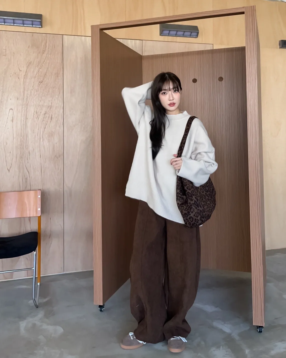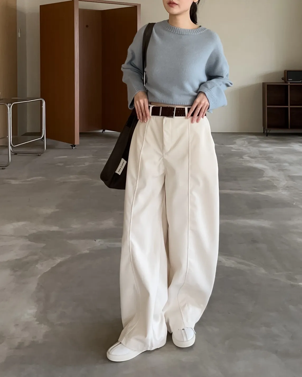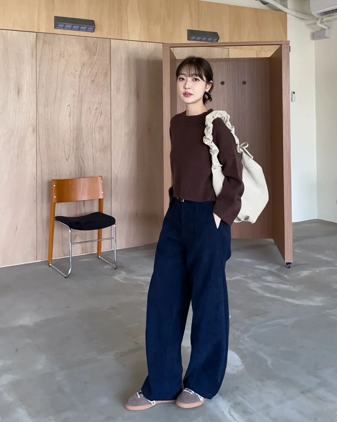 V0077(附麂皮帶)梨寶必買!!燈心絨繭型褲(米白/咖啡/深藍)