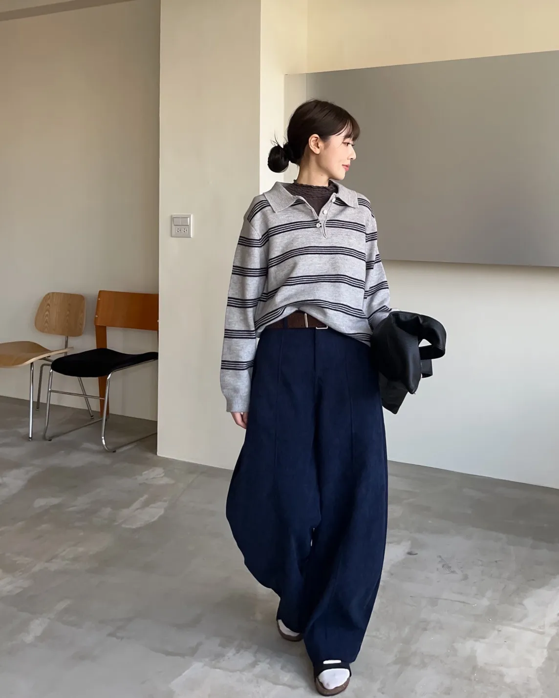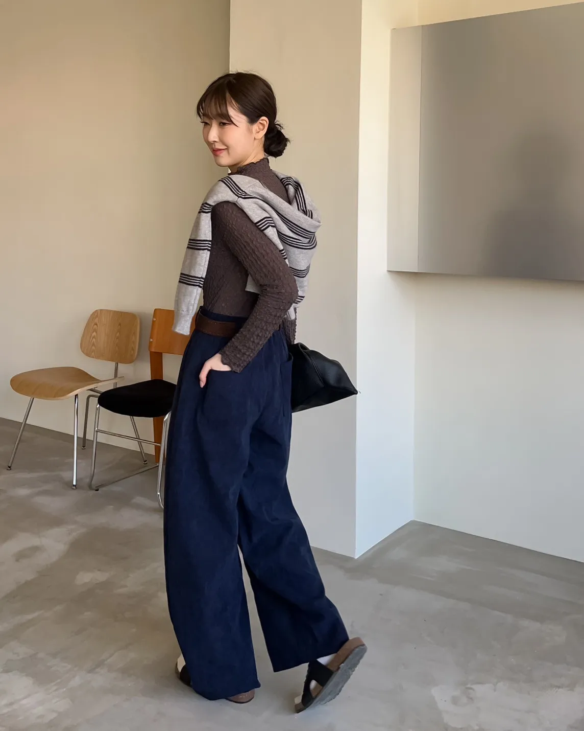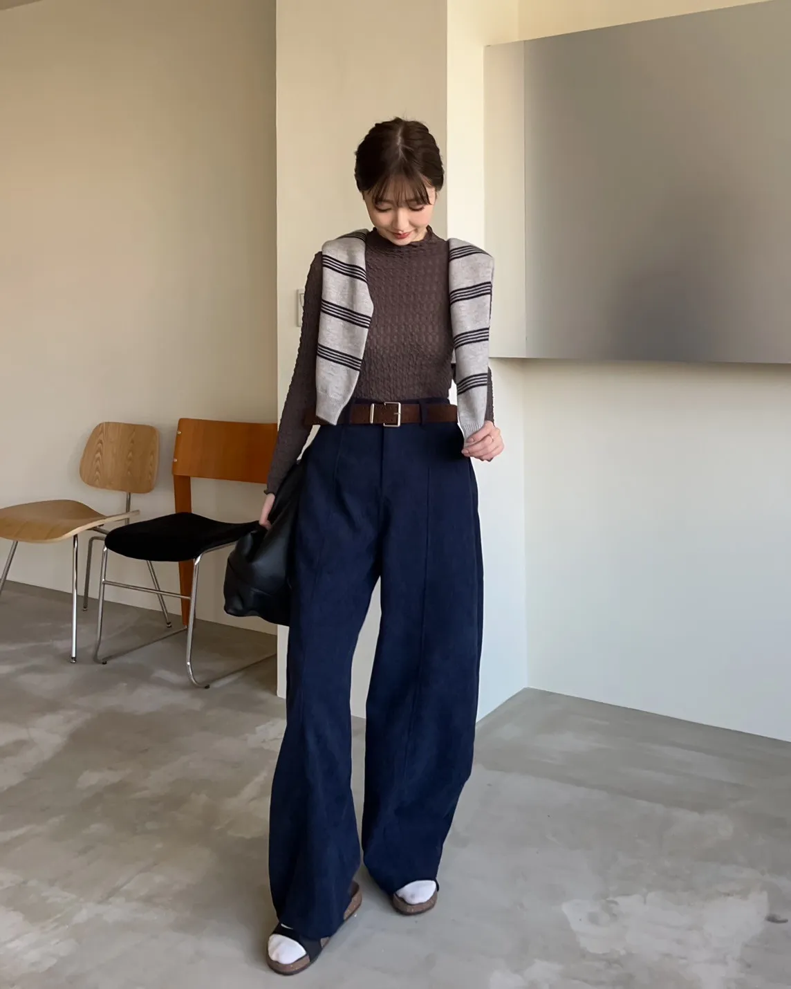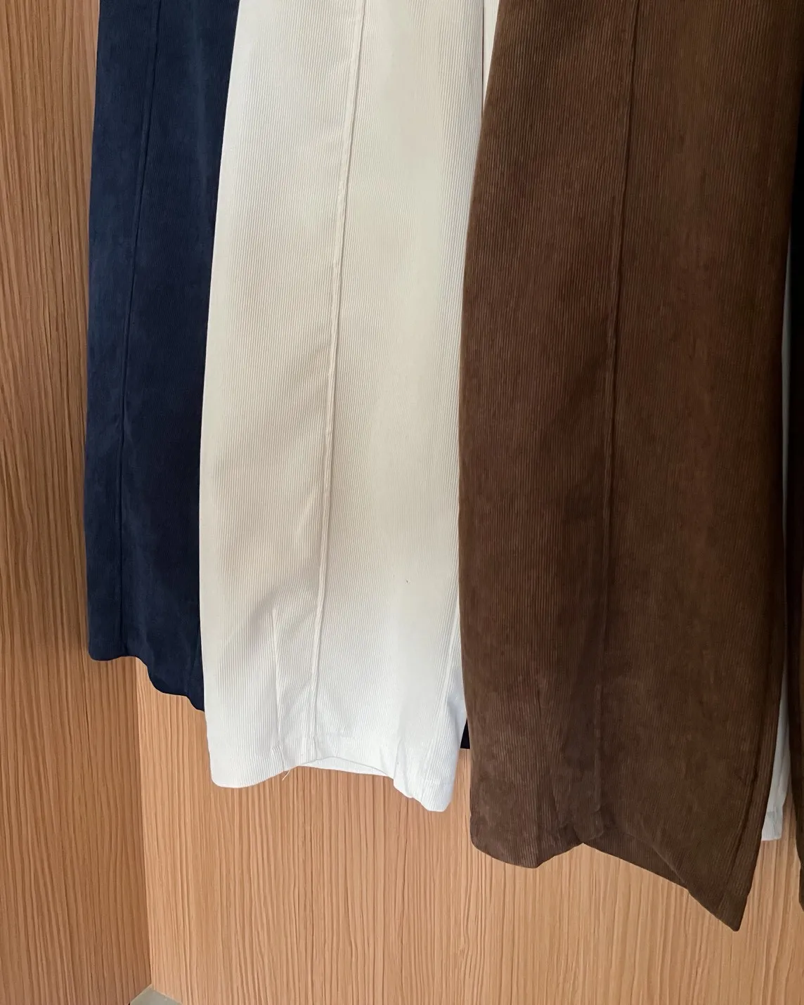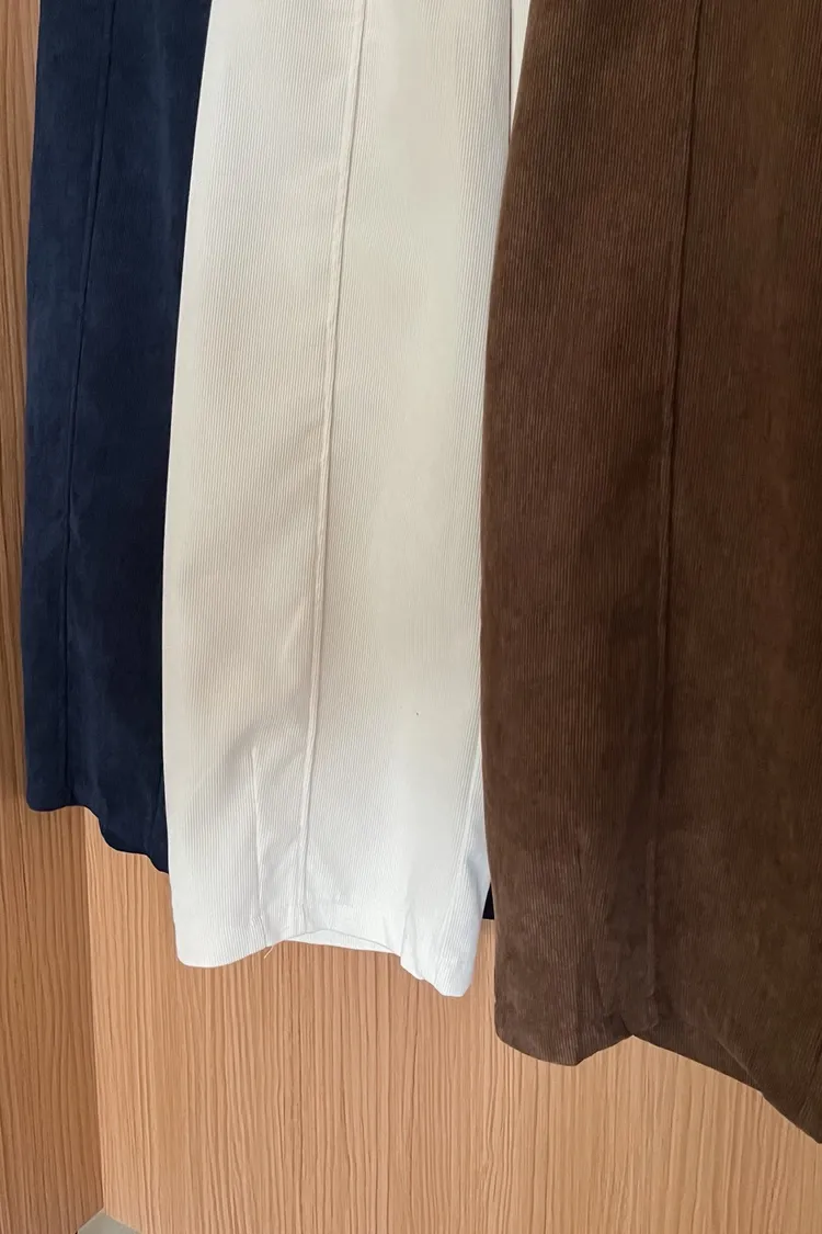 附多孔設計麂皮皮帶 後鬆緊 建議尺寸S-大M小L 兩側口袋 後口袋 燈心絨布料無彈性 車中線 繭型好遮肉~