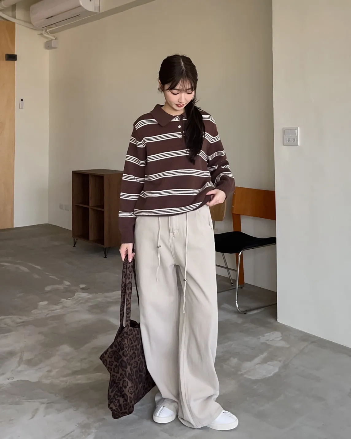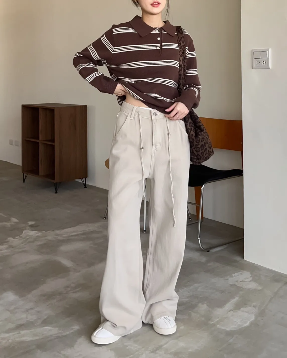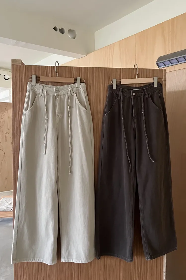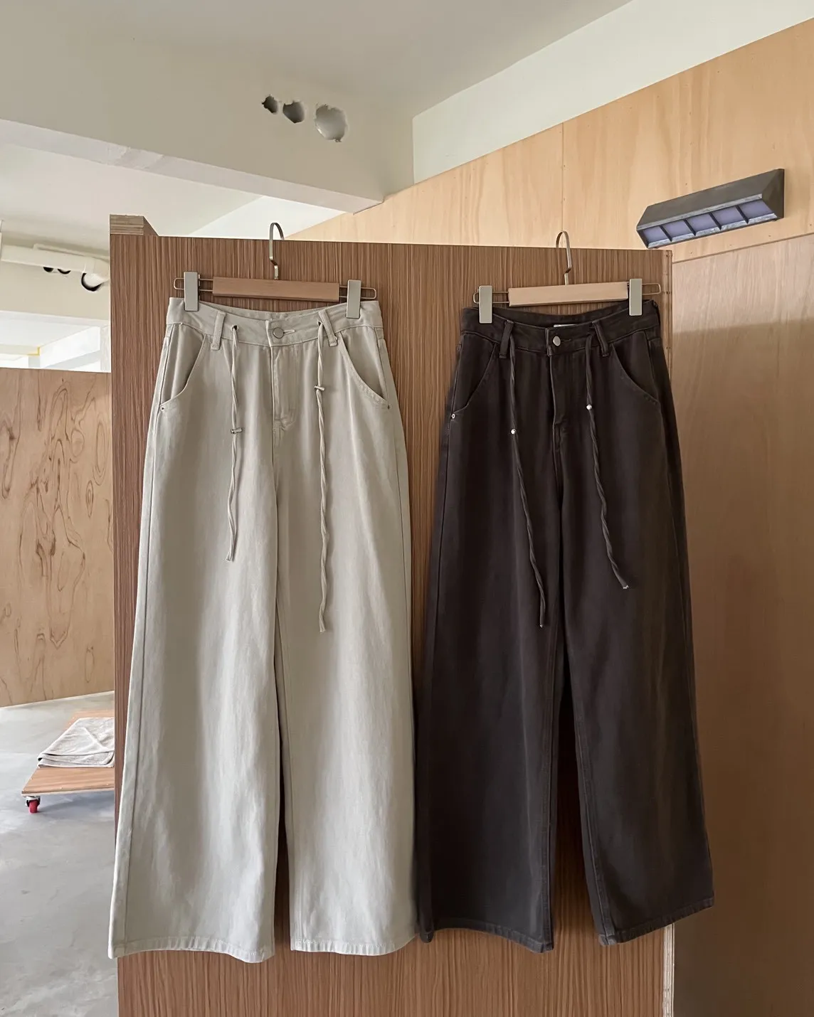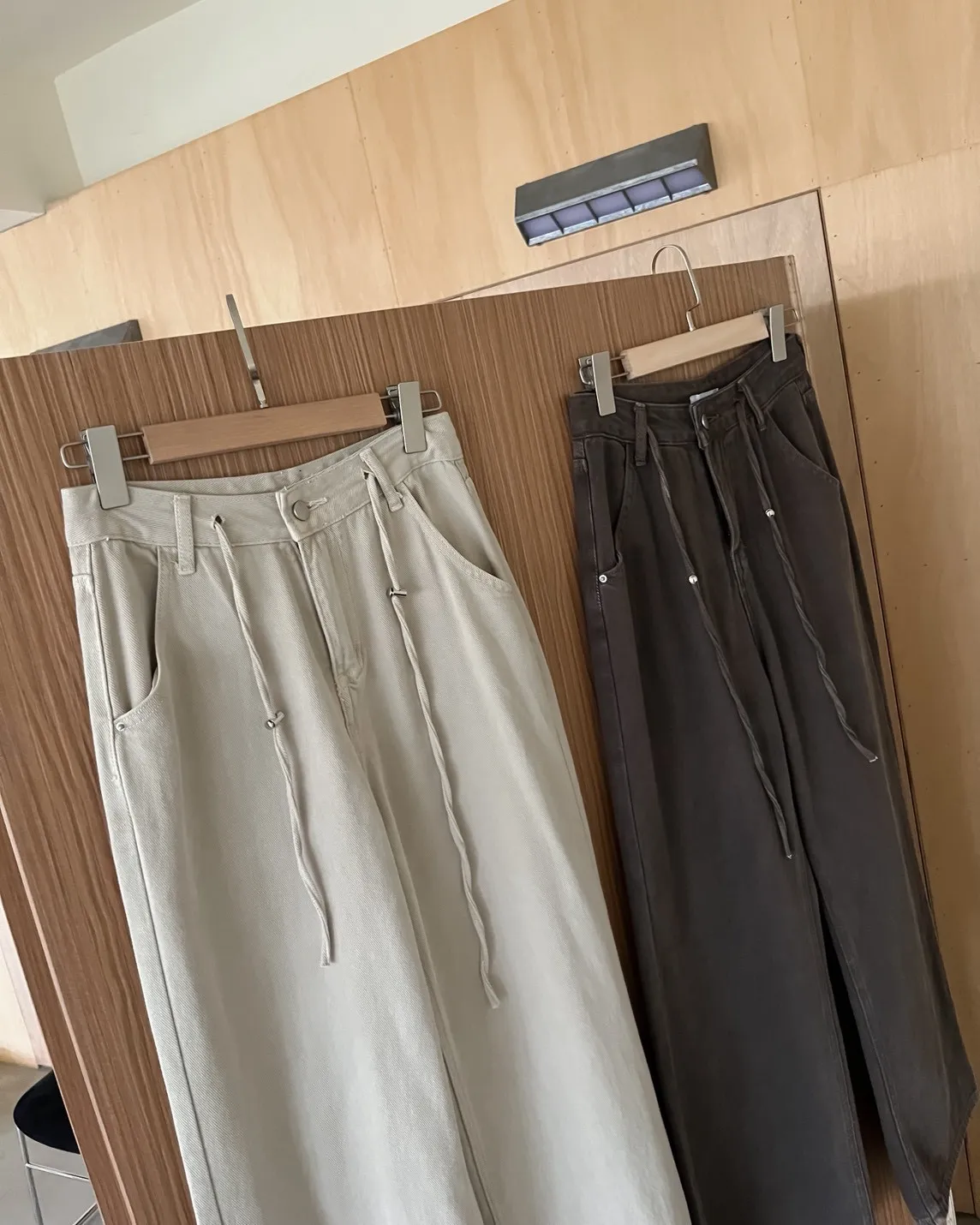 V0083榛果拿鐵水洗抽繩寬褲(杏/咖啡)