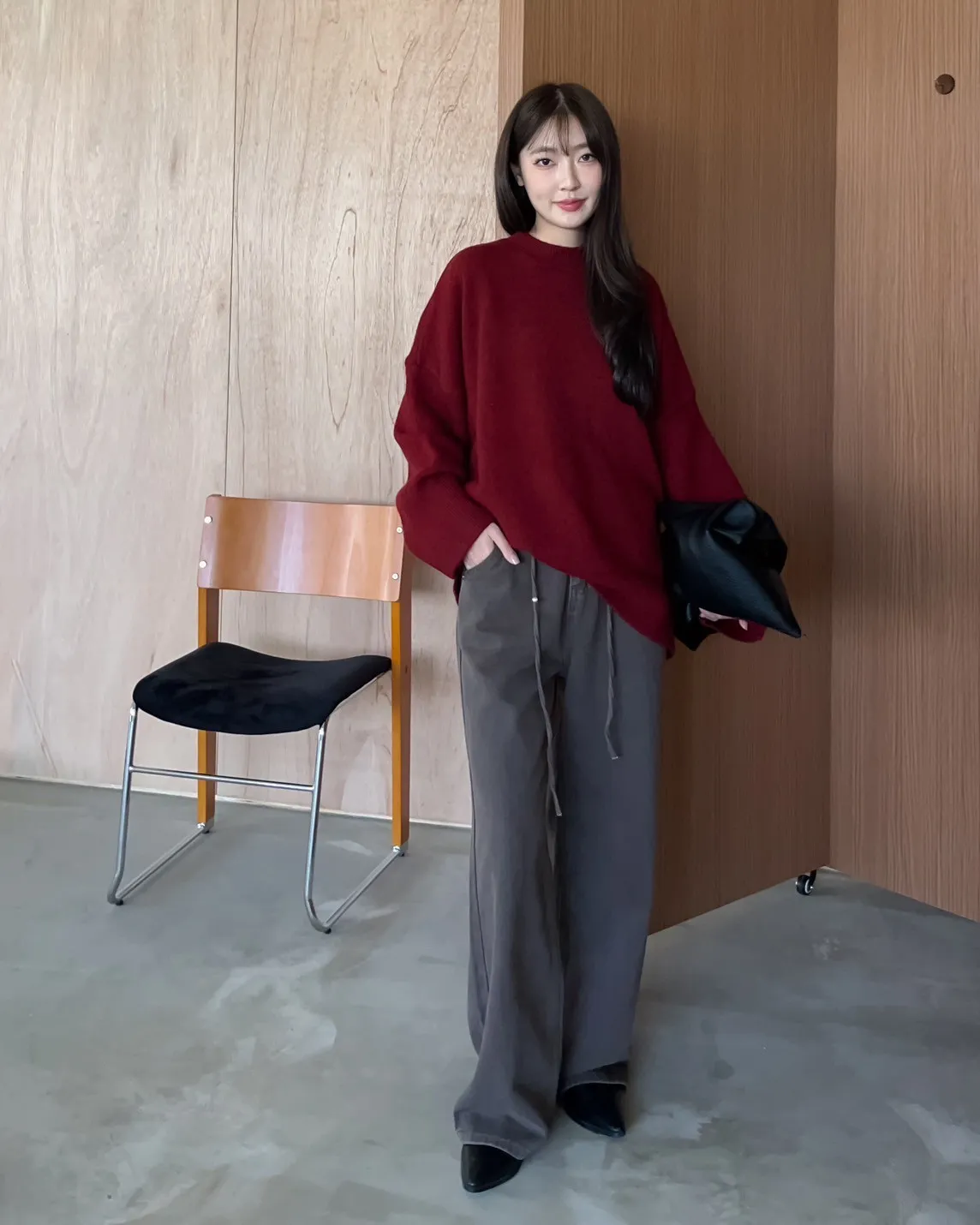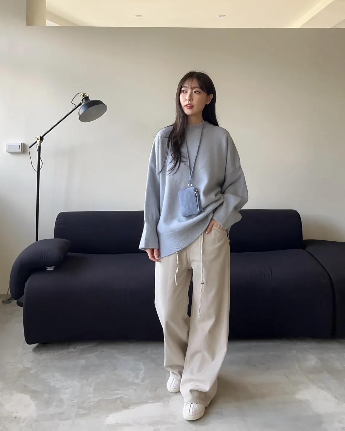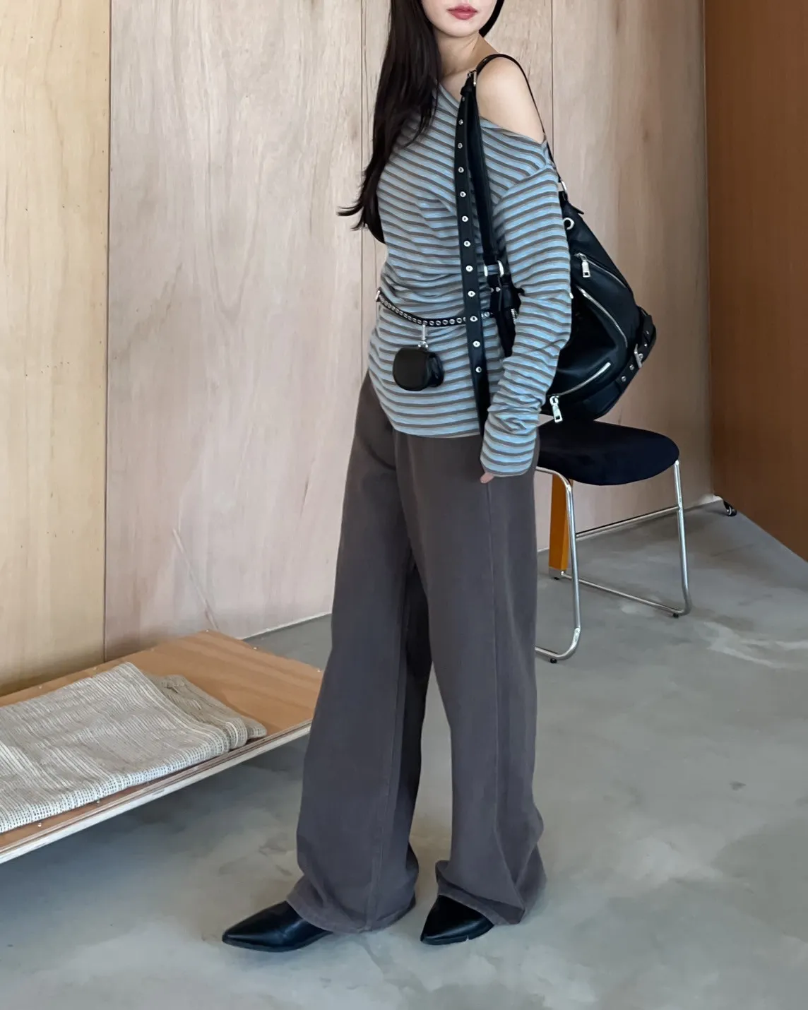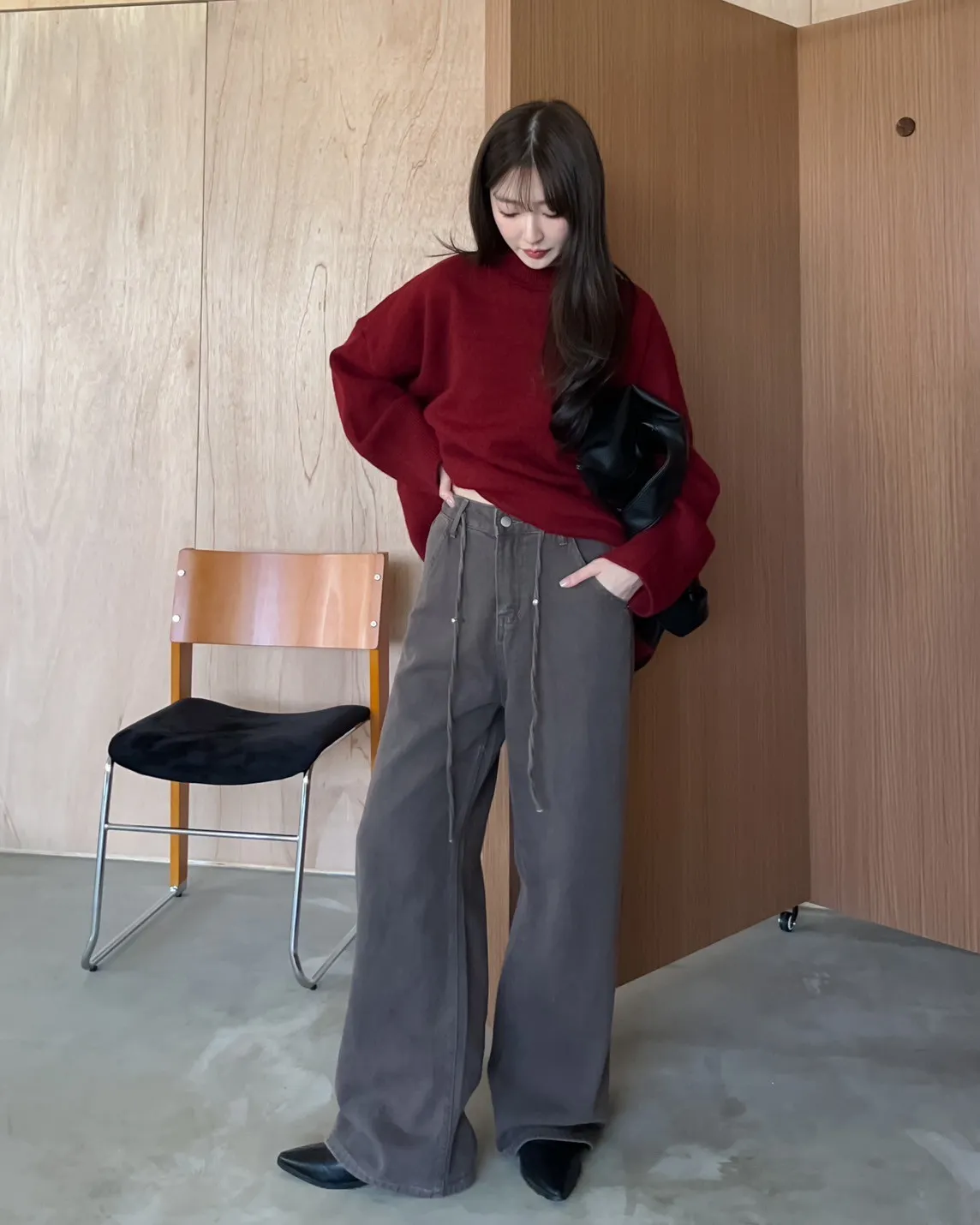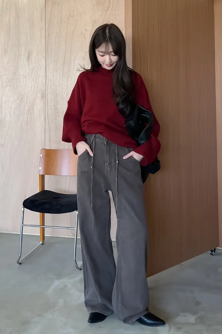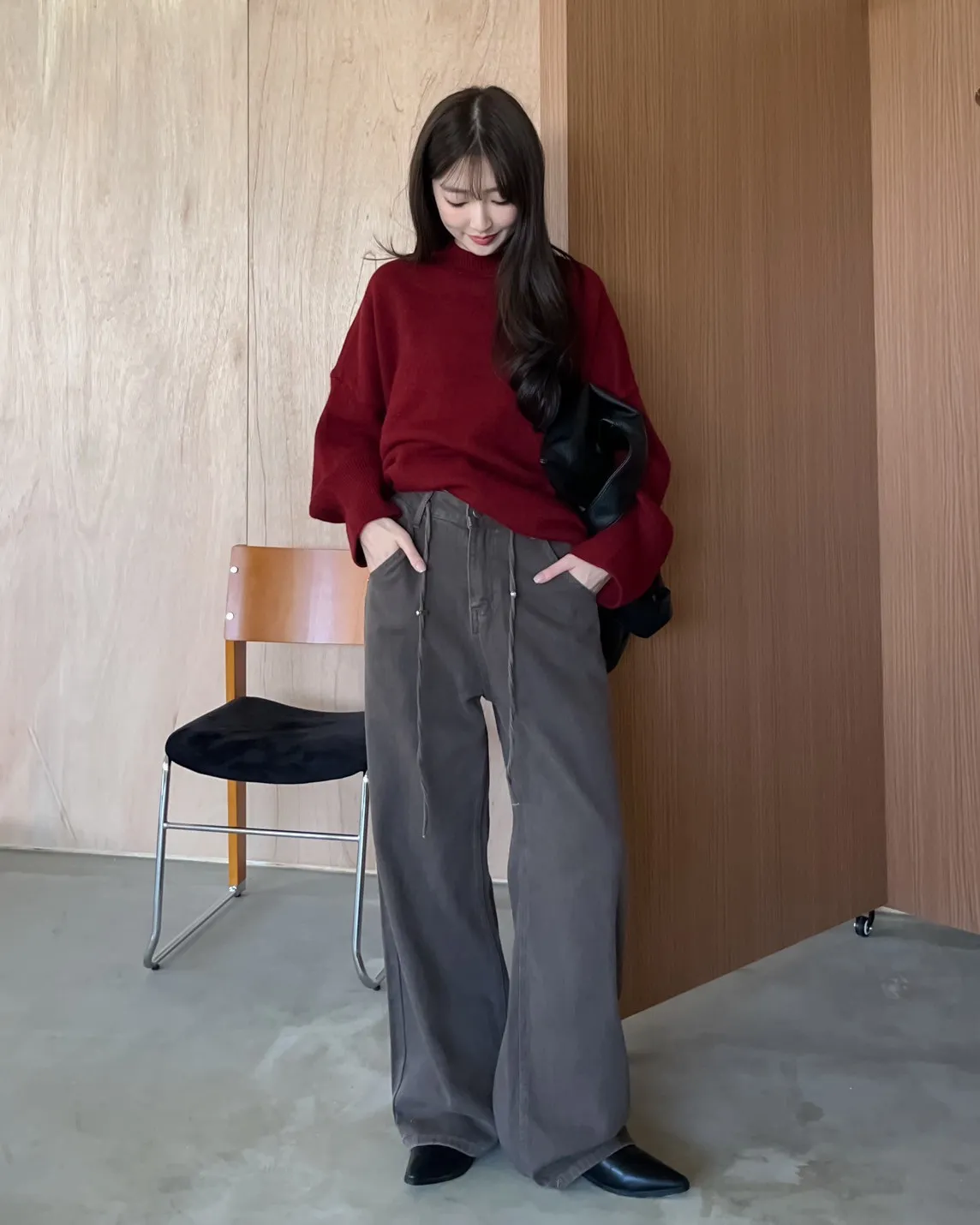 V0083榛果拿鐵水洗抽繩寬褲(杏/咖啡)