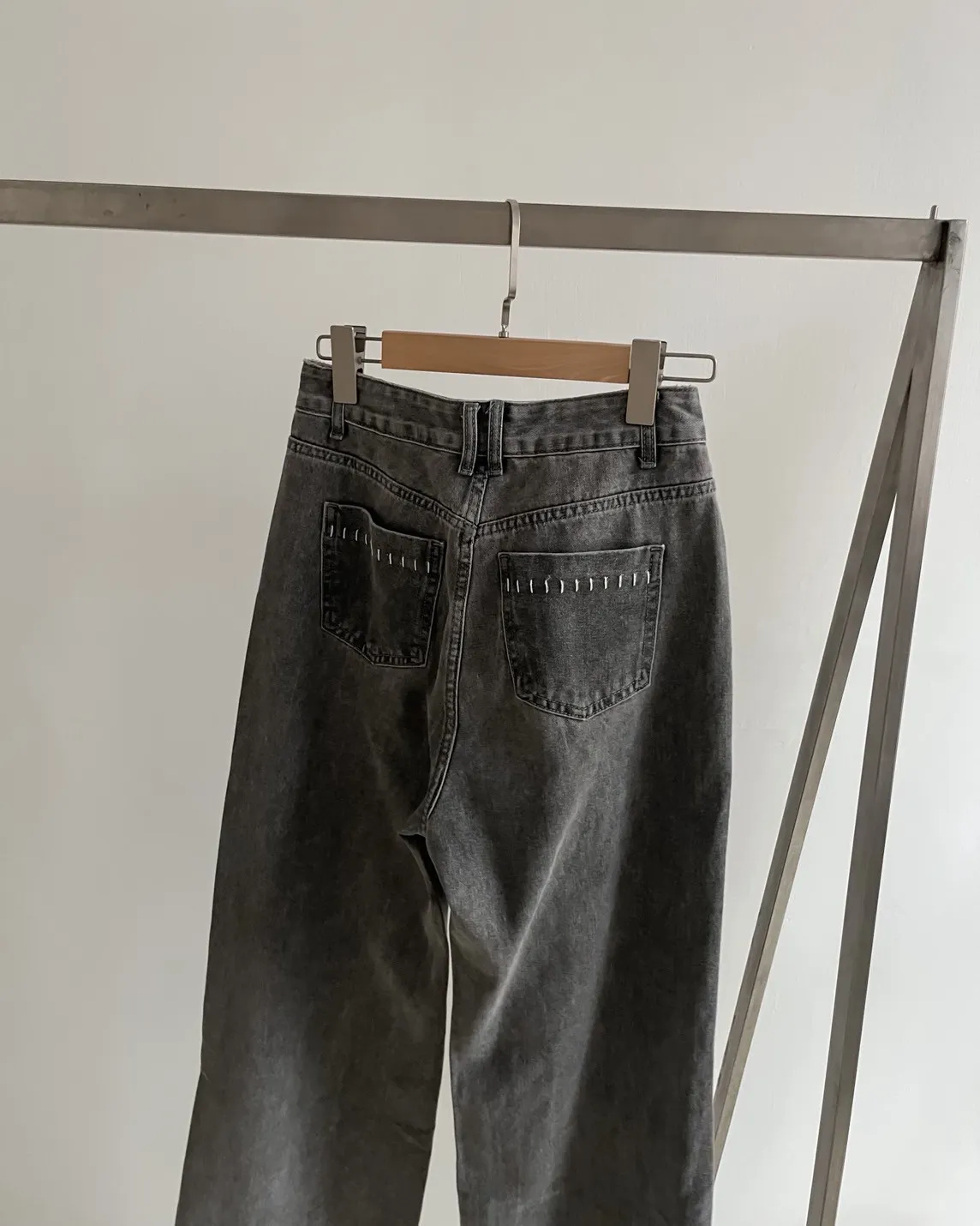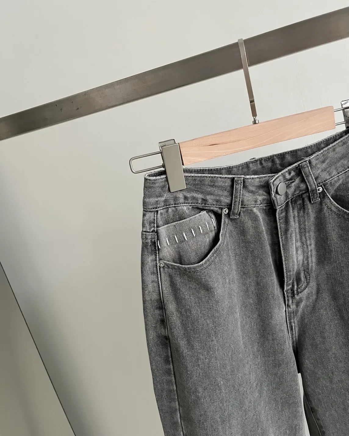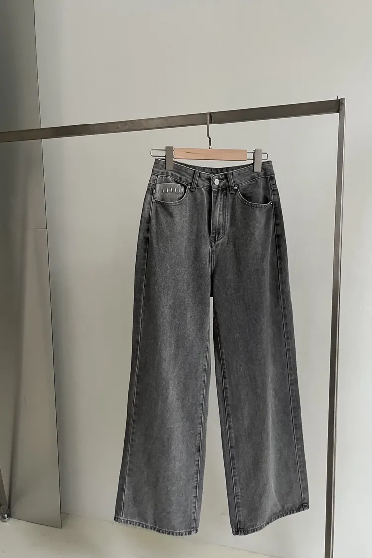 版型正常 兩側口袋 寬直筒版型 前單側口袋/後面口袋超Q縫線造型 布料本身無彈性