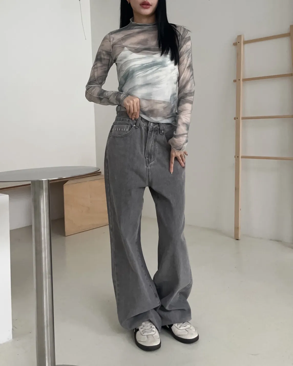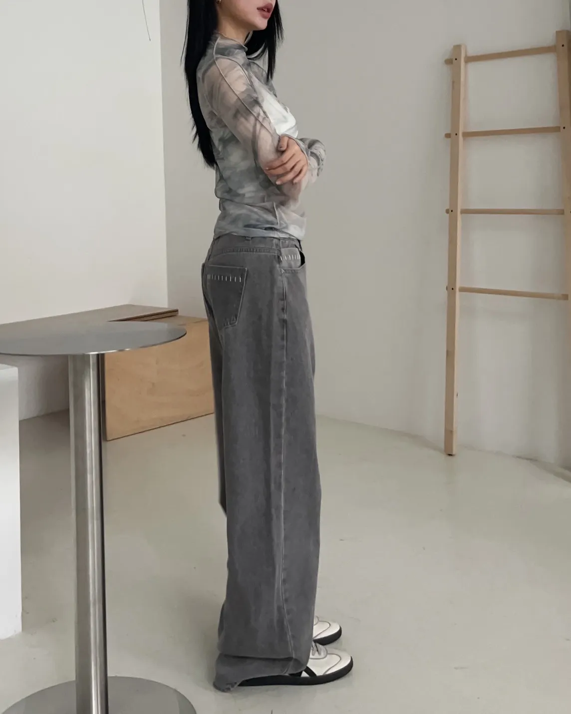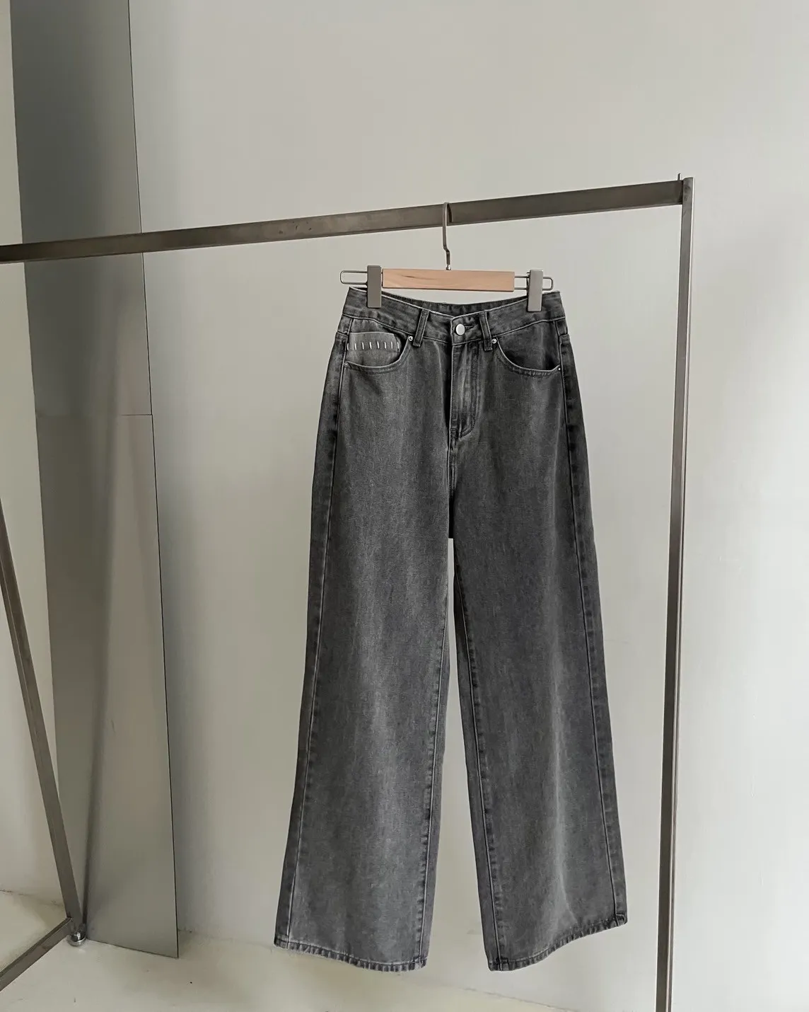 版型正常 兩側口袋 寬直筒版型 前單側口袋/後面口袋超Q縫線造型 布料本身無彈性
