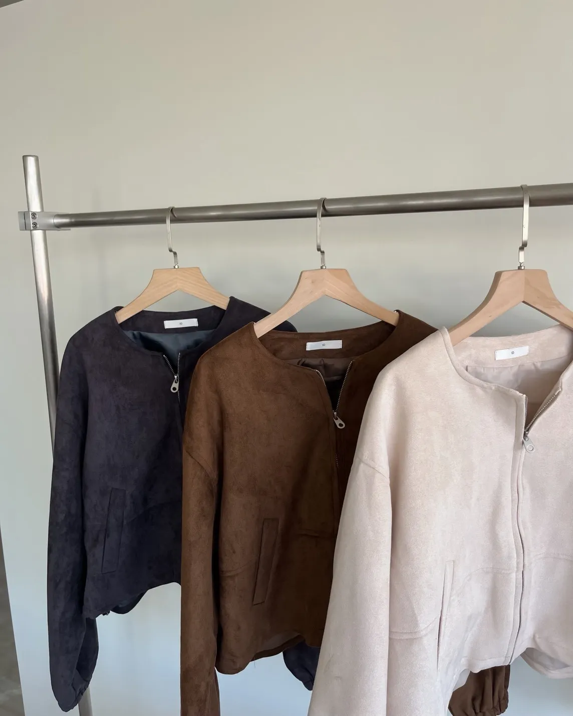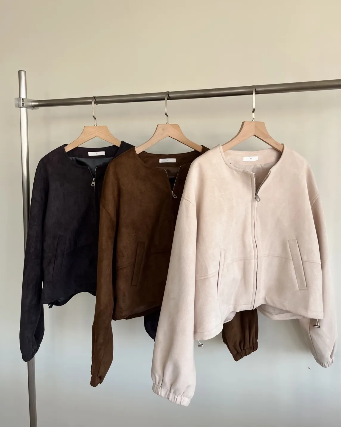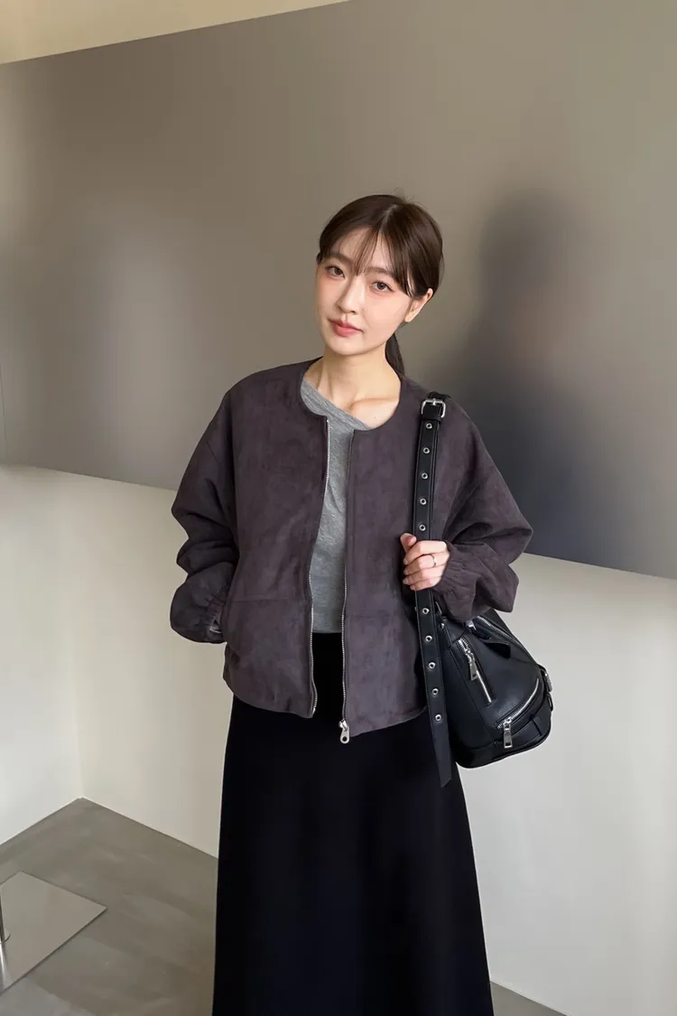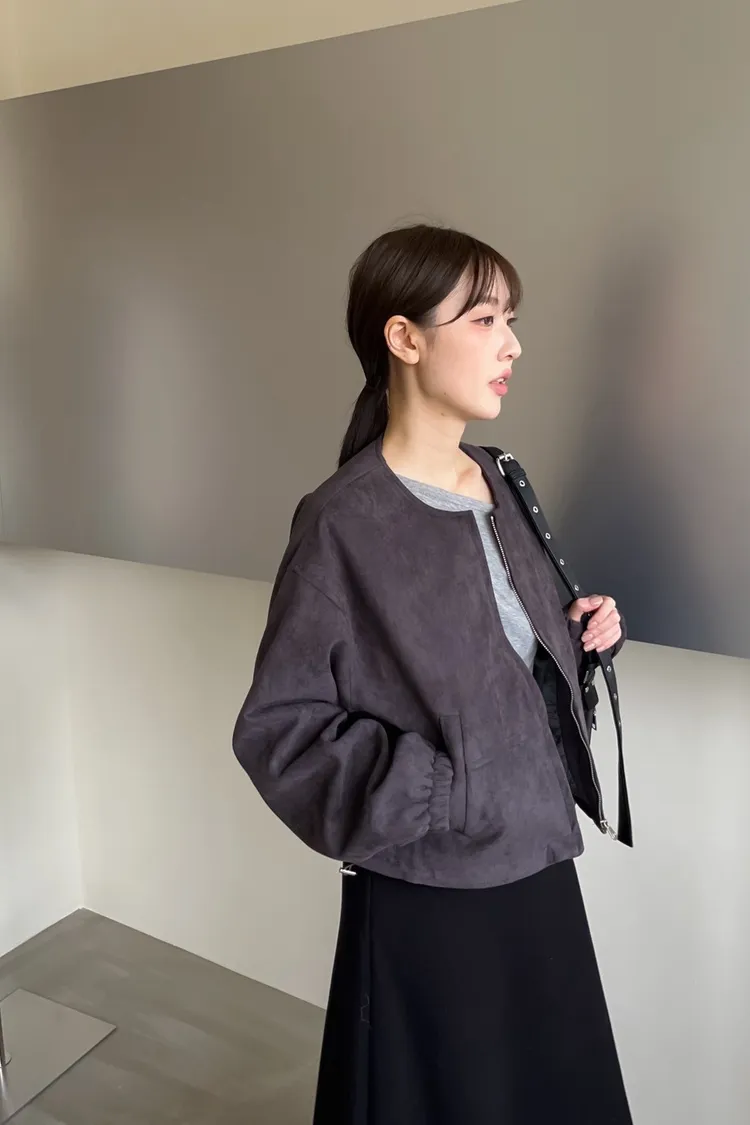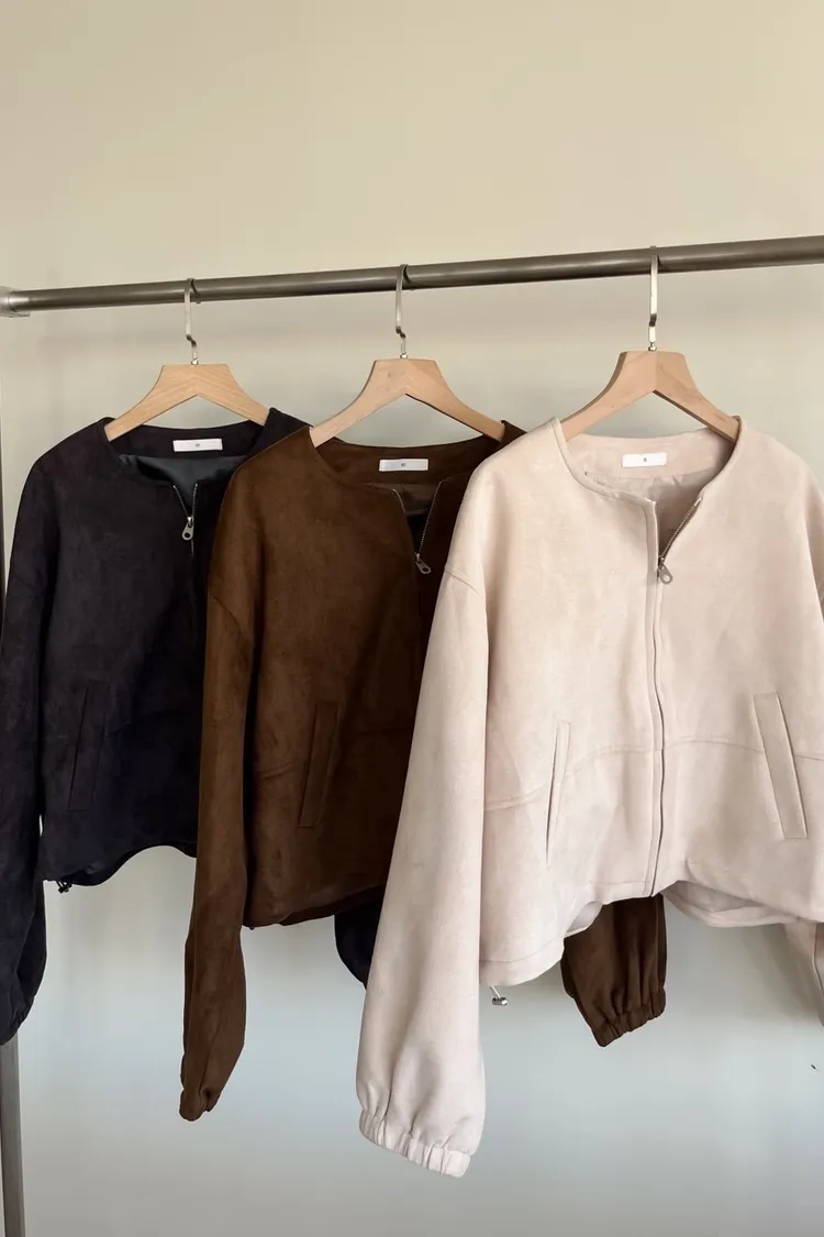 W0005好Q!!易開罐拉鍊無領麂皮外套(杏/咖啡/深灰)