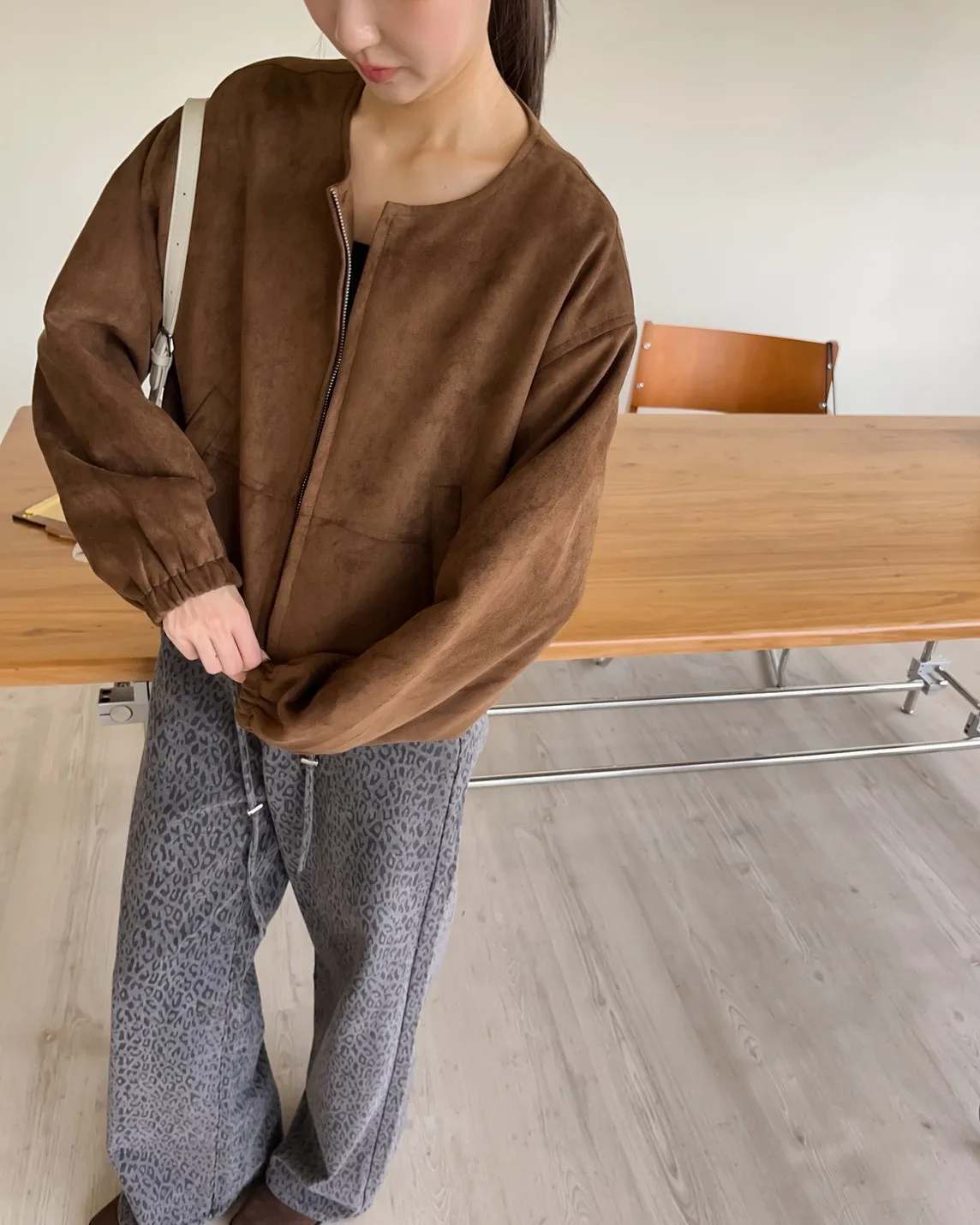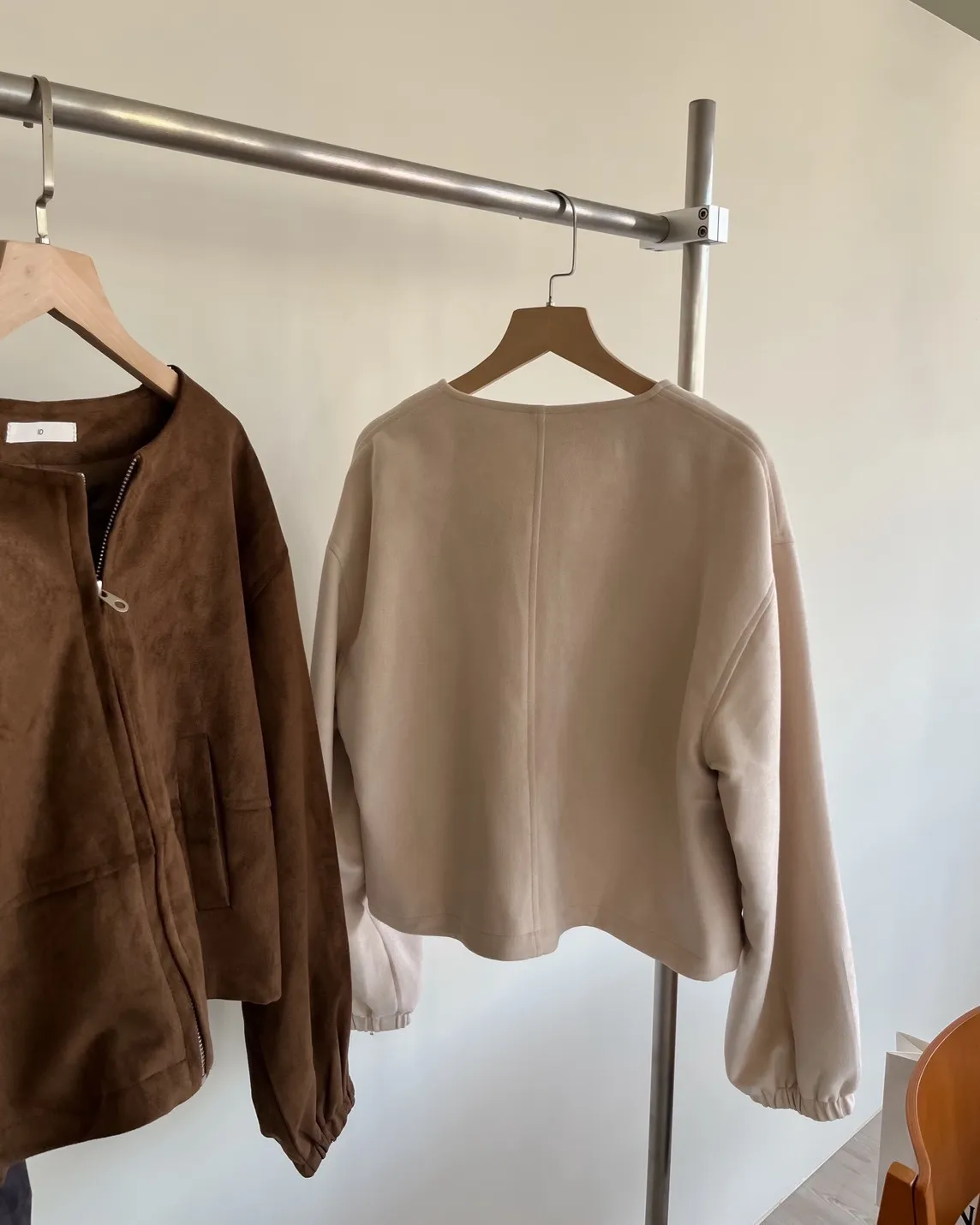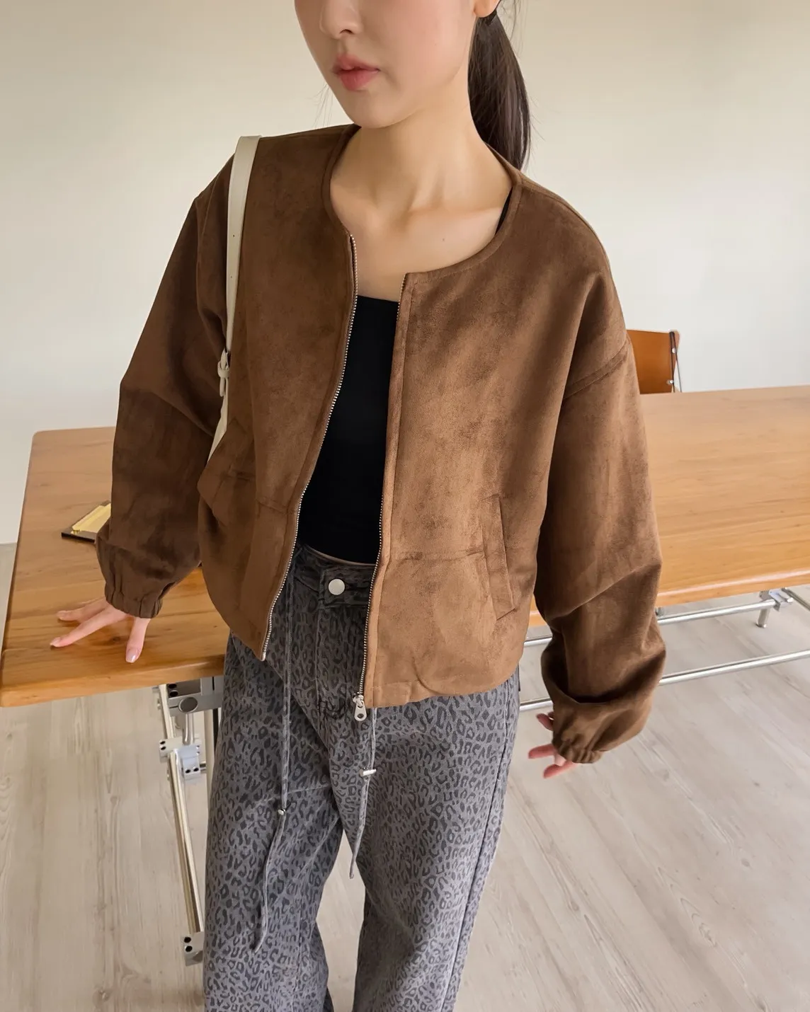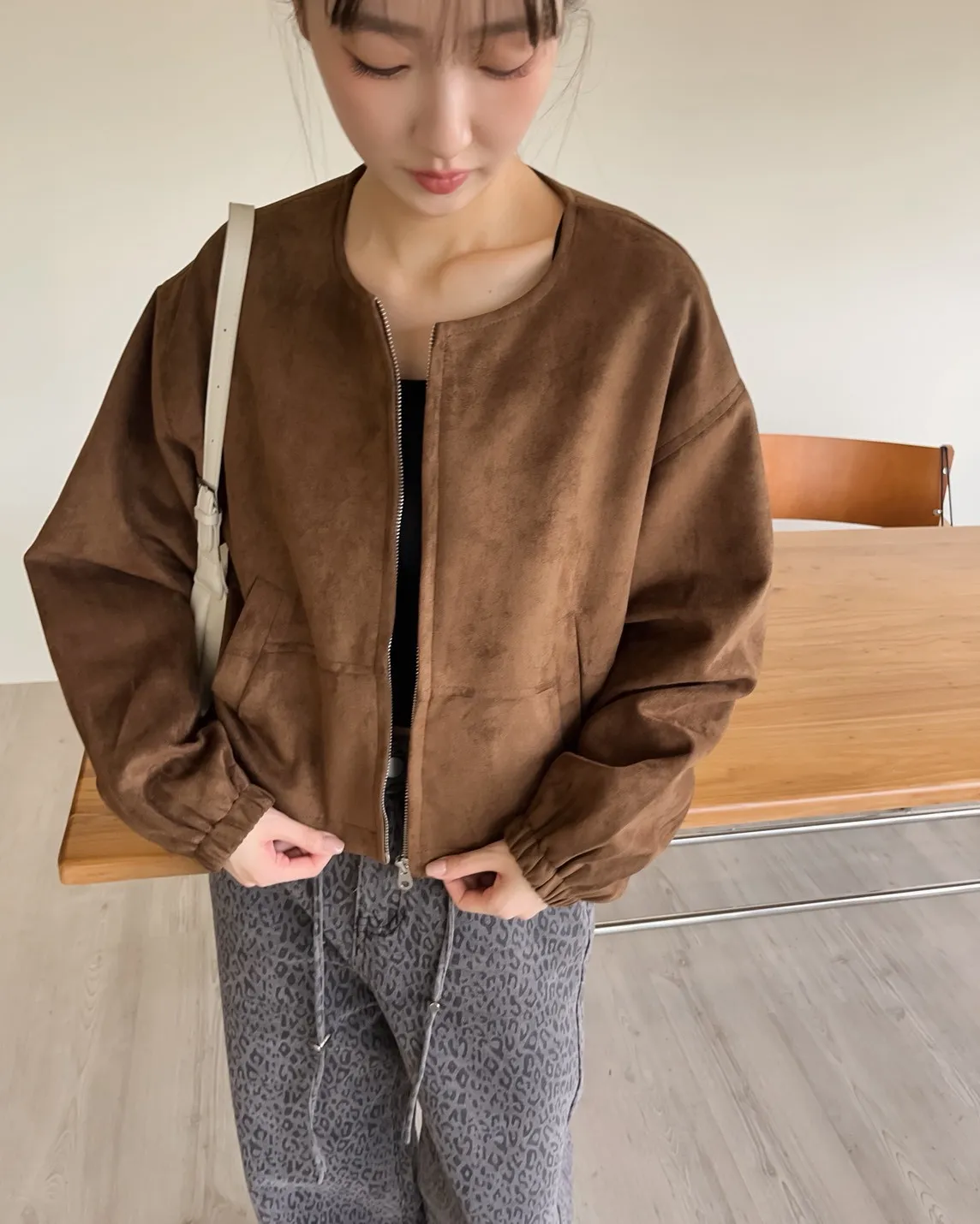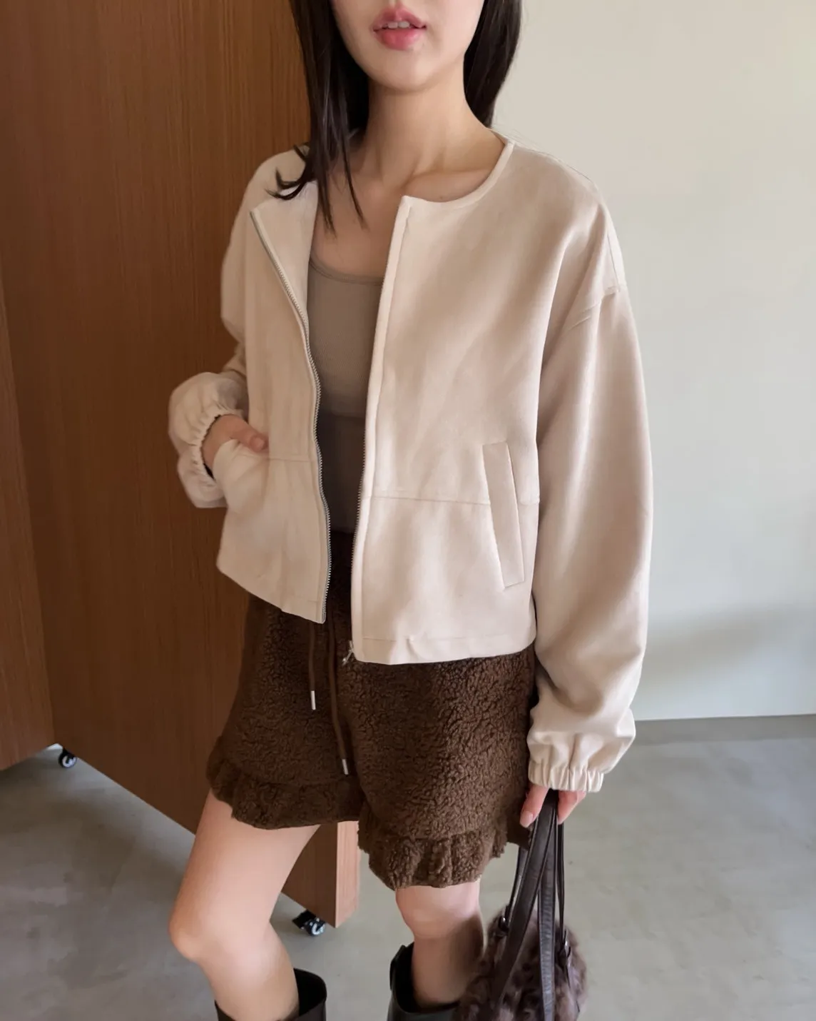 W0005好Q!!易開罐拉鍊無領麂皮外套(杏/咖啡/深灰)