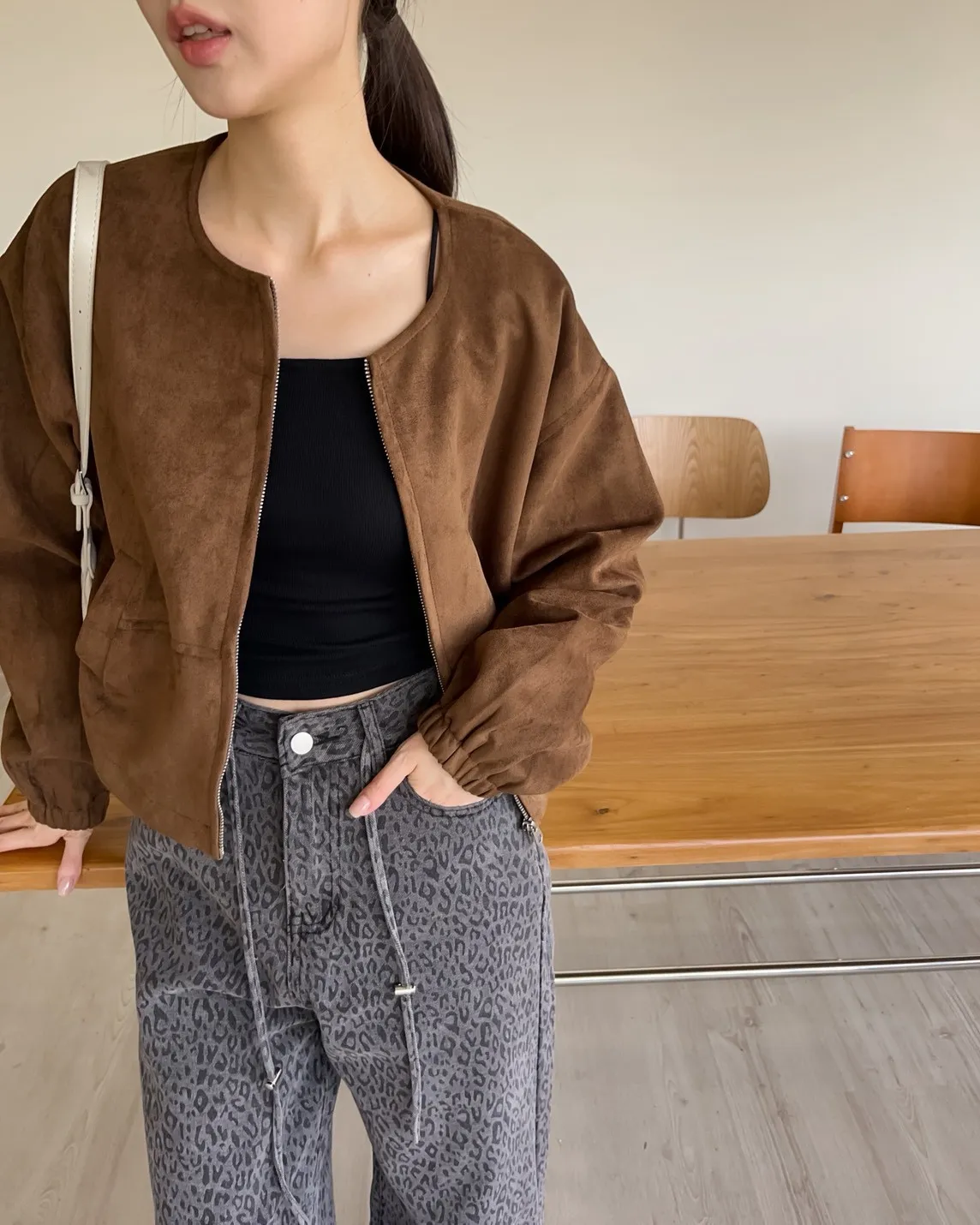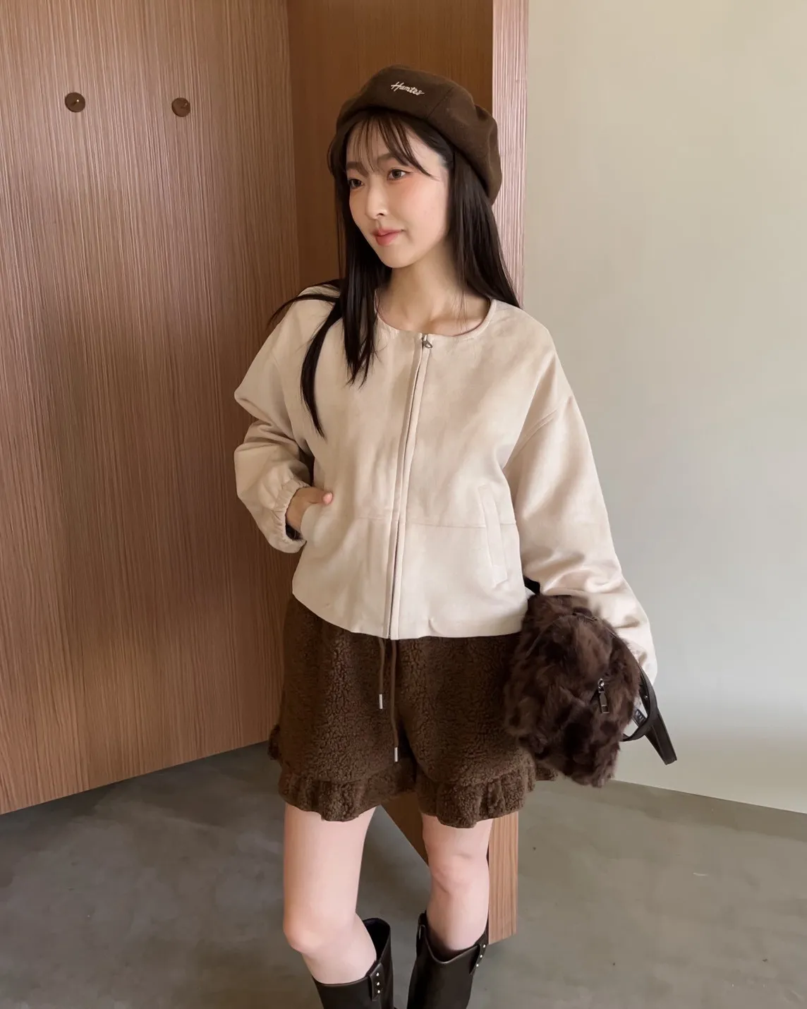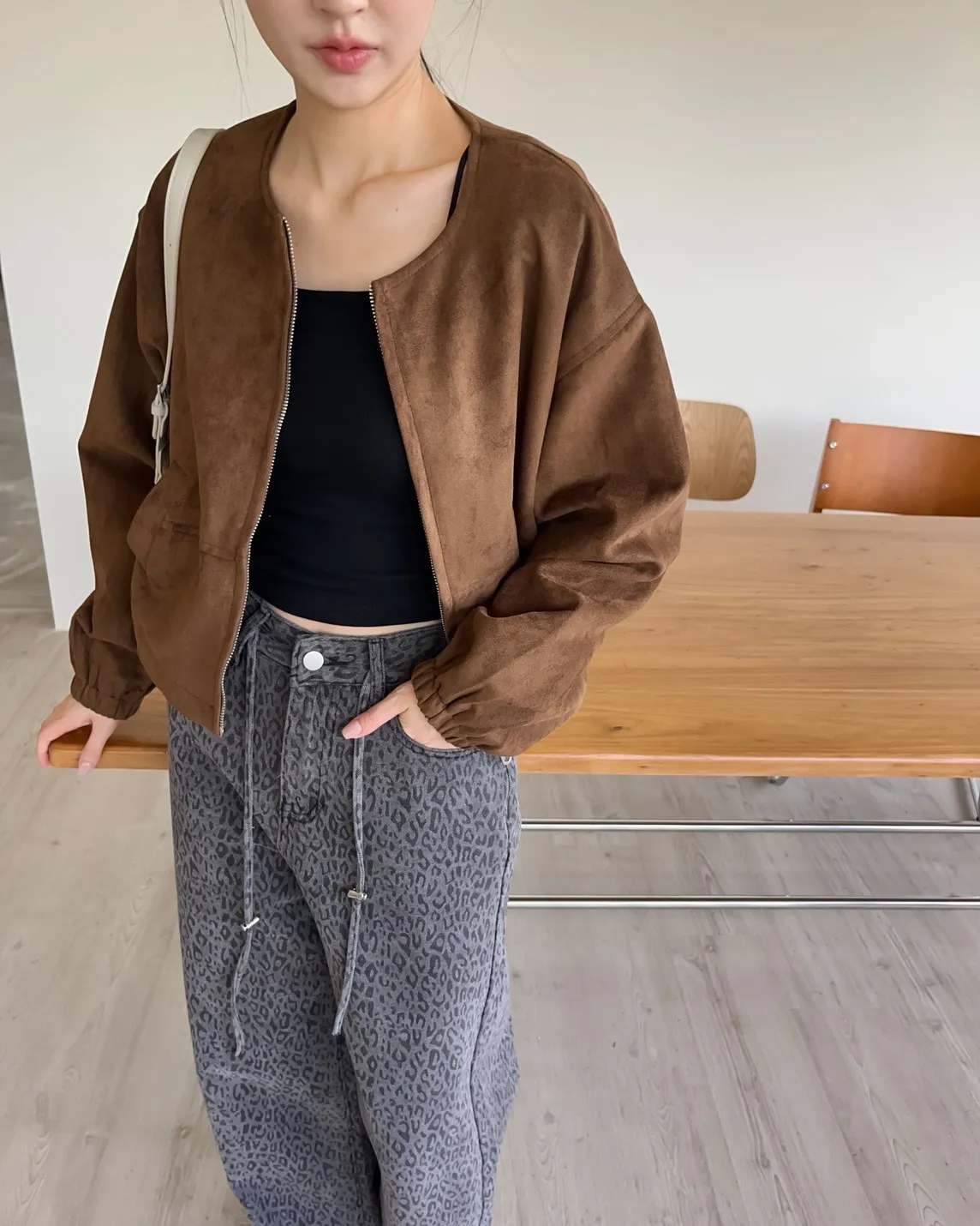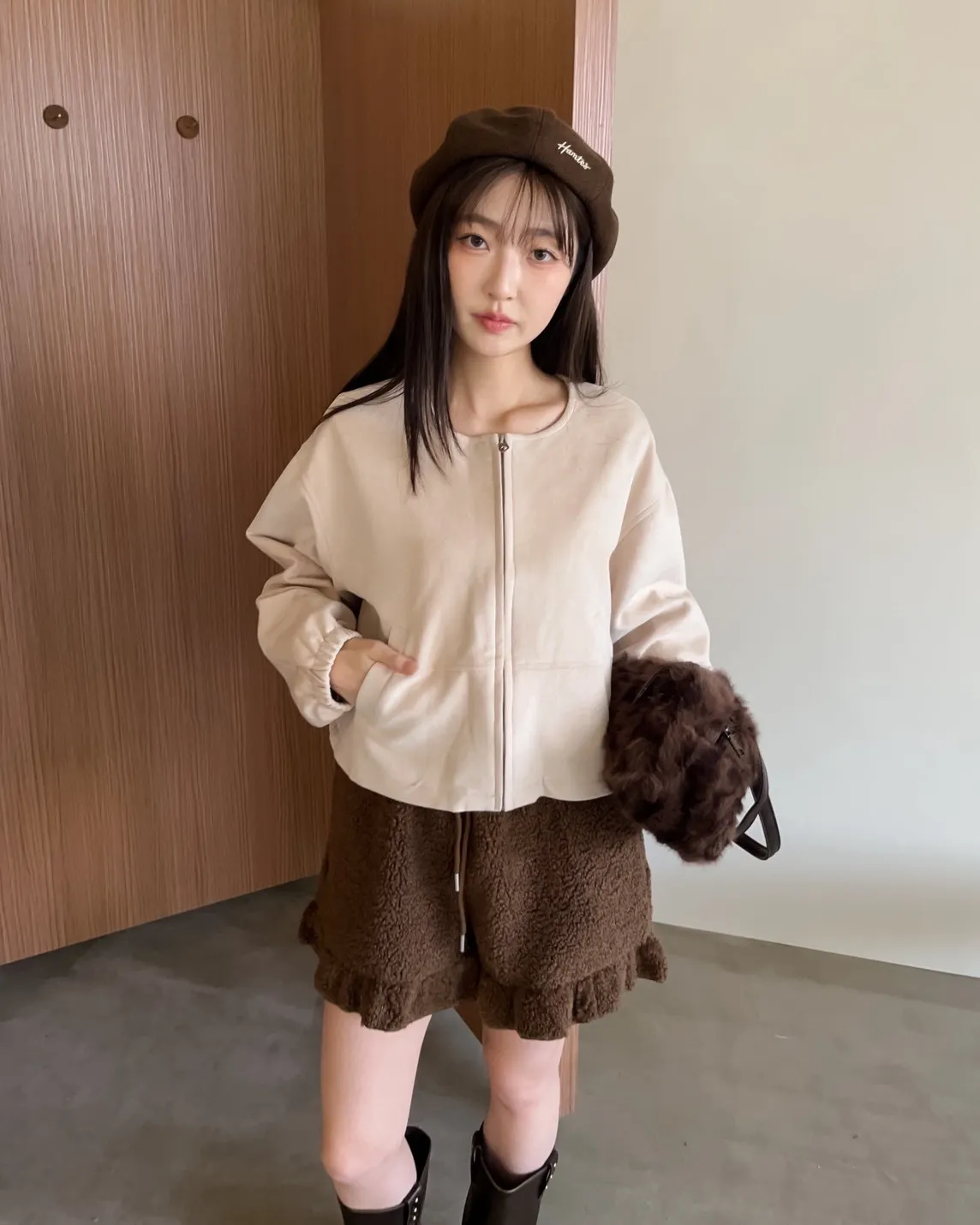 W0005好Q!!易開罐拉鍊無領麂皮外套(杏/咖啡/深灰)