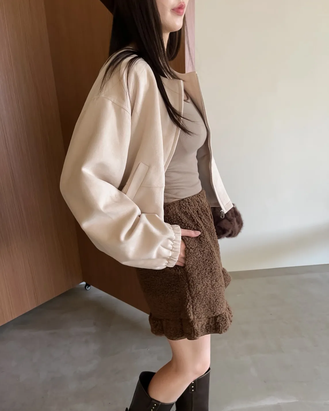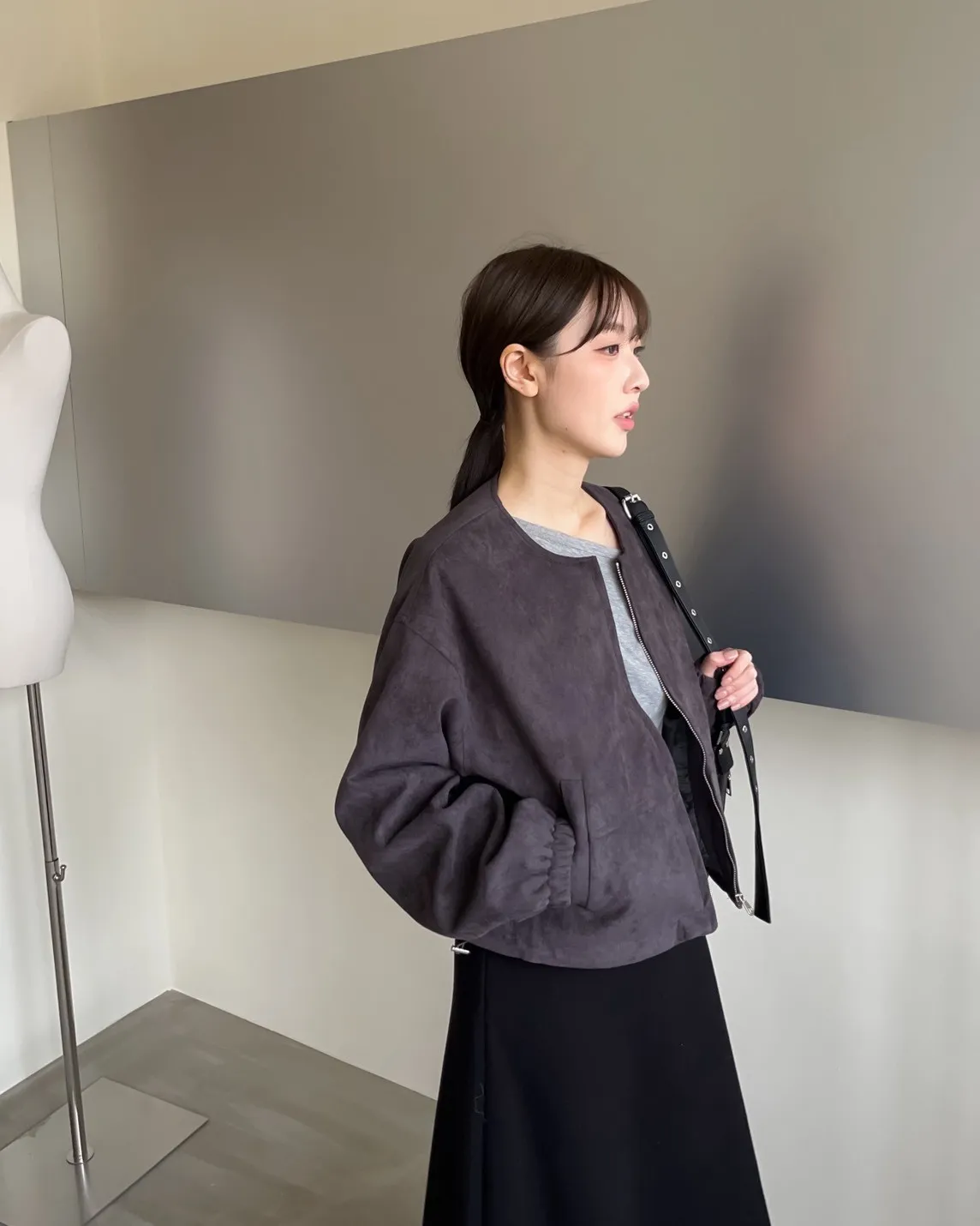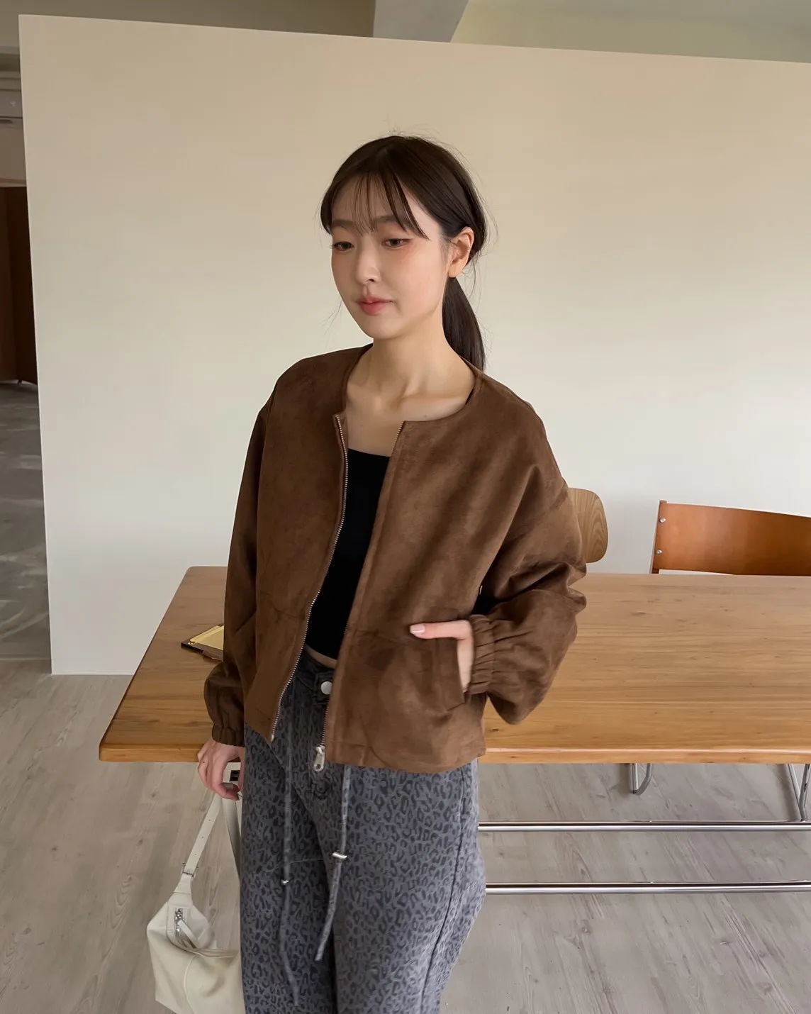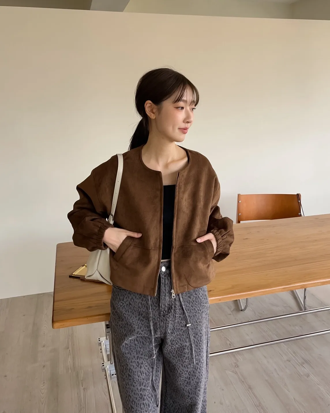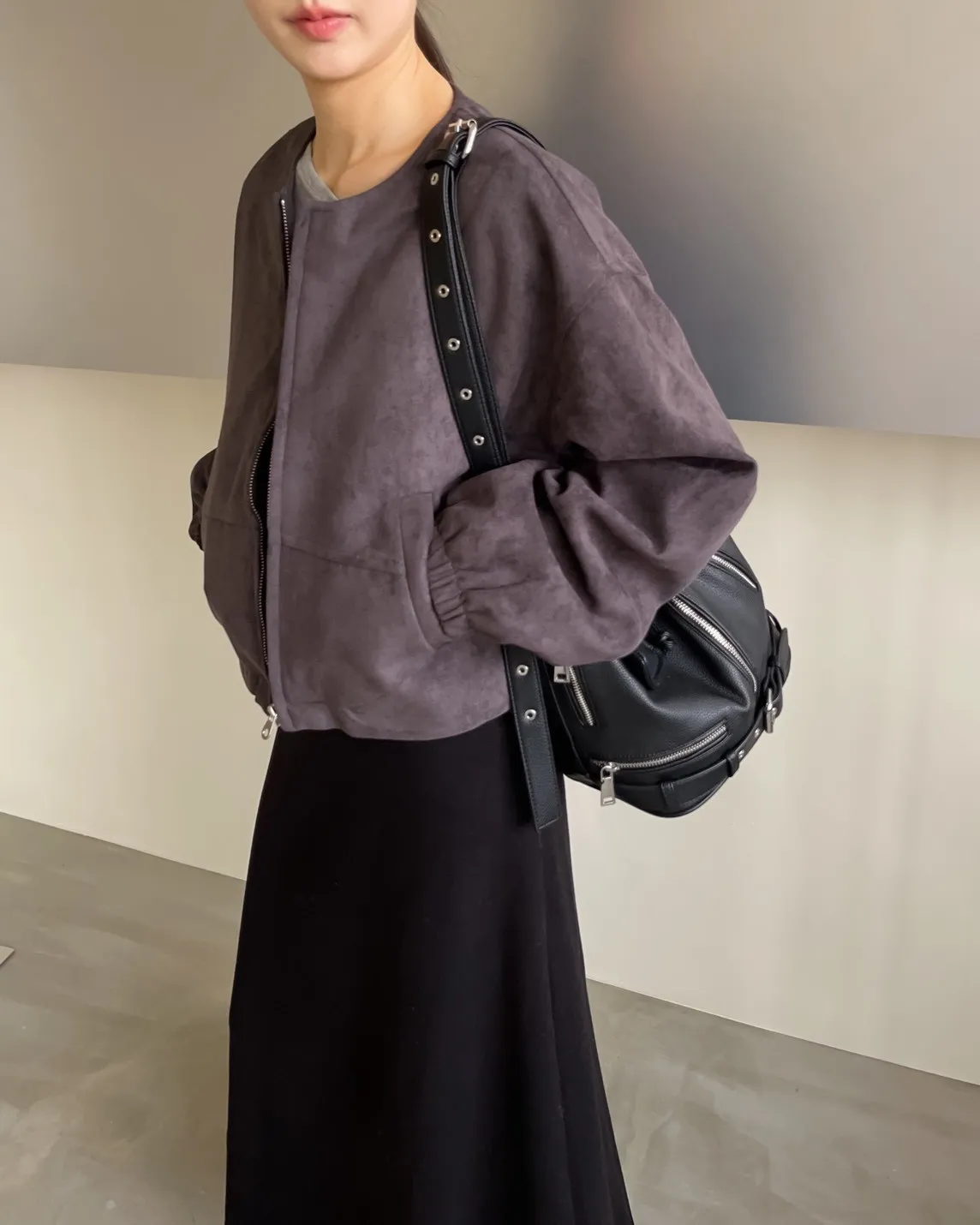 W0005好Q!!易開罐拉鍊無領麂皮外套(杏/咖啡/深灰)