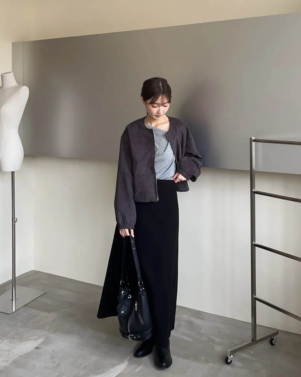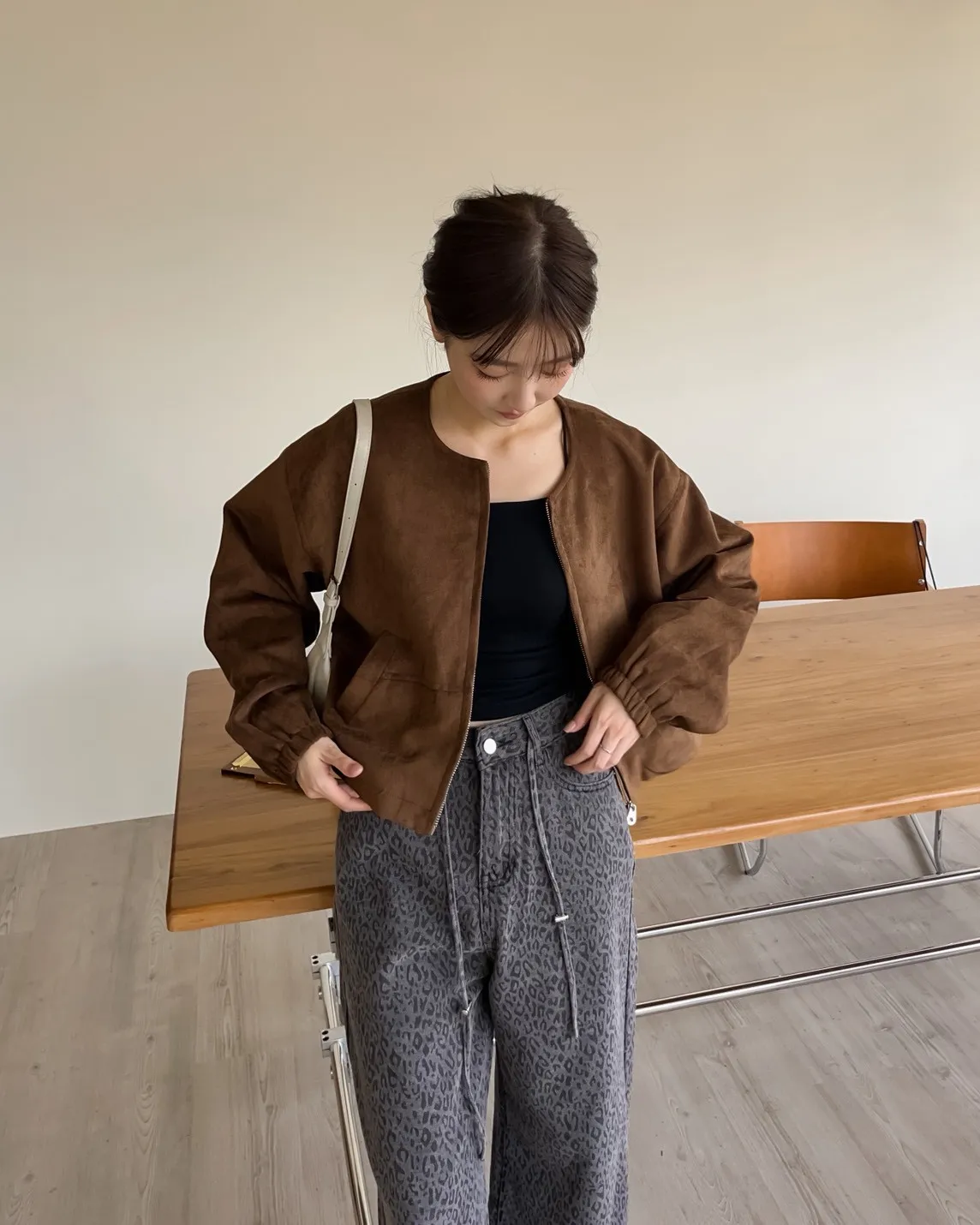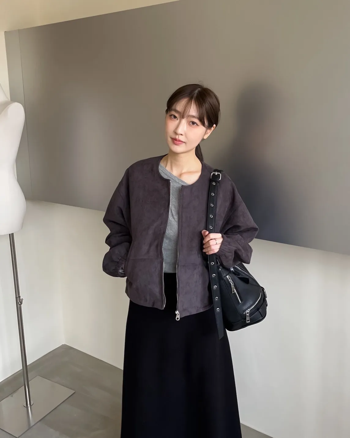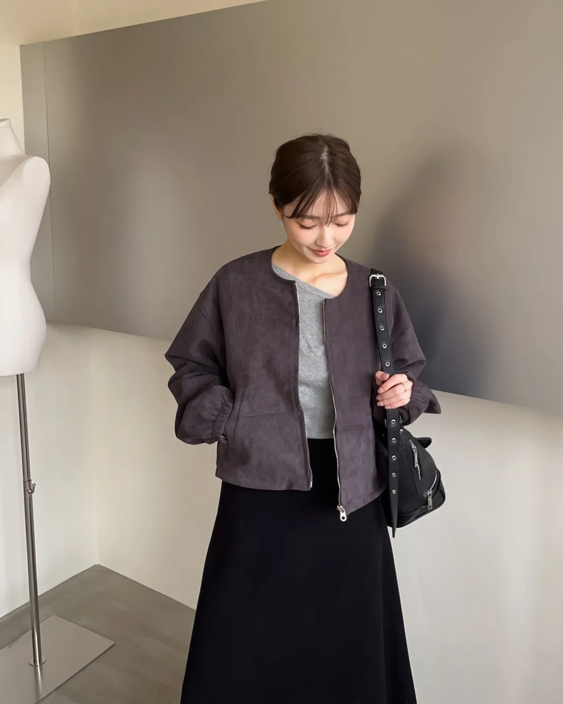 W0005好Q!!易開罐拉鍊無領麂皮外套(杏/咖啡/深灰)