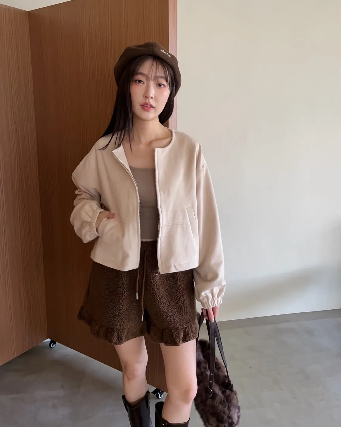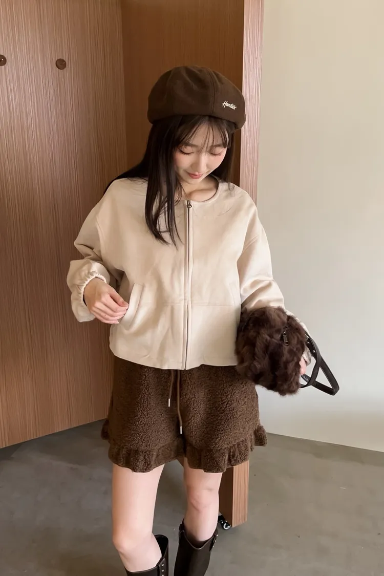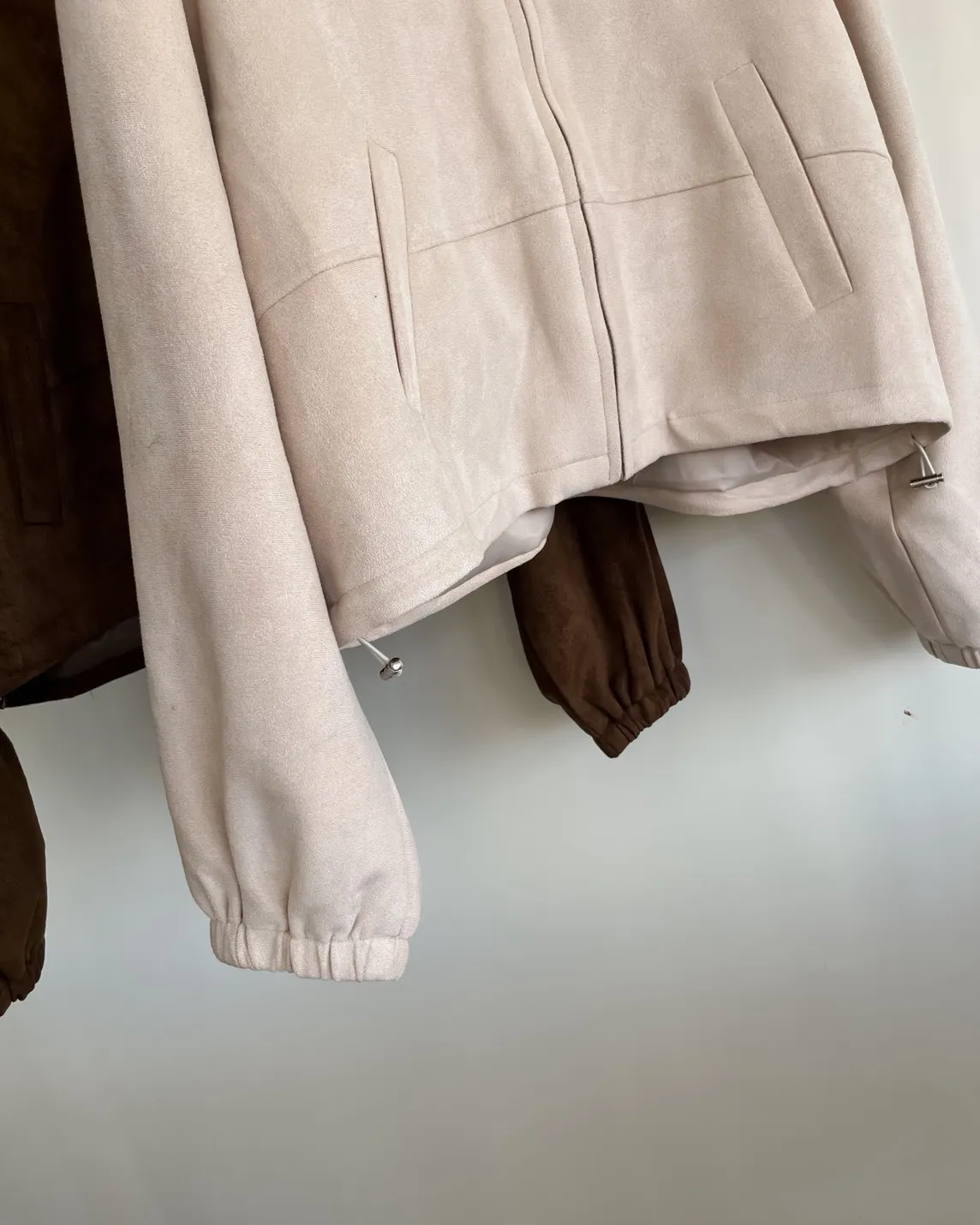 可愛易開罐造型拉鏈 下擺抽繩可縮緊 袖口鬆緊 兩側口袋 麂皮 中短版 布料本身無彈性