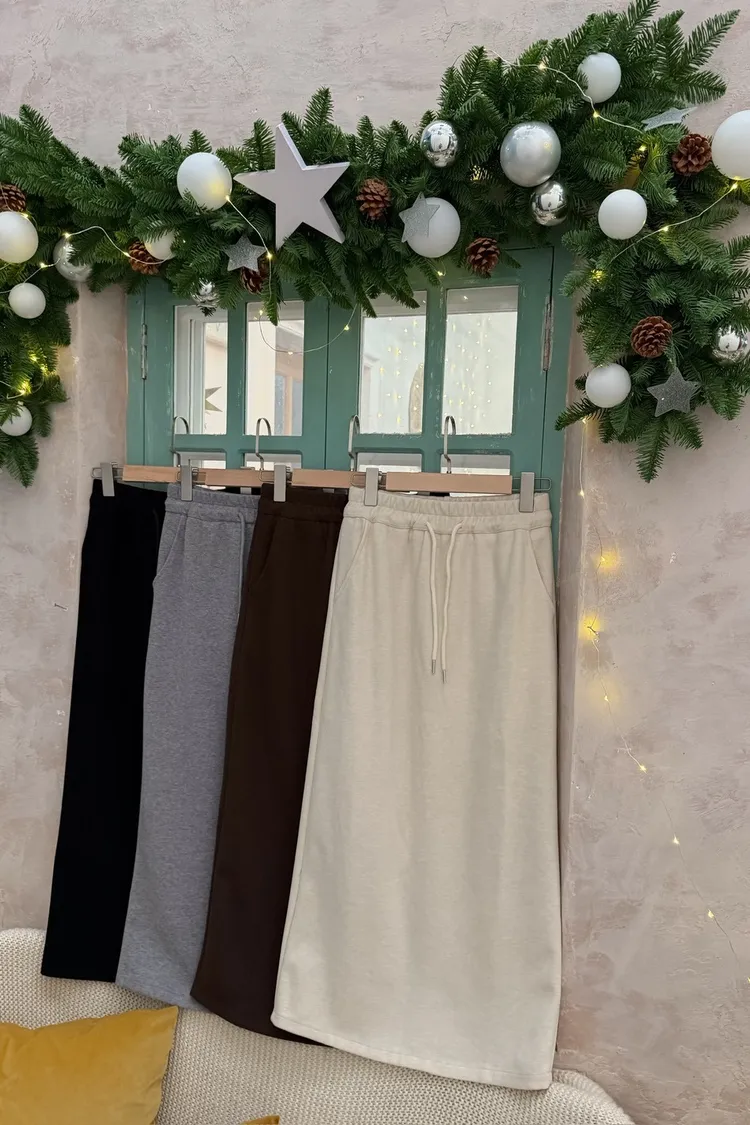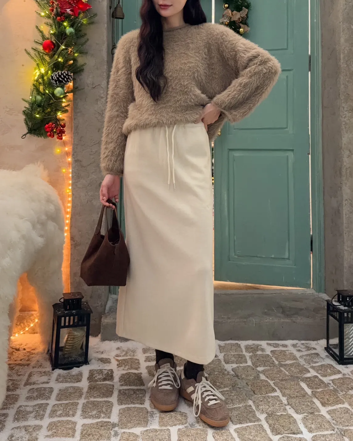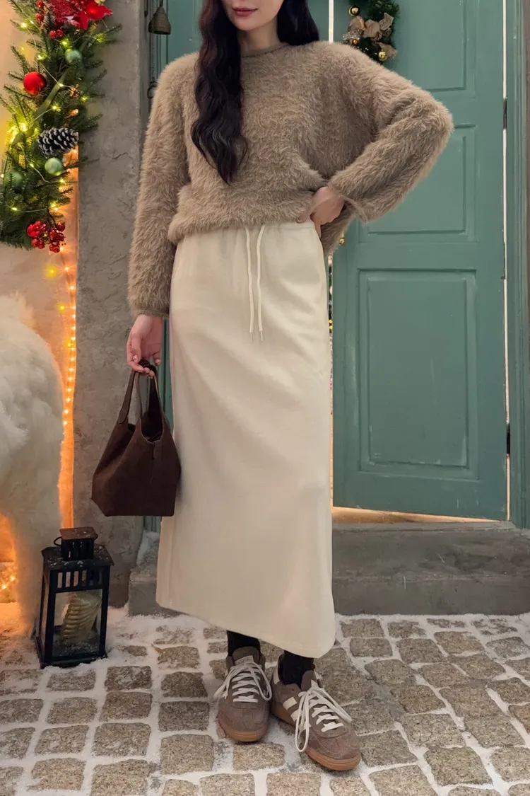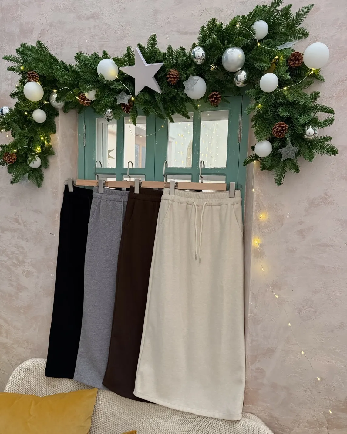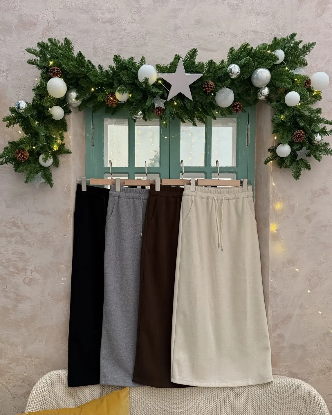 X0053小個選它!!後開衩毛呢抽繩直筒裙(米/咖啡/灰/黑)