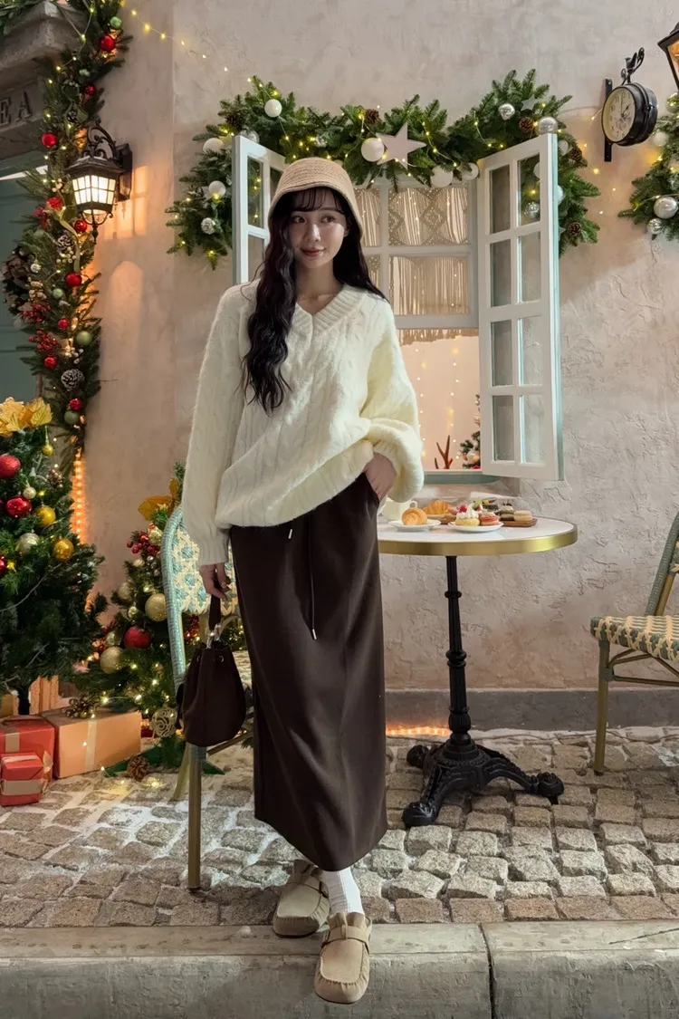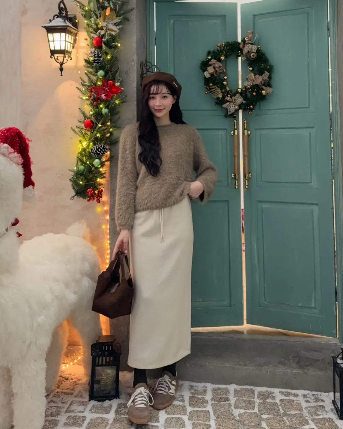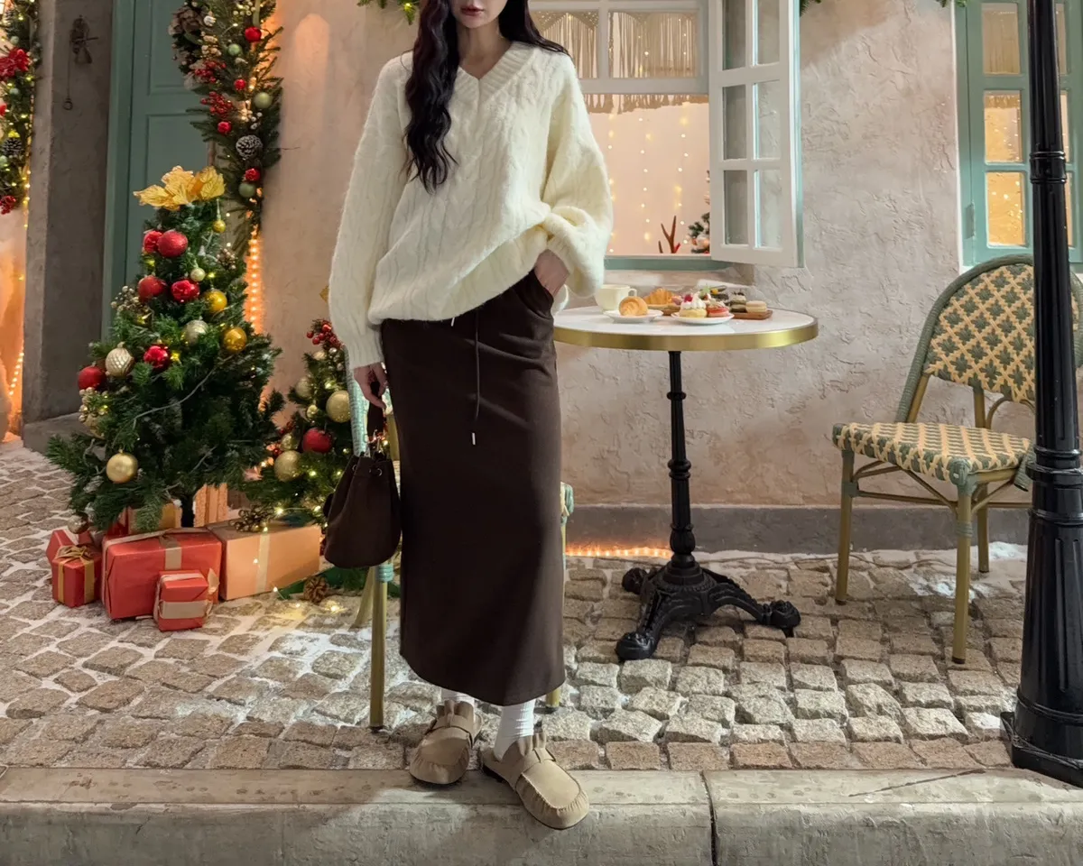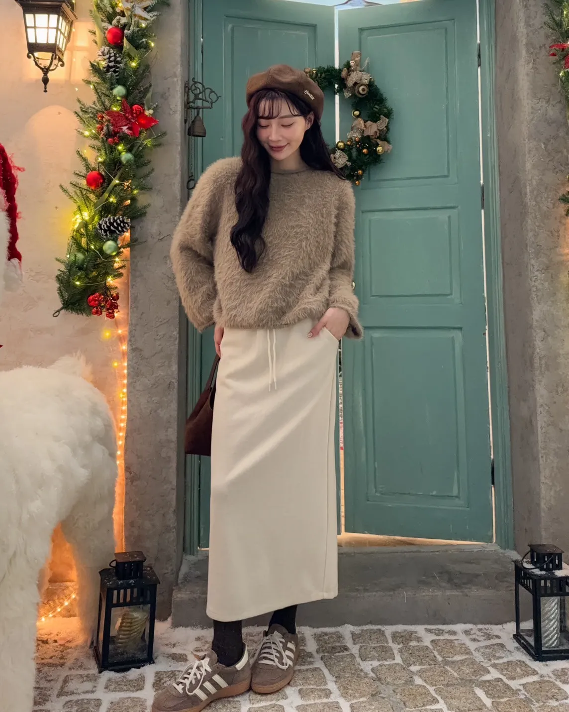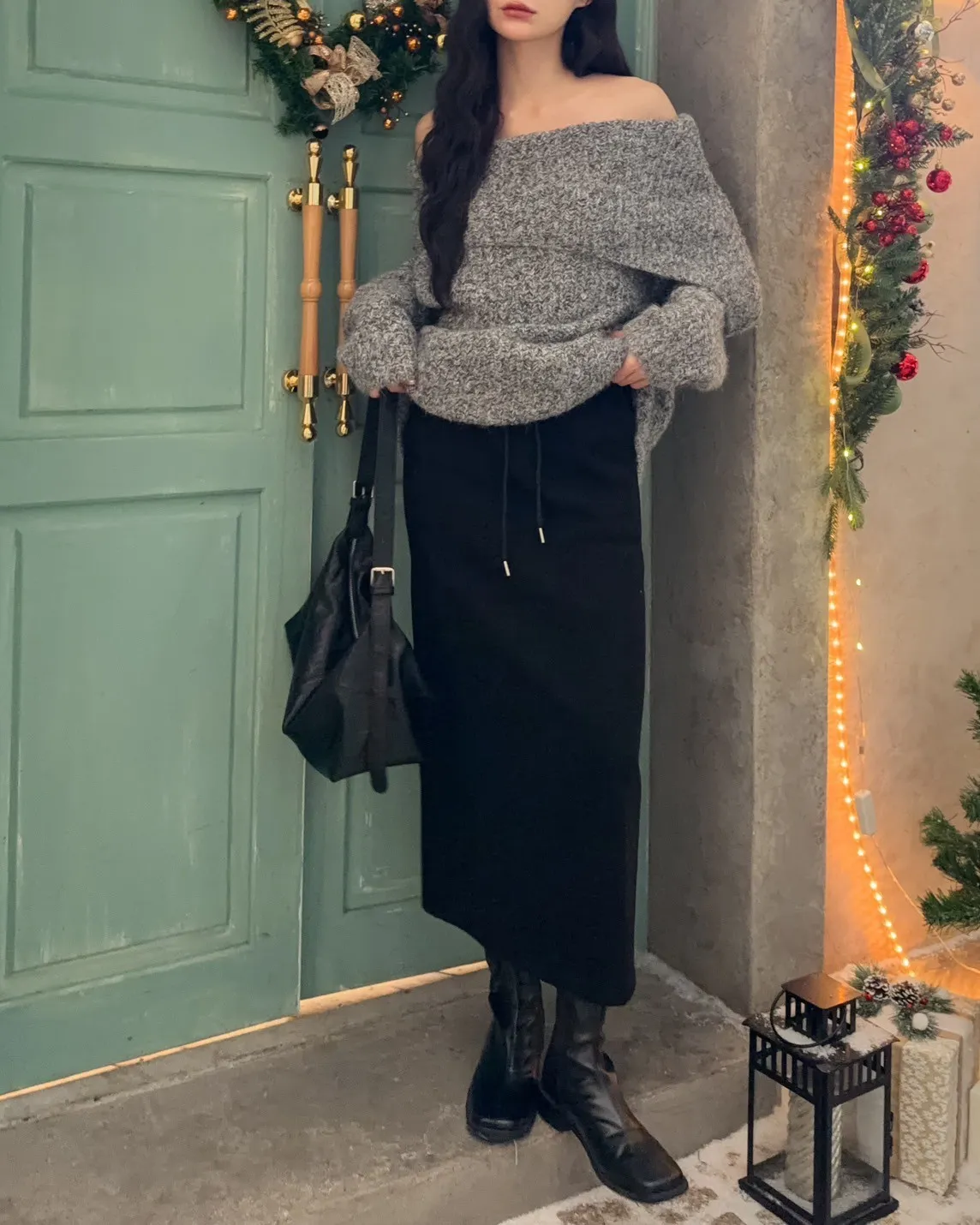 X0053小個選它!!後開衩毛呢抽繩直筒裙(米/咖啡/灰/黑)