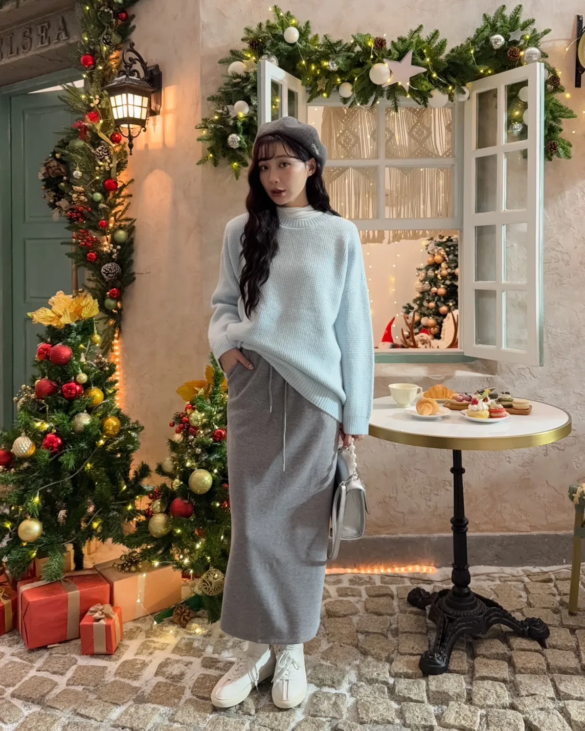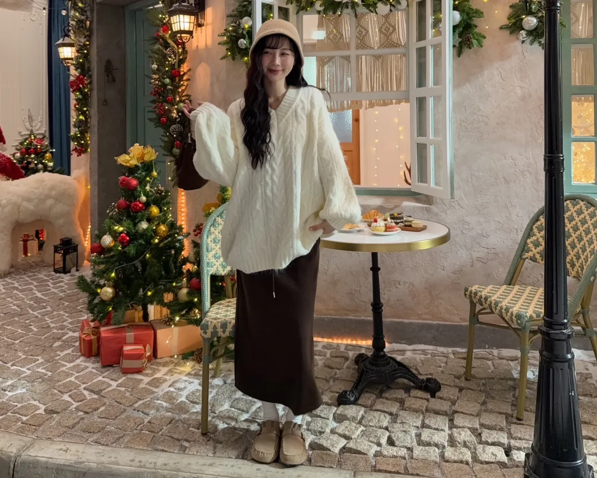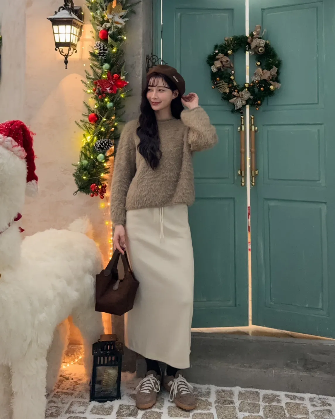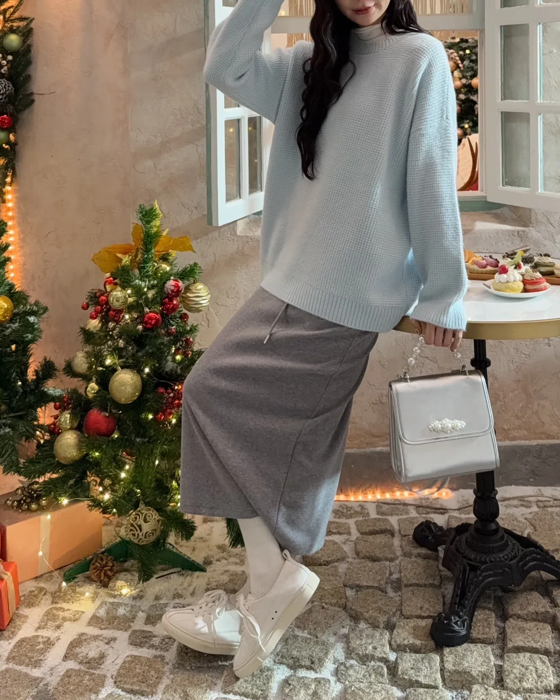 X0053小個選它!!後開衩毛呢抽繩直筒裙(米/咖啡/灰/黑)