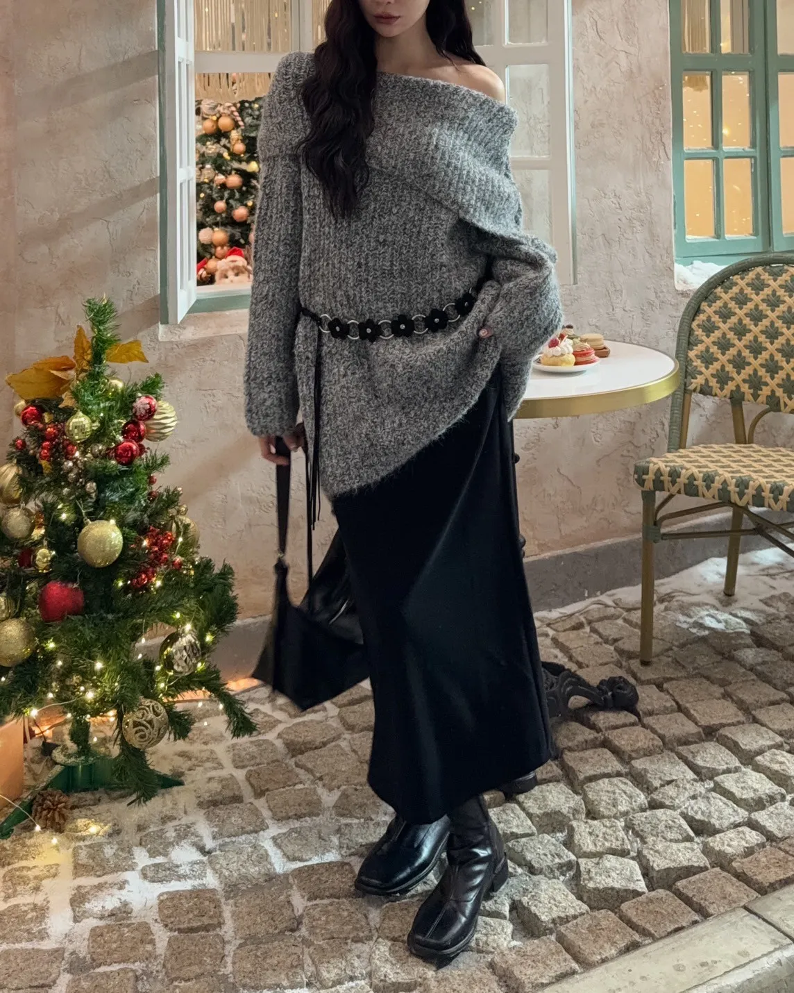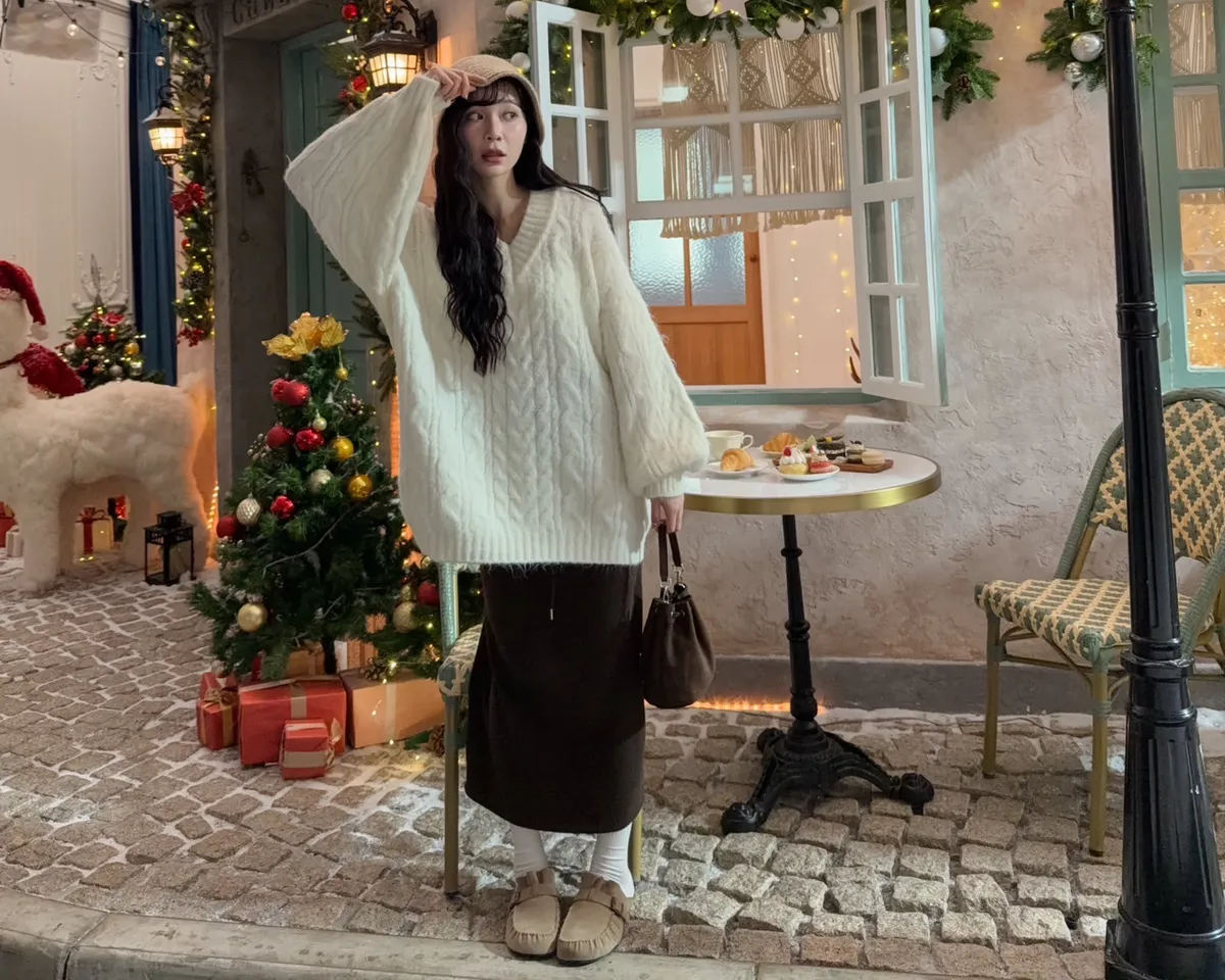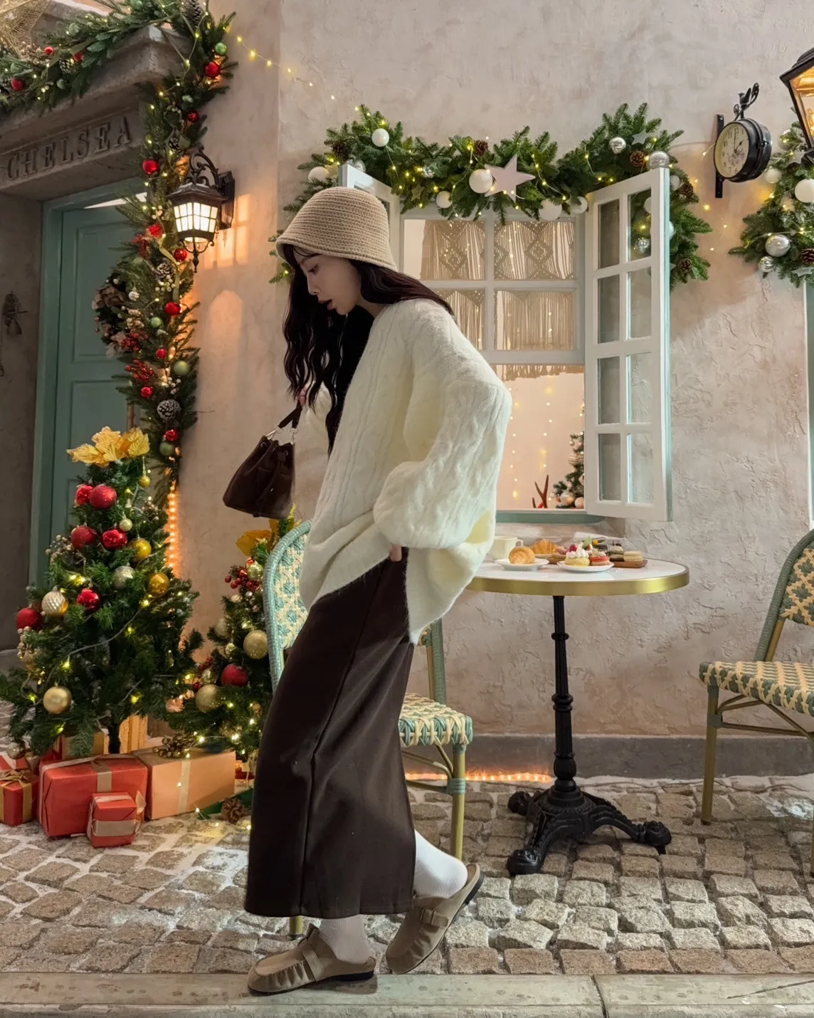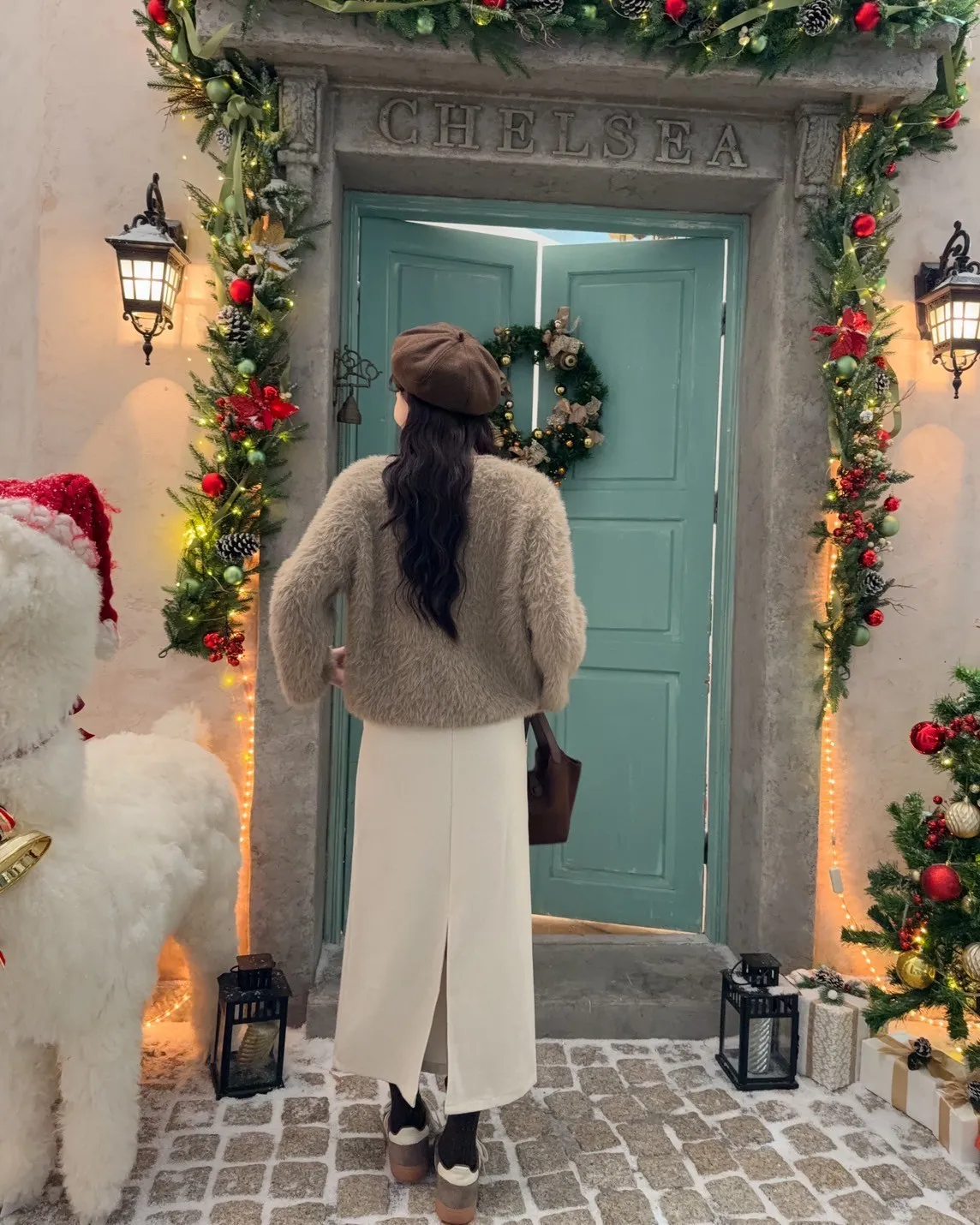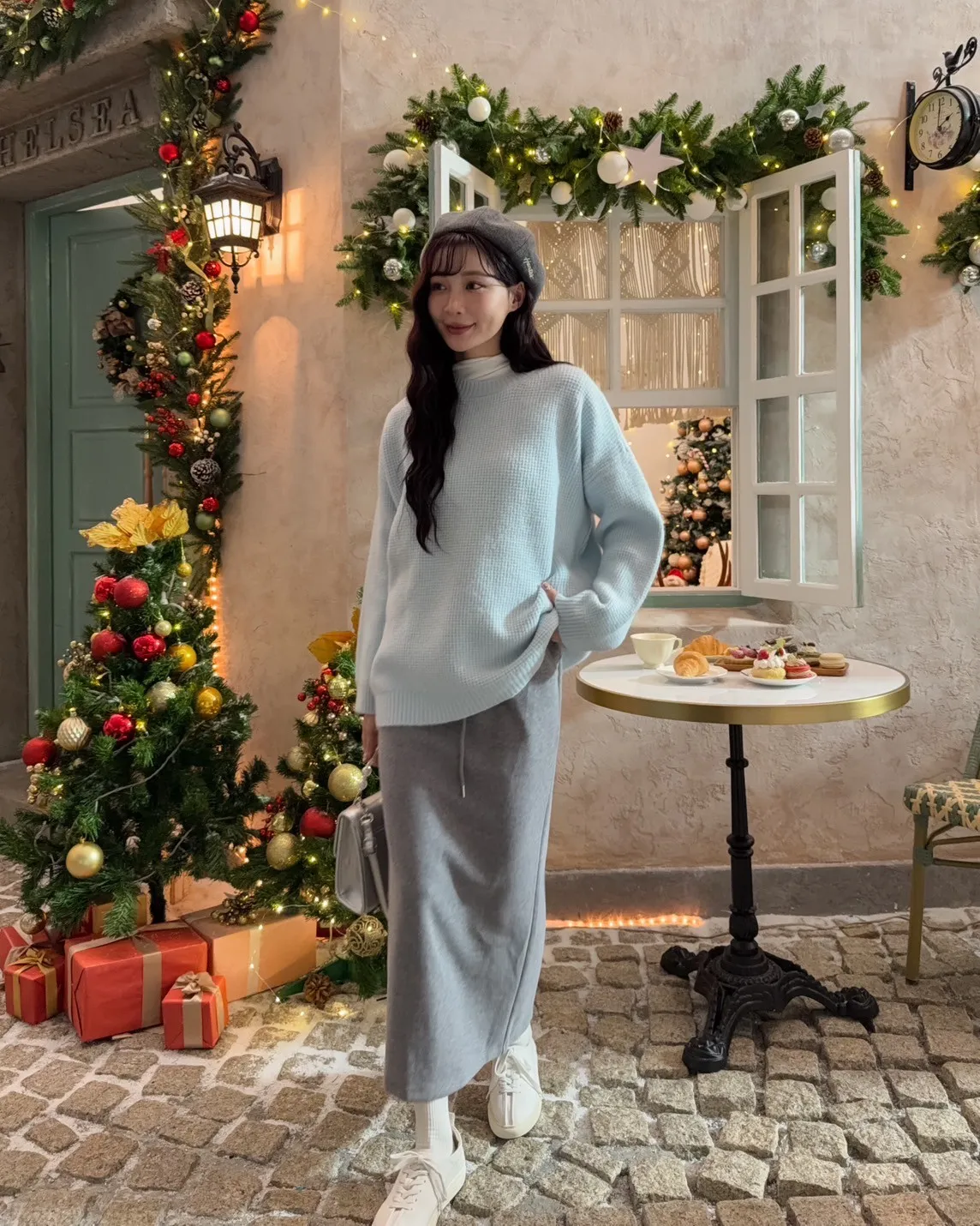 X0053小個選它!!後開衩毛呢抽繩直筒裙(米/咖啡/灰/黑)