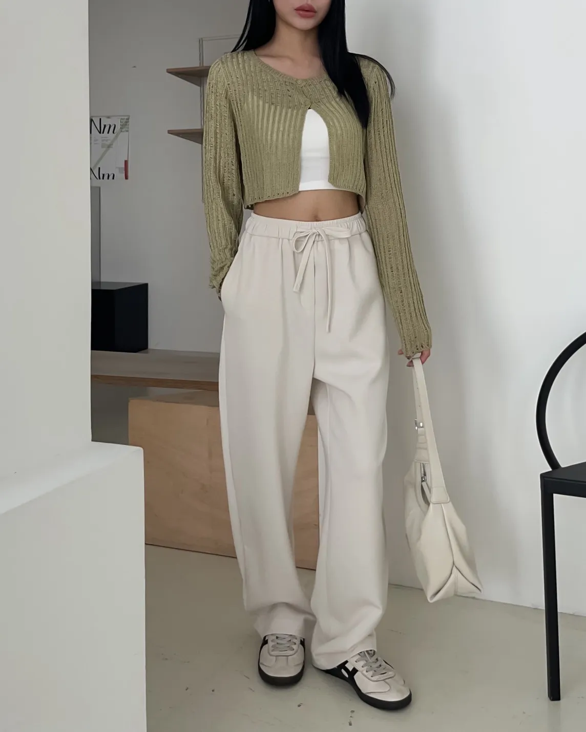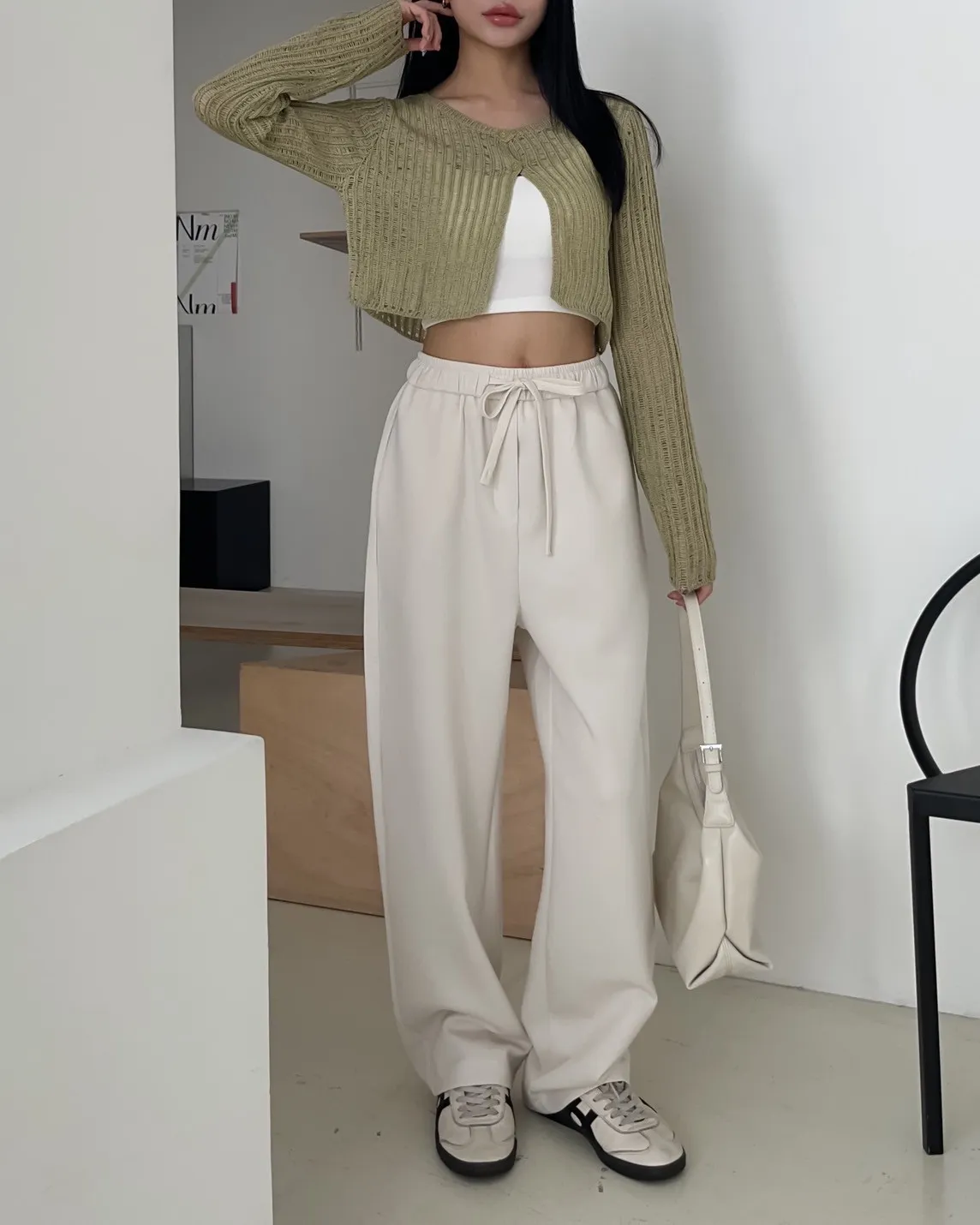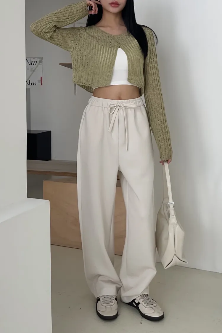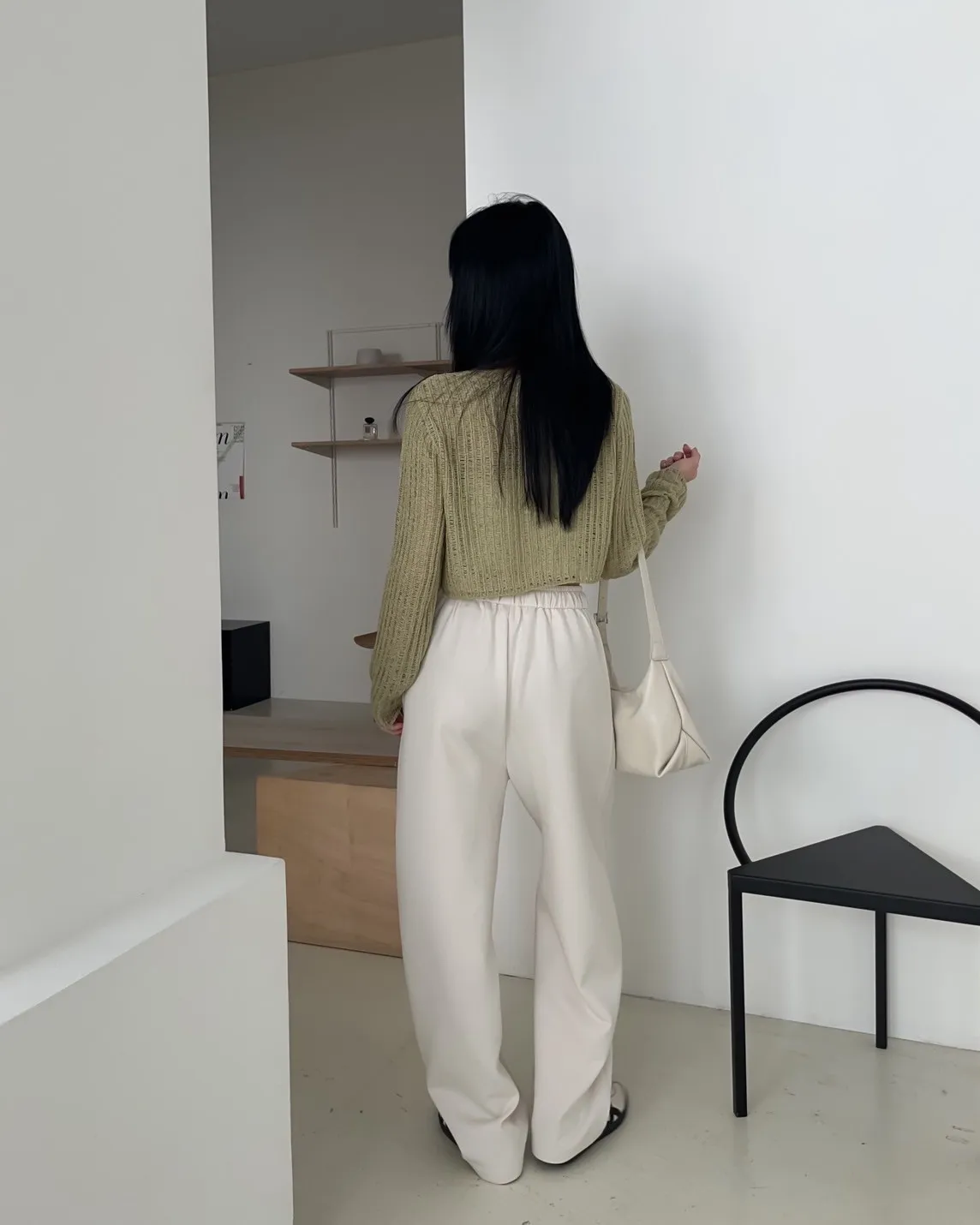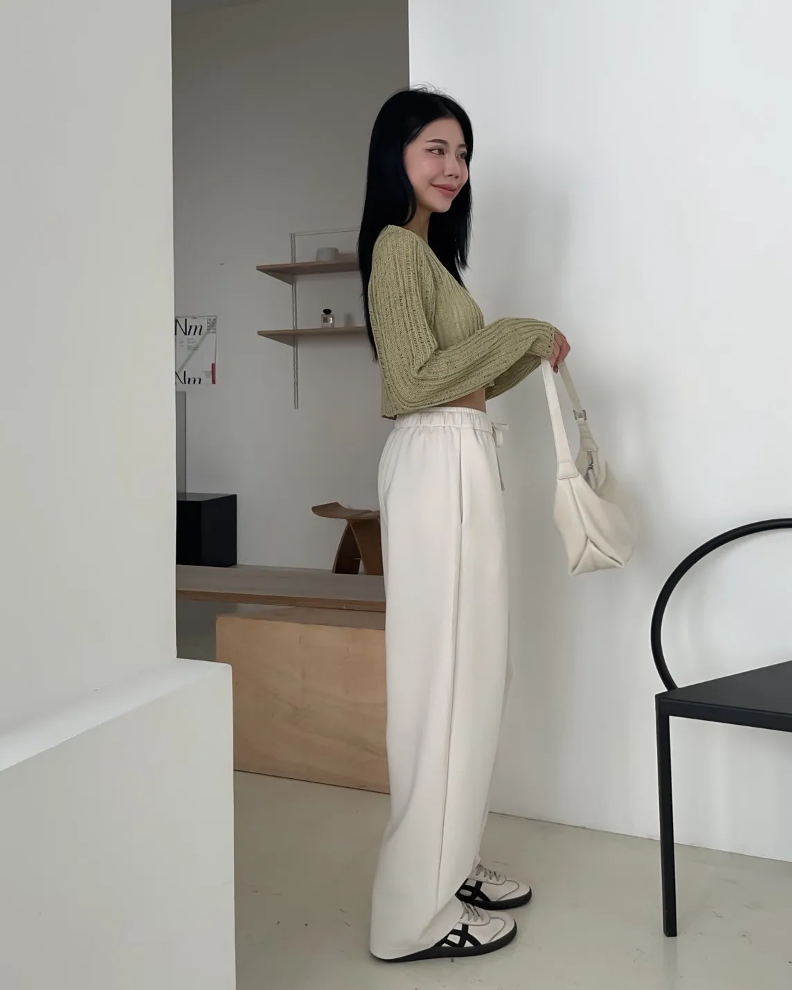 U0039粗繩羅紋QQ棉奶奶褲(米/灰綠/深灰/黑)