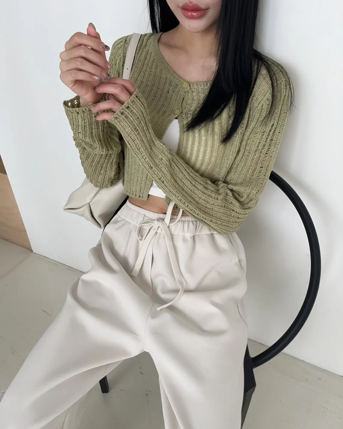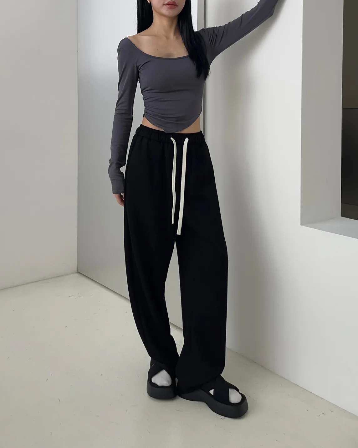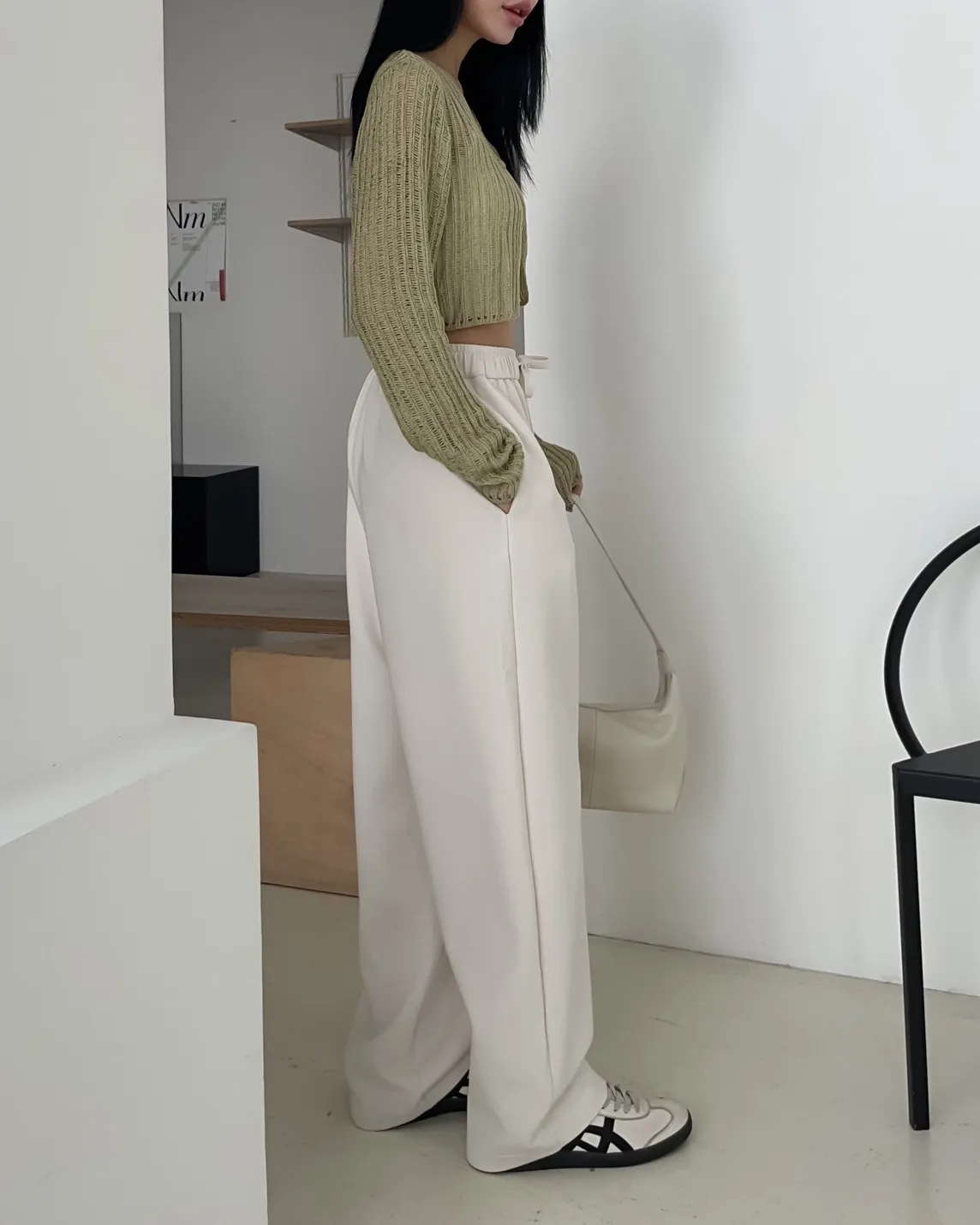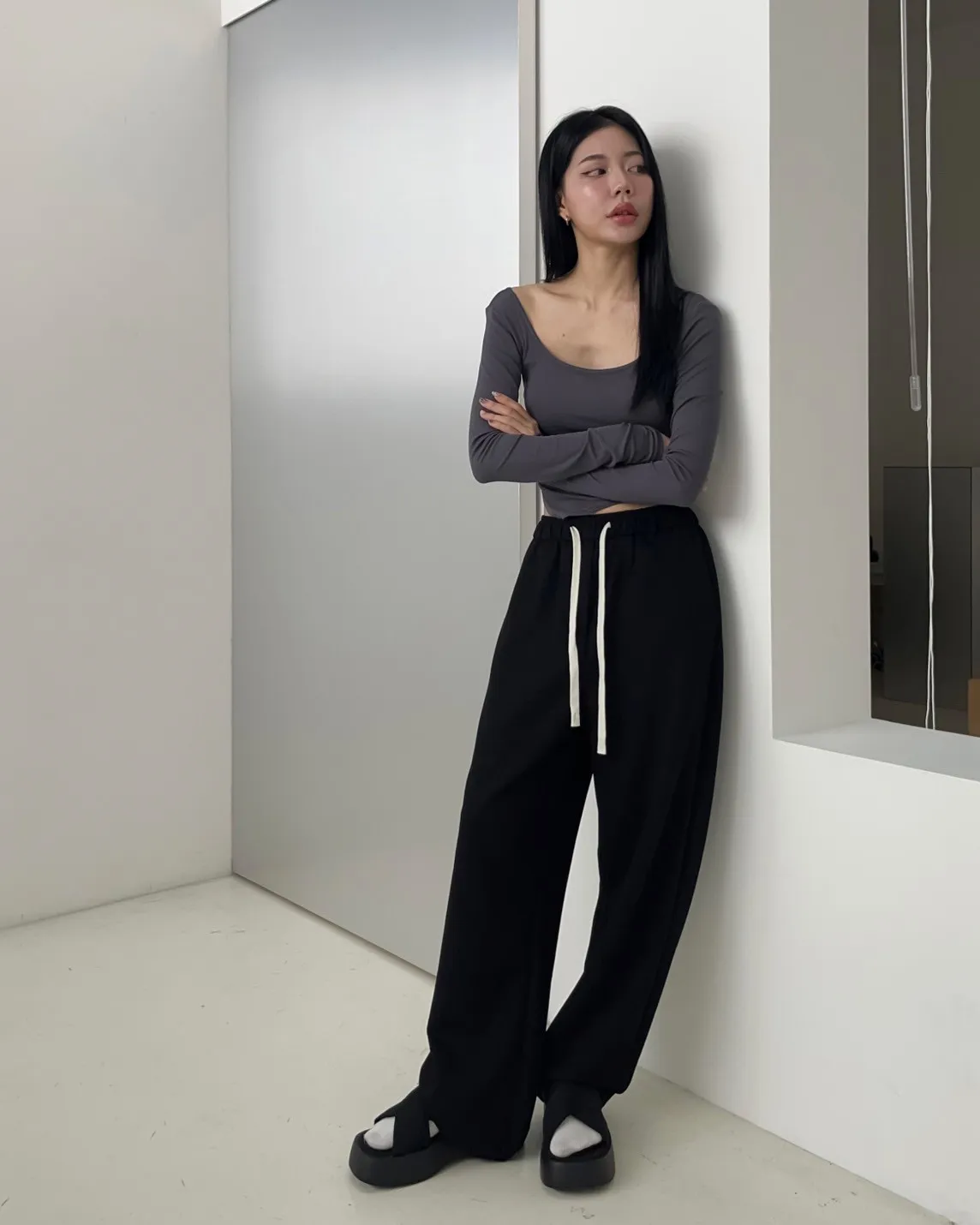 U0039粗繩羅紋QQ棉奶奶褲(米/灰綠/深灰/黑)