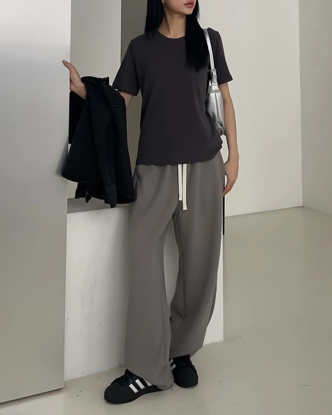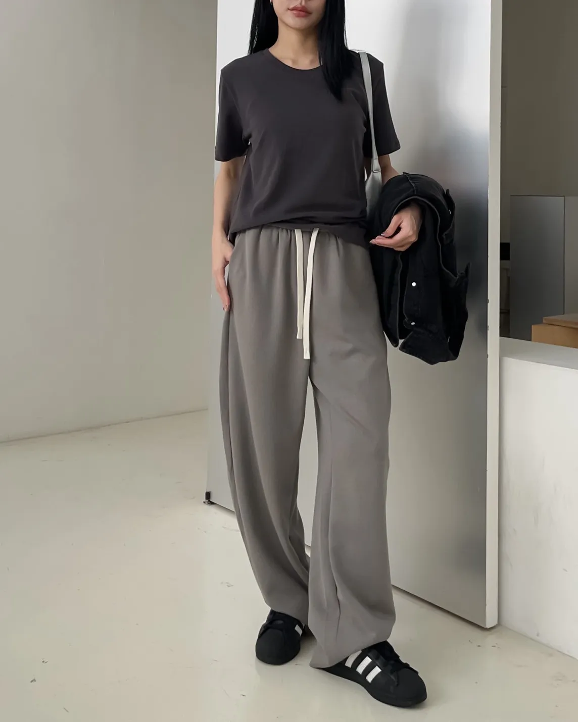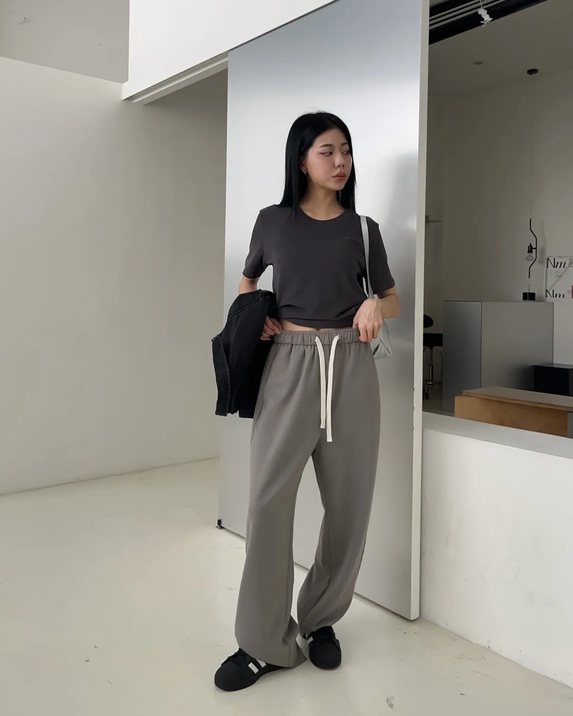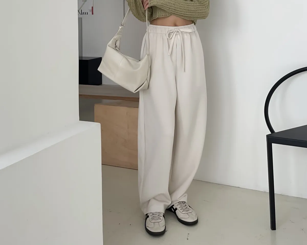 抽繩全鬆緊 建議尺寸S-L 兩側口袋 QQ太空棉 細細羅紋 粗棉繩 褲腳內縮可愛奶奶褲