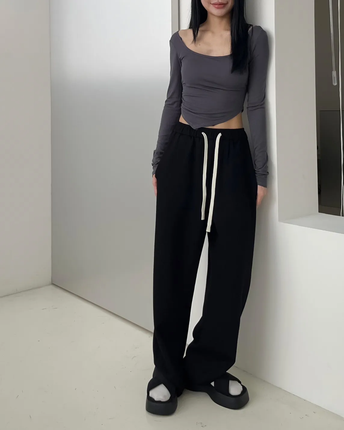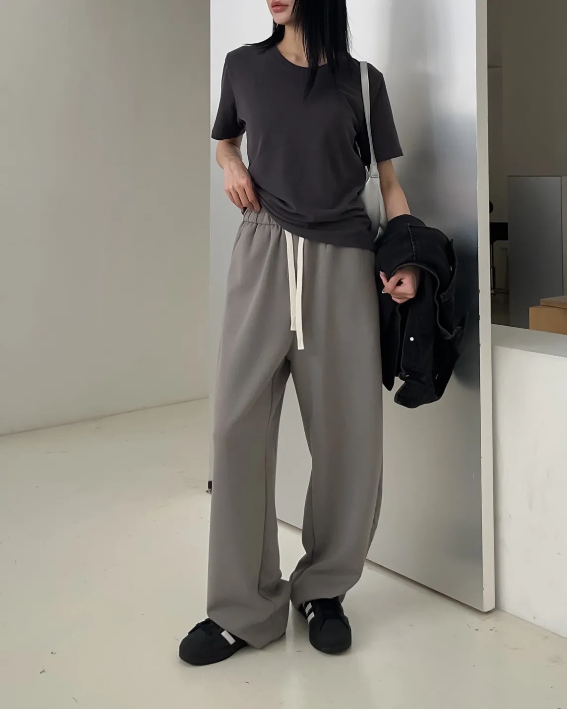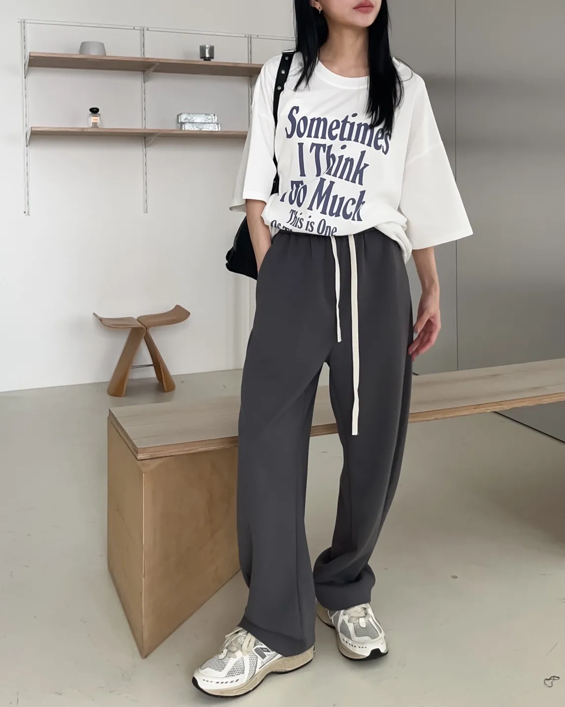 抽繩全鬆緊 建議尺寸S-L 兩側口袋 QQ太空棉 細細羅紋 粗棉繩 褲腳內縮可愛奶奶褲