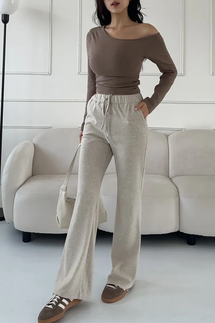 全鬆緊 建議尺寸S-L 兩側口袋 前綁帶 微喇叭褲型 表面短絨