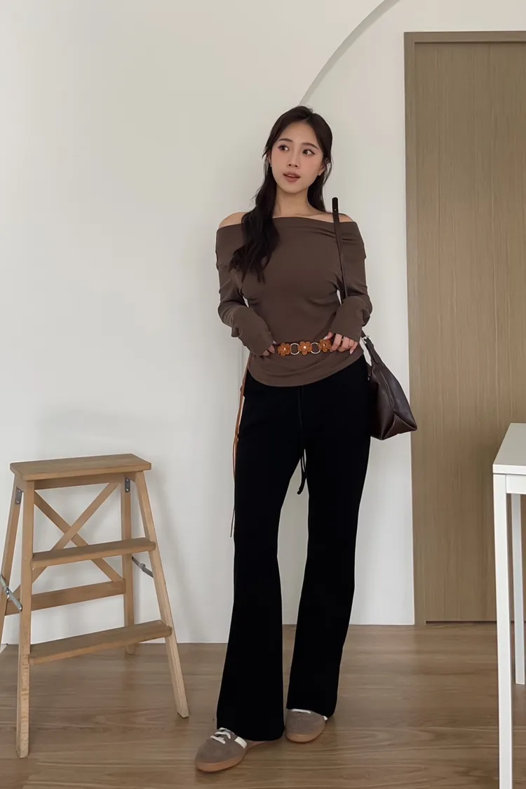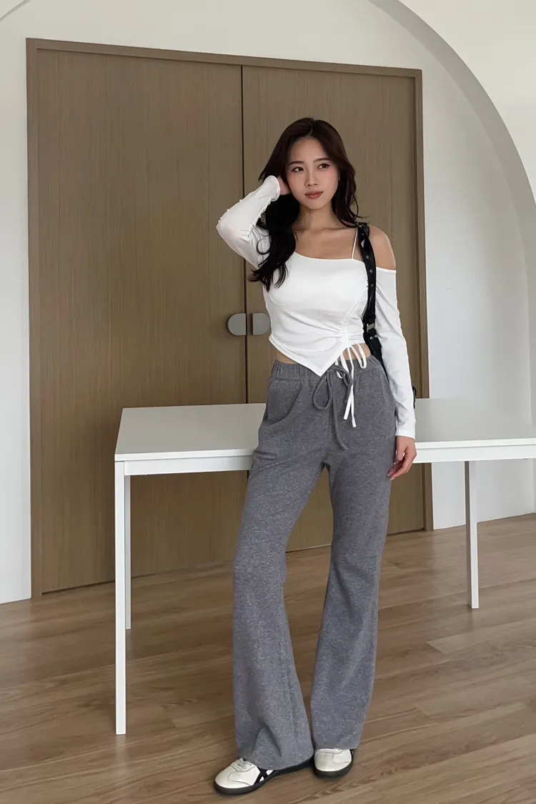 U0082修身微喇叭絨棉長褲(燕麥/灰/黑)