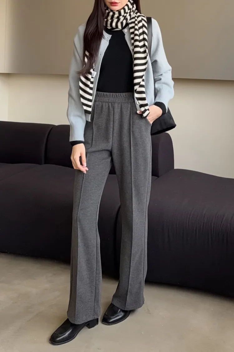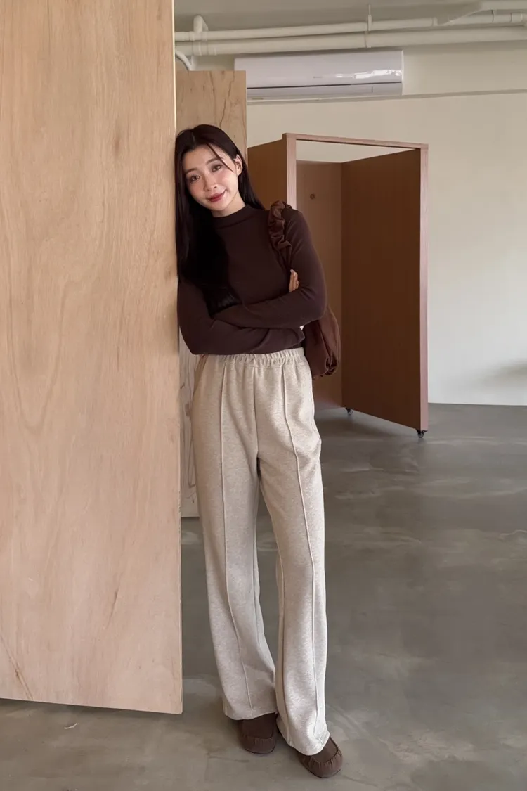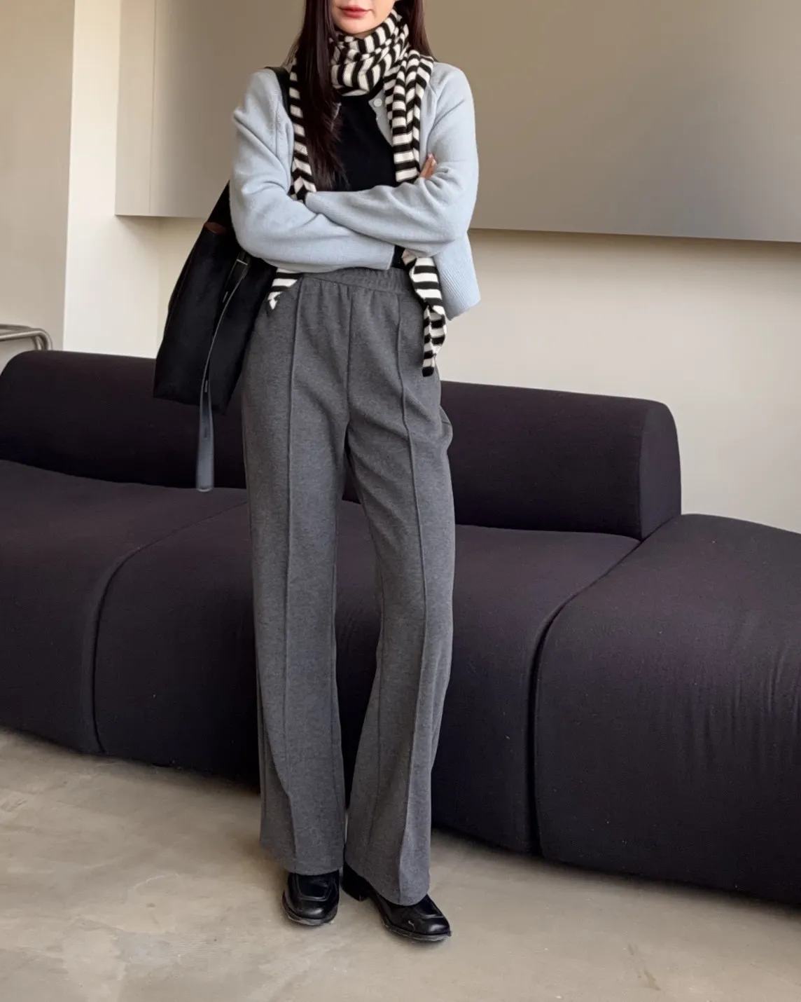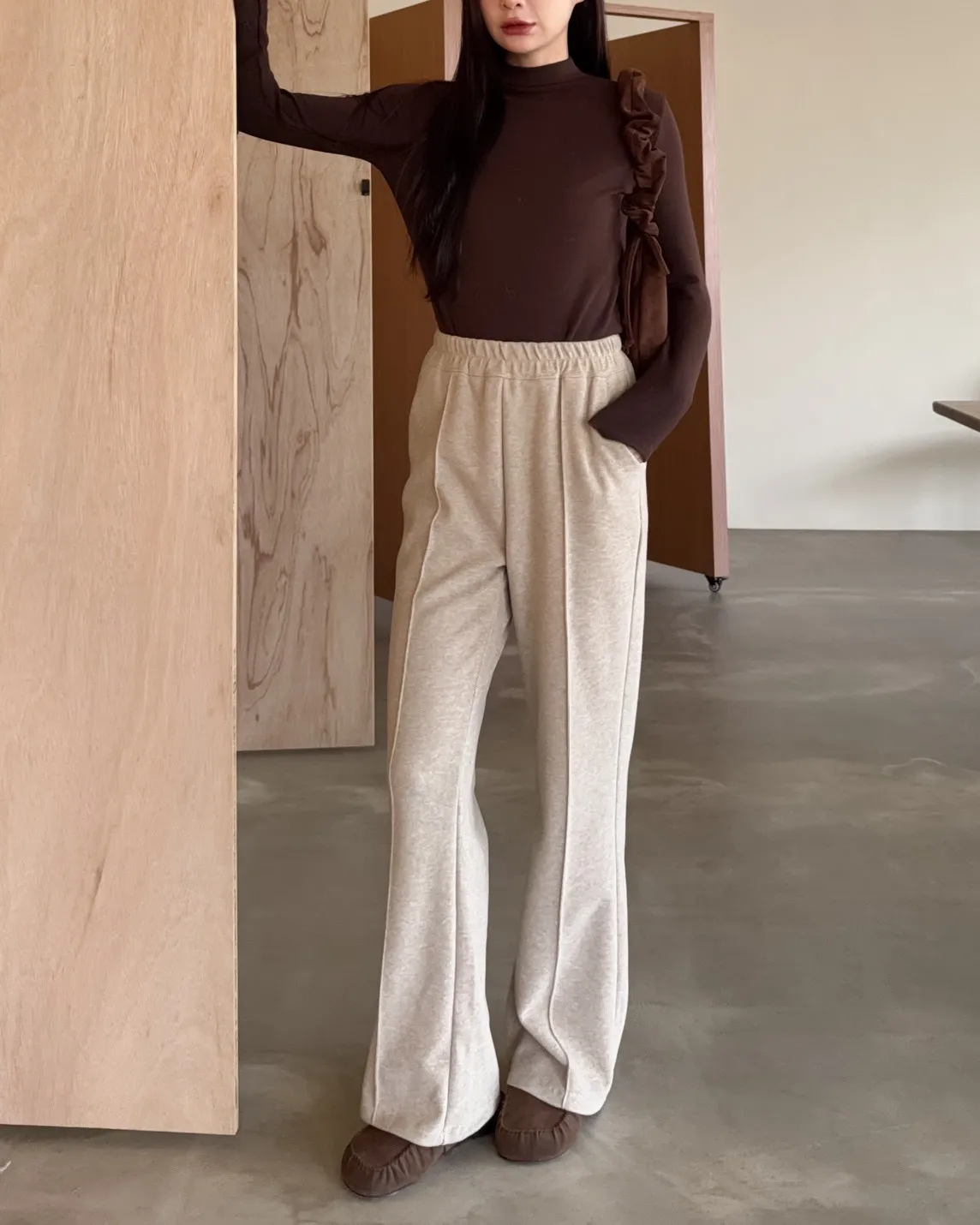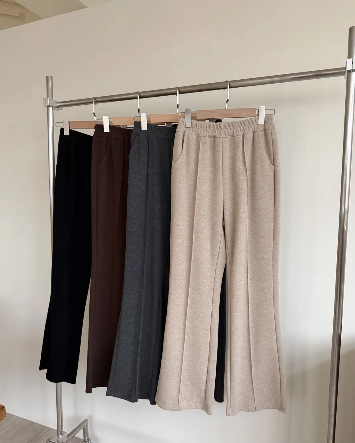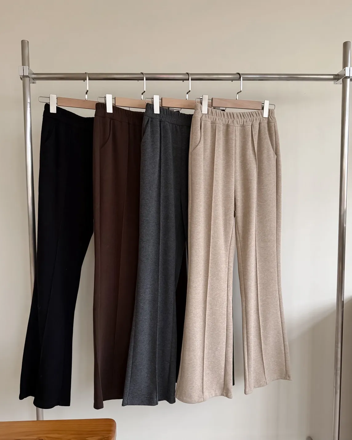 X0012長腿中線羊絨喇叭褲(燕麥/灰/咖啡/黑)