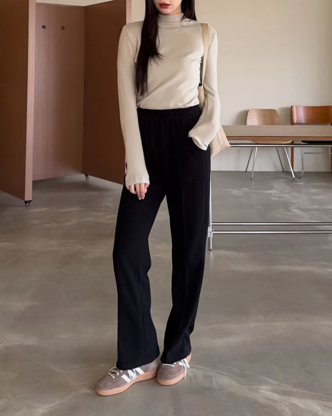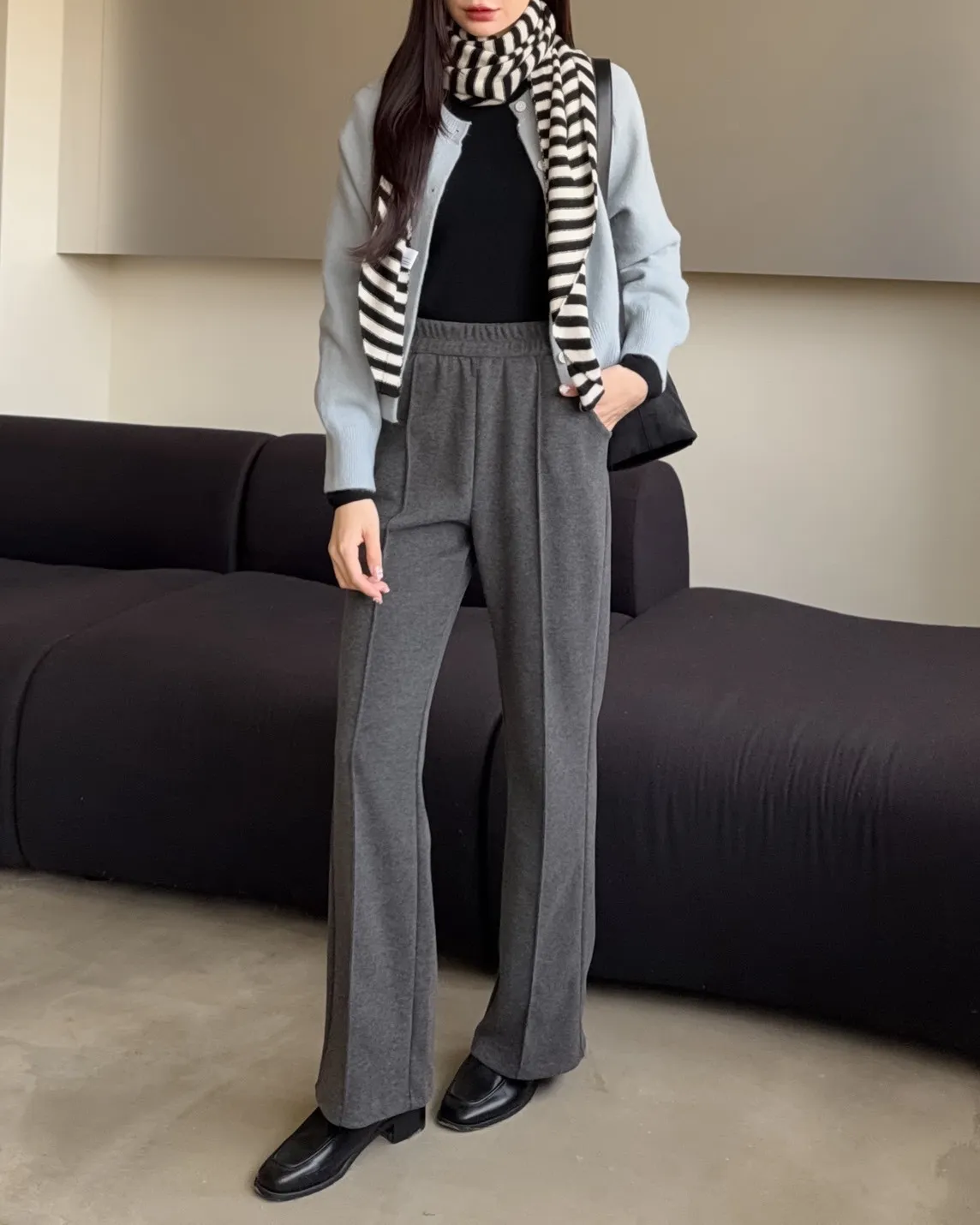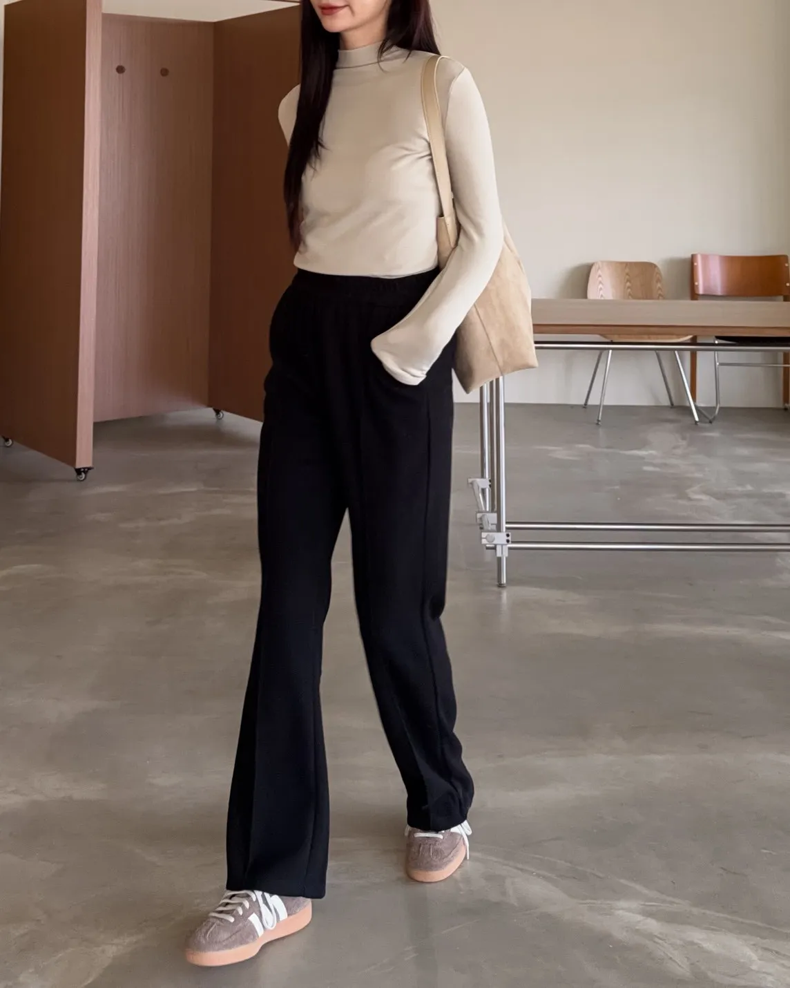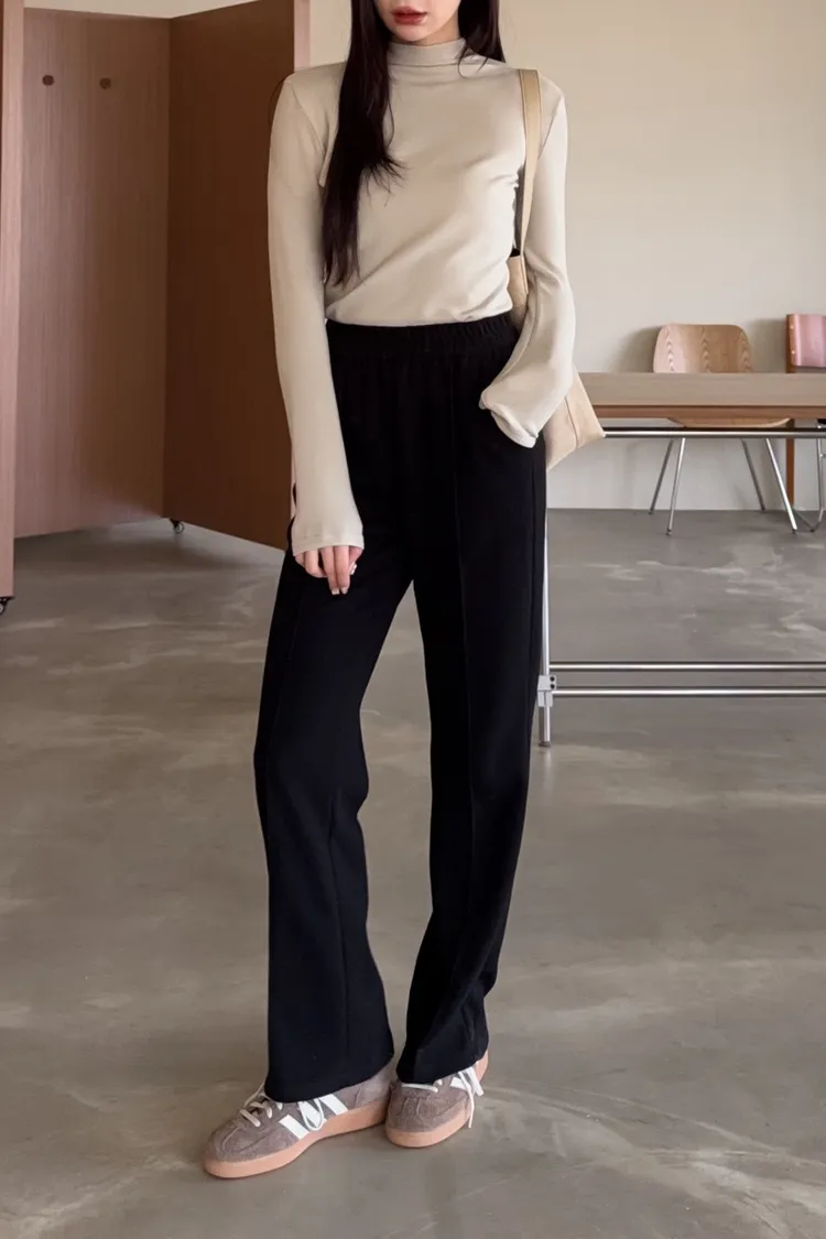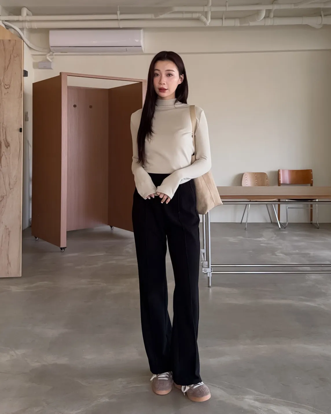 X0012長腿中線羊絨喇叭褲(燕麥/灰/咖啡/黑)