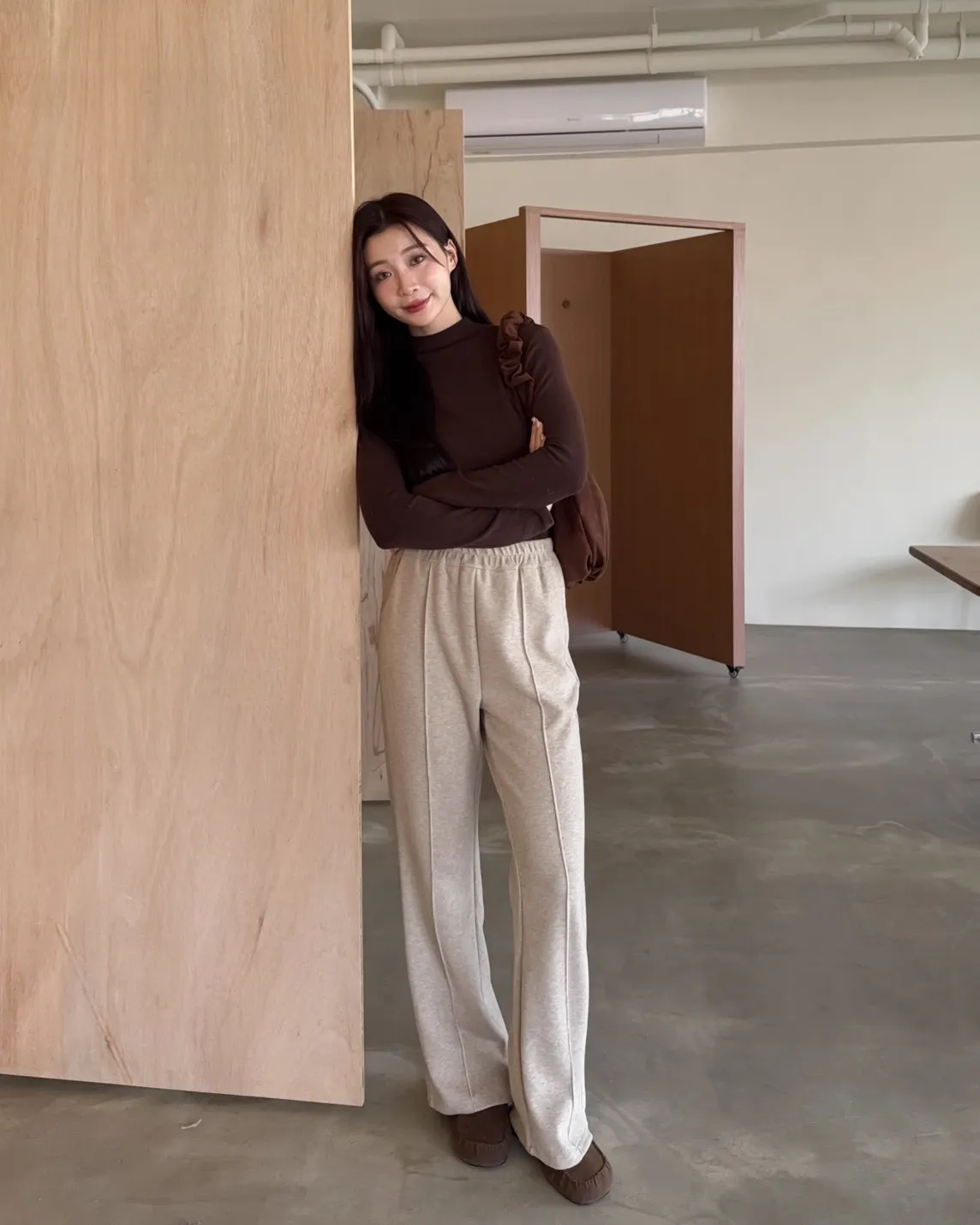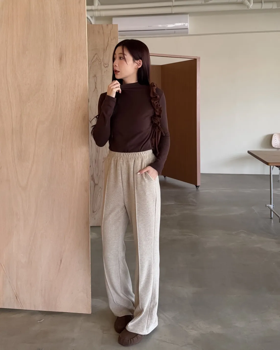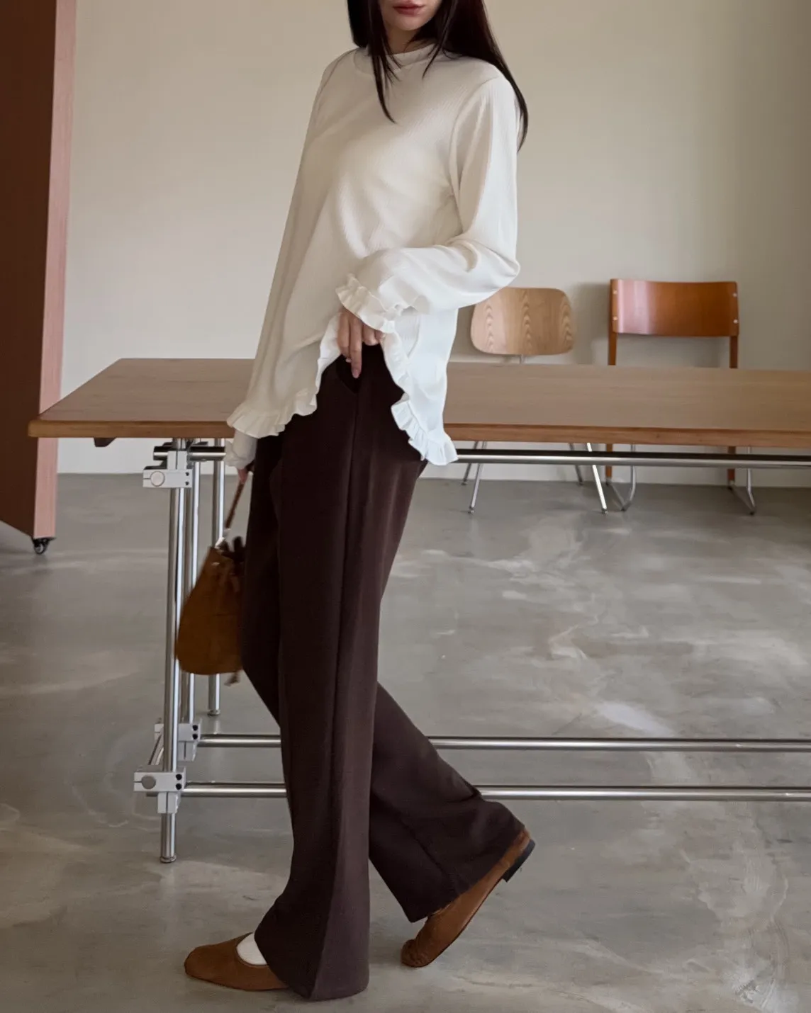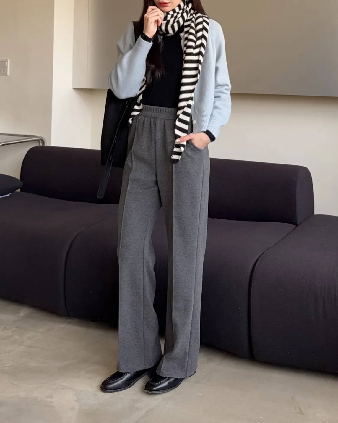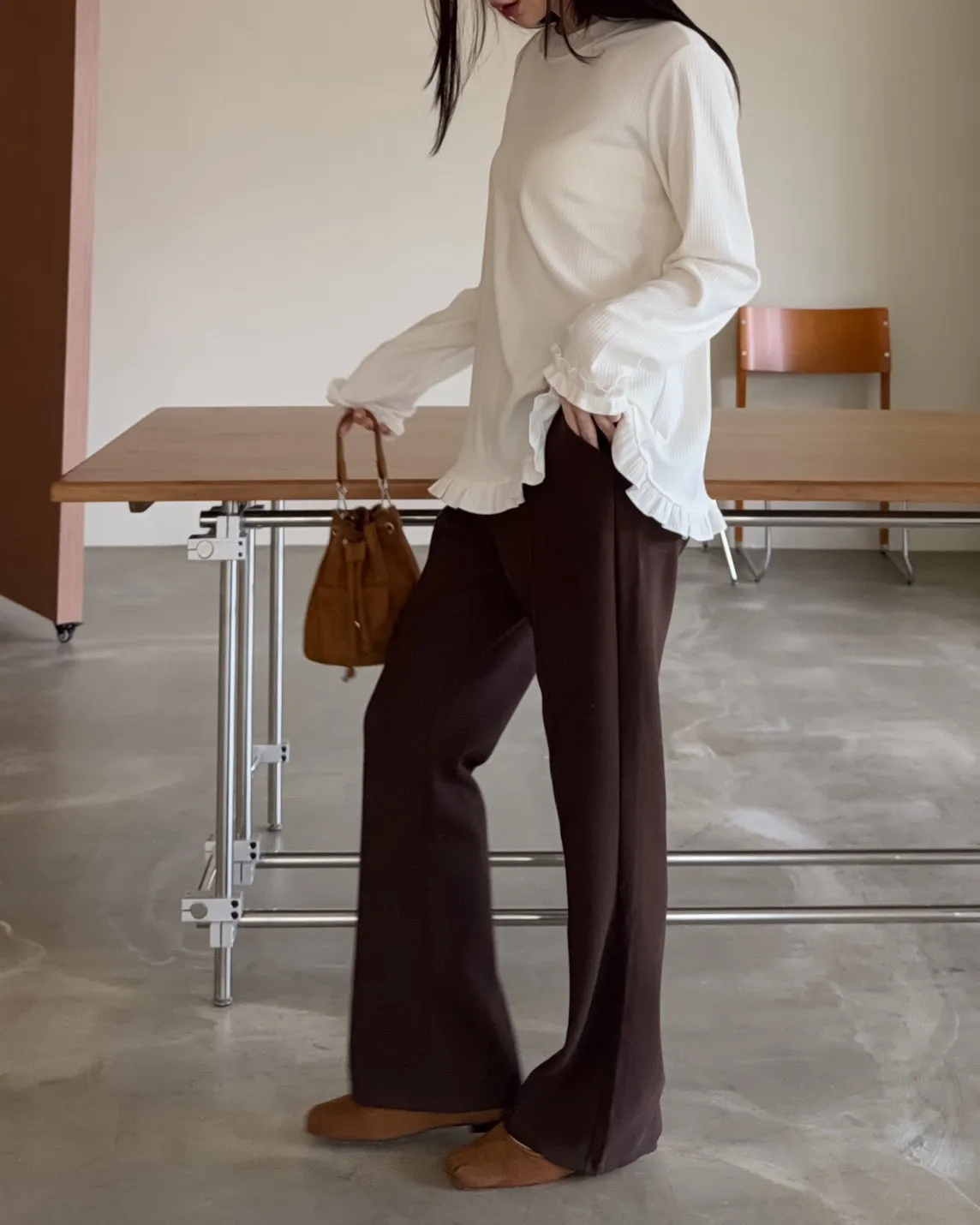 X0012長腿中線羊絨喇叭褲(燕麥/灰/咖啡/黑)