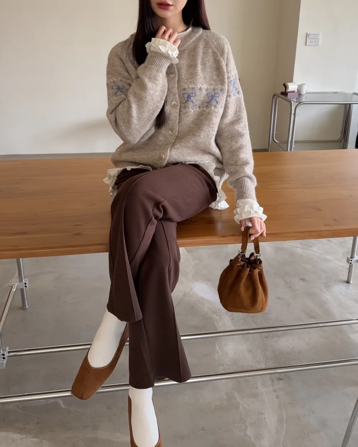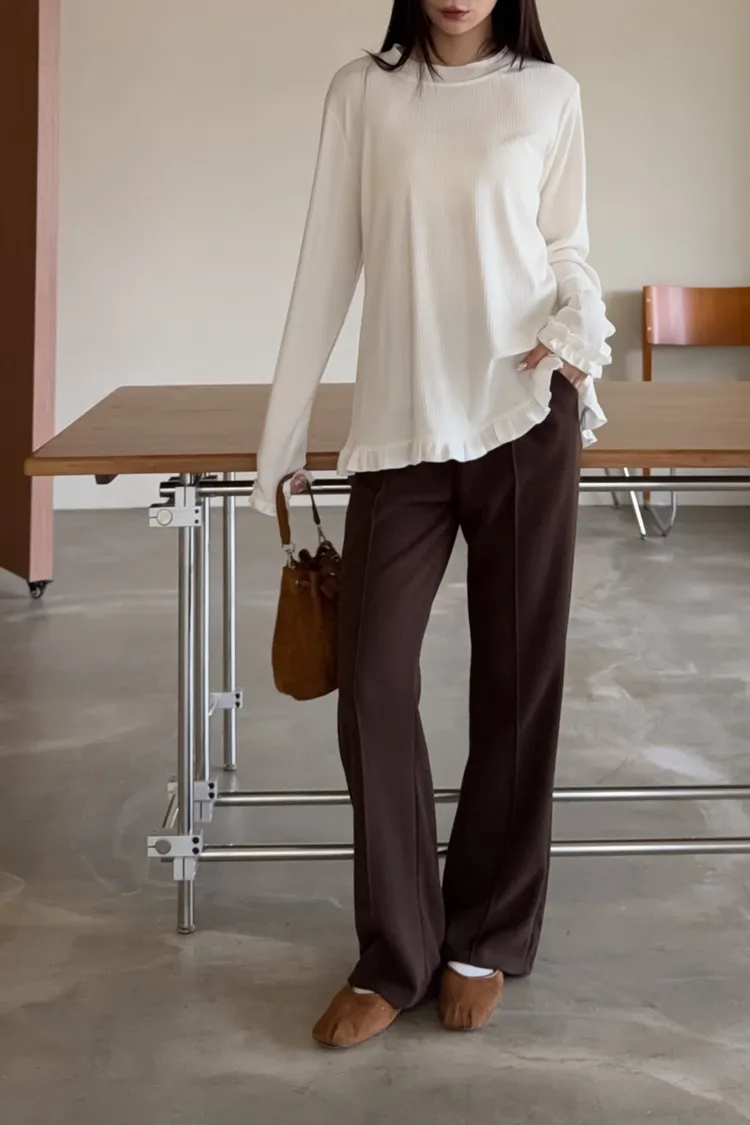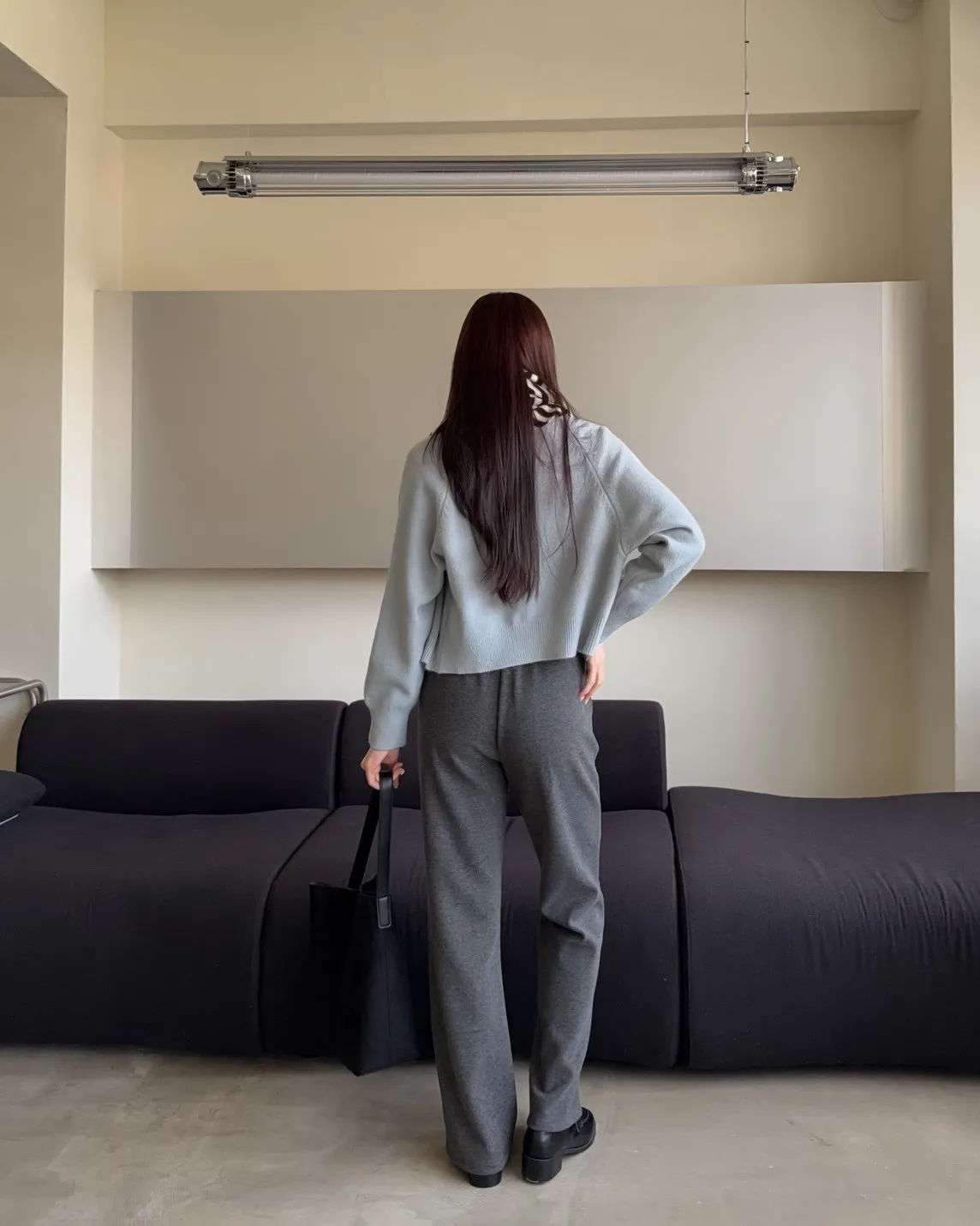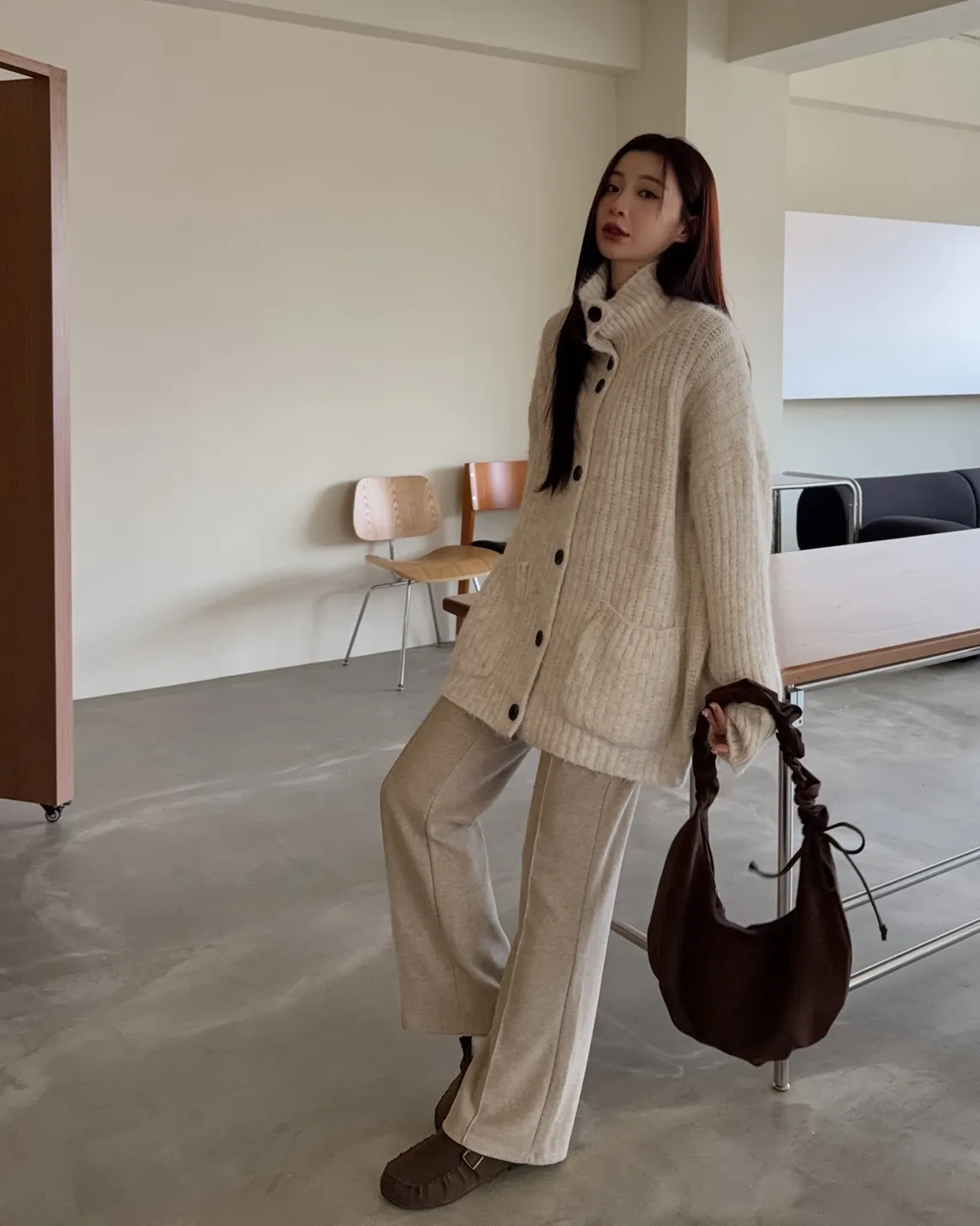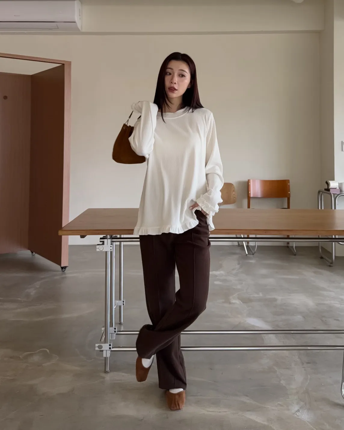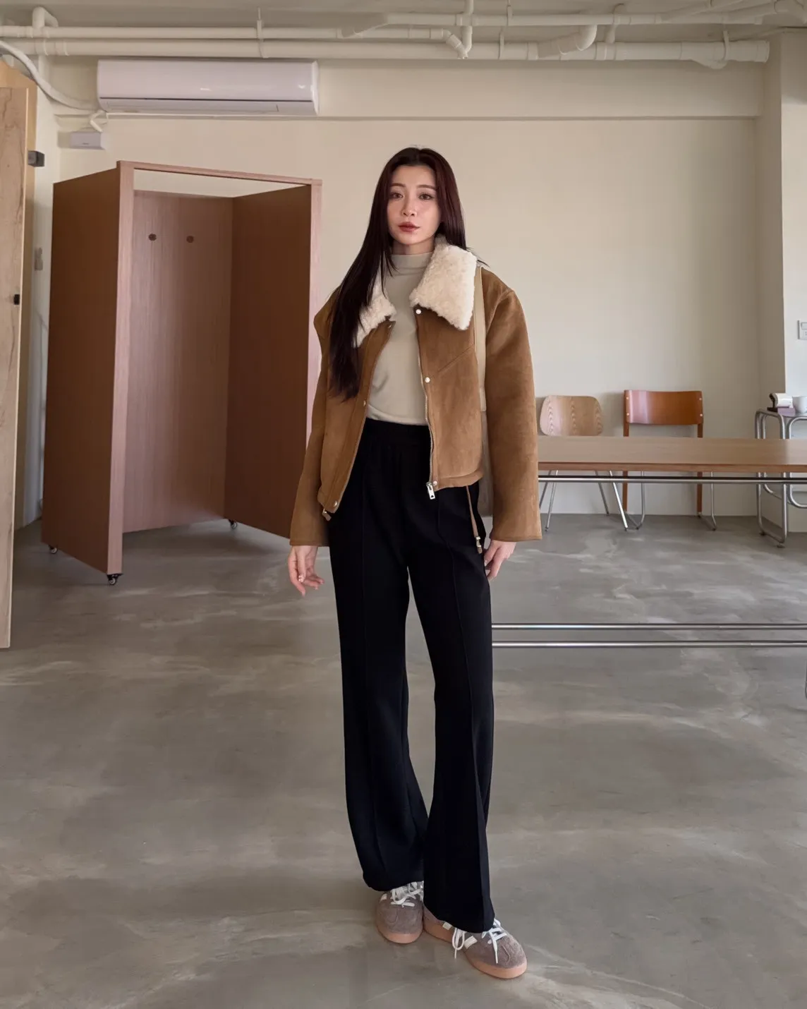 X0012長腿中線羊絨喇叭褲(燕麥/灰/咖啡/黑)
