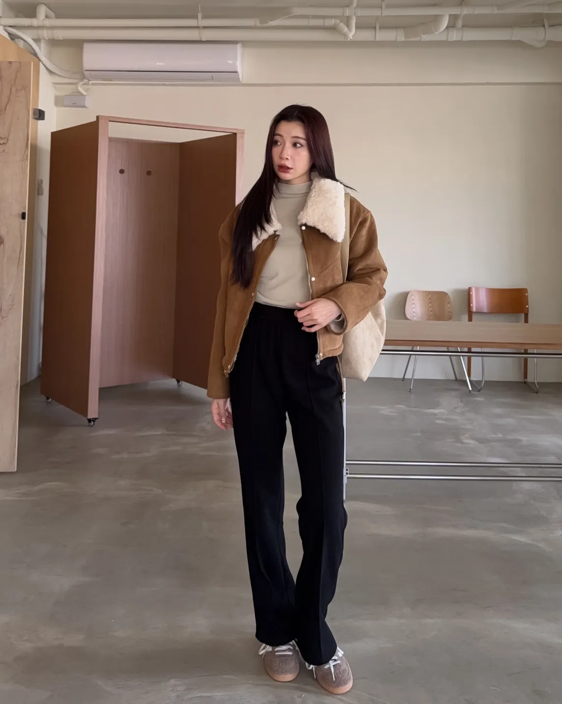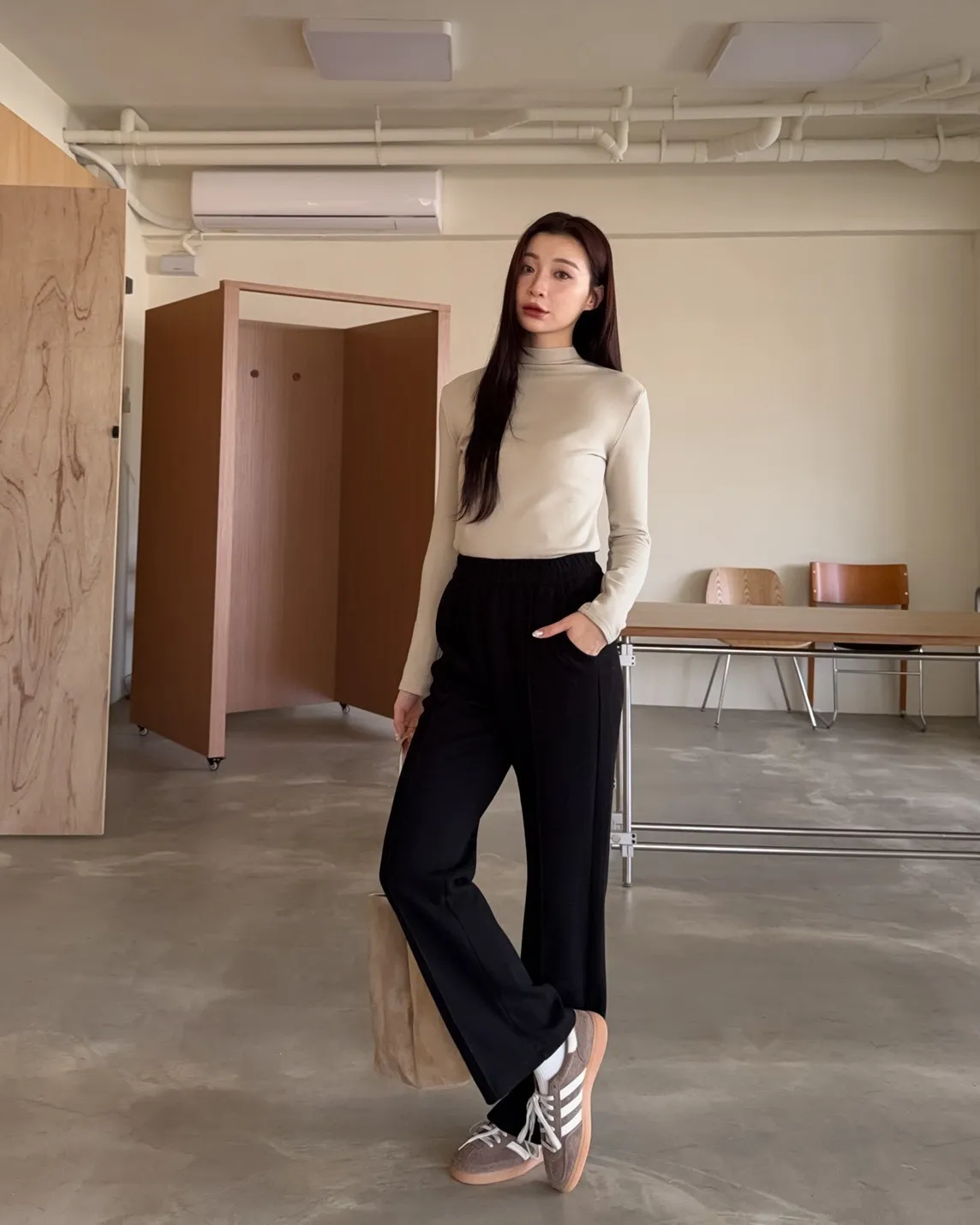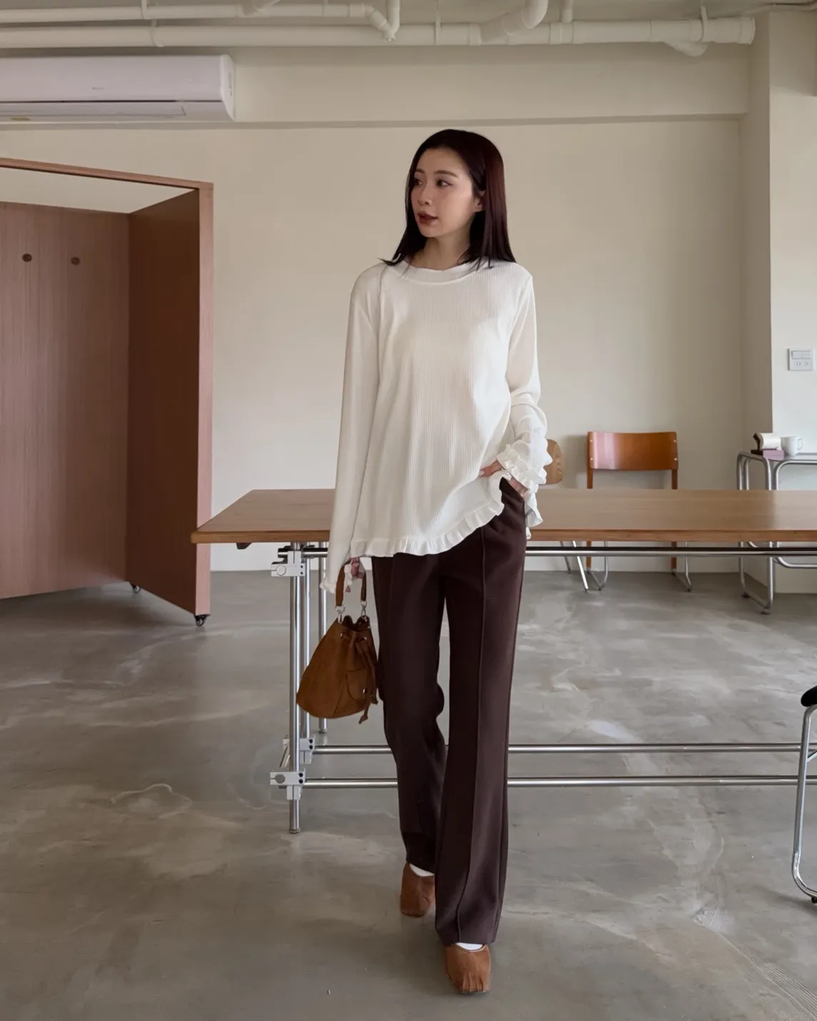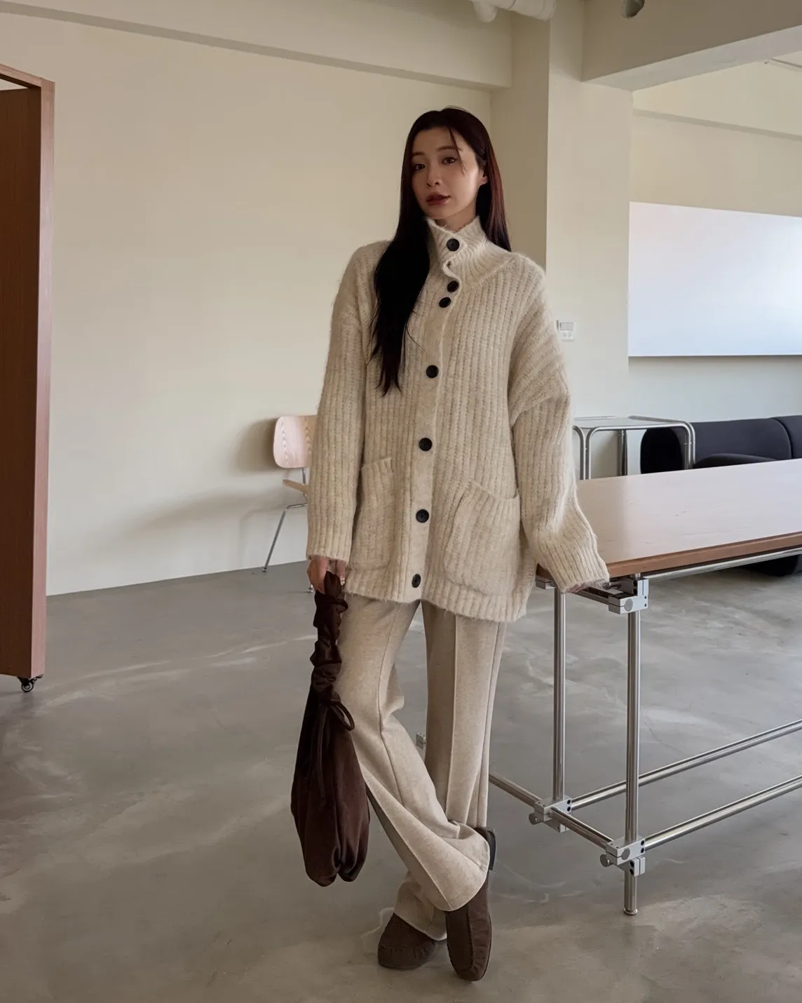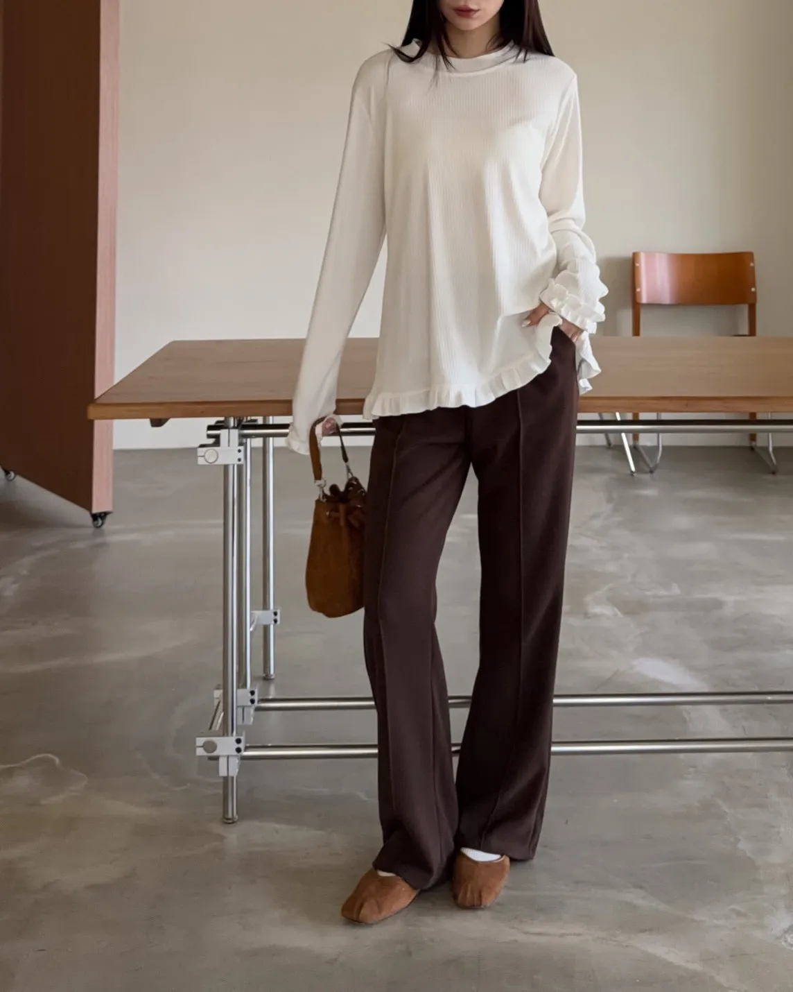 X0012長腿中線羊絨喇叭褲(燕麥/灰/咖啡/黑)