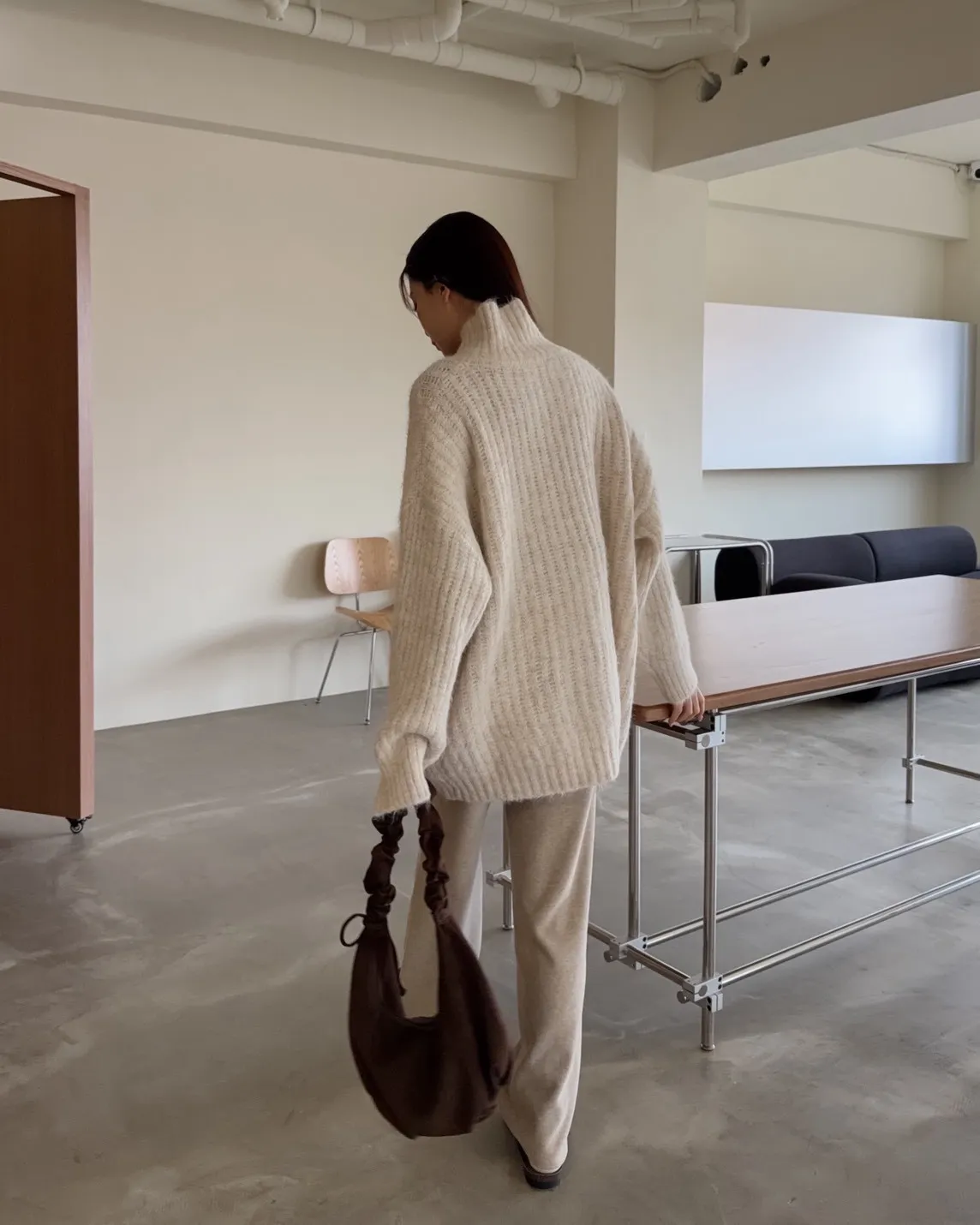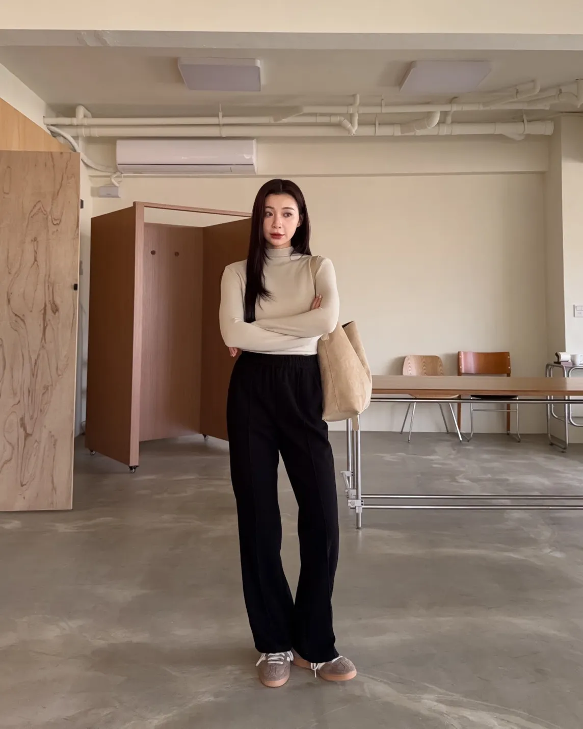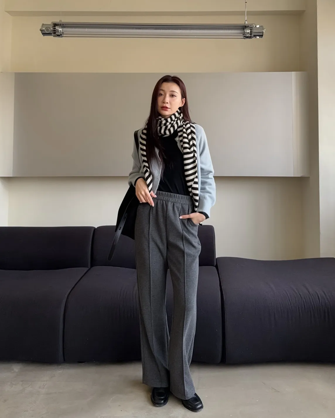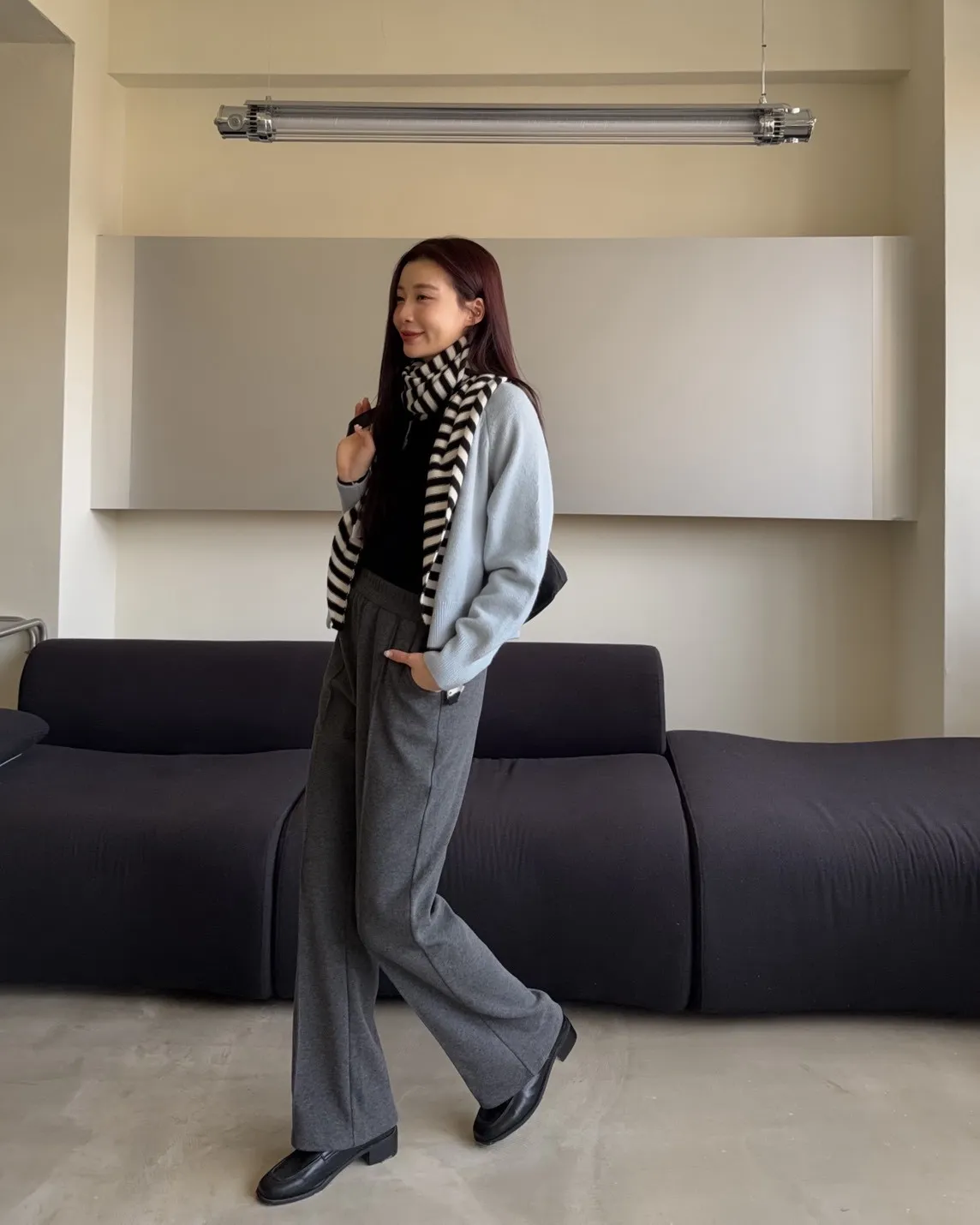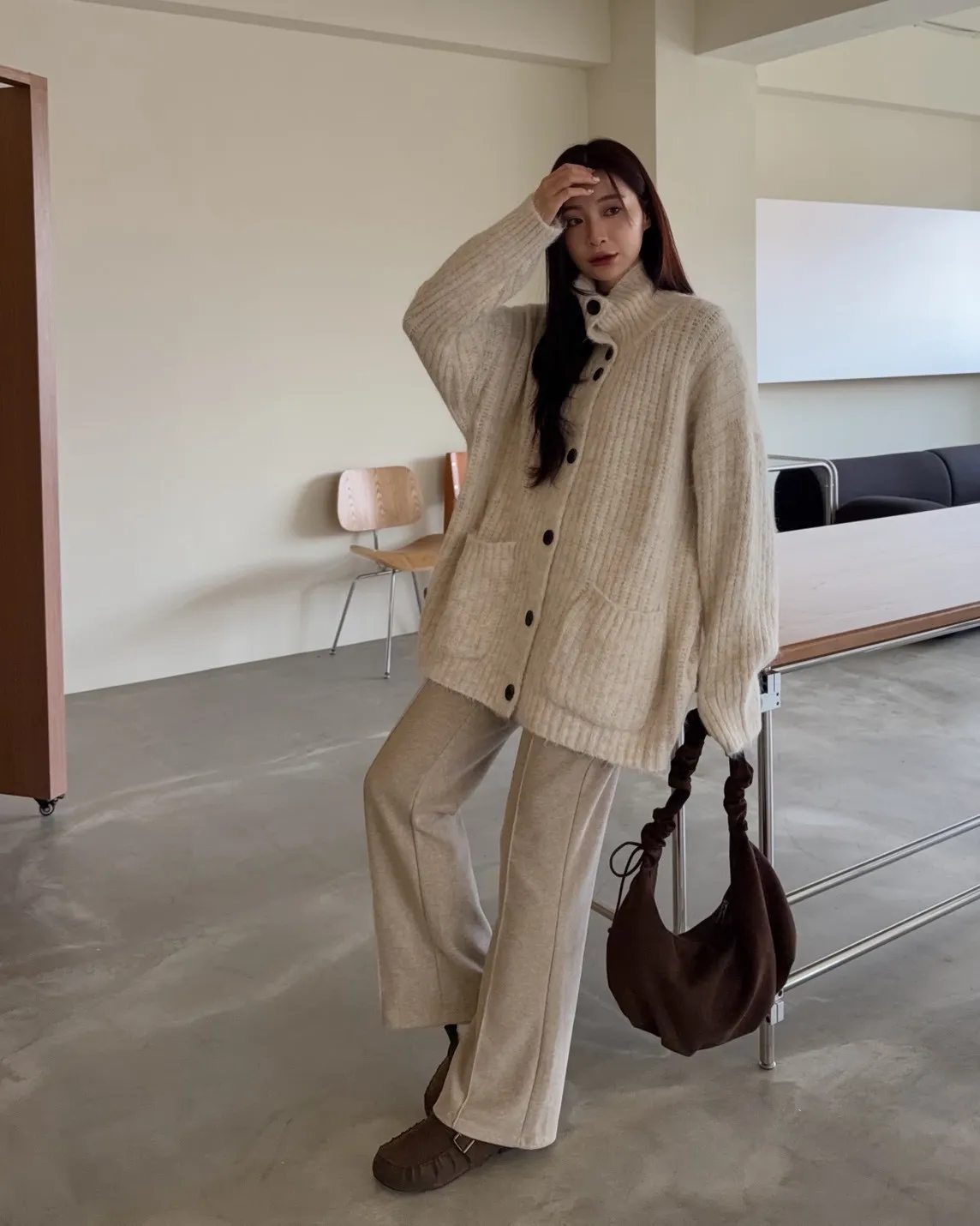 X0012長腿中線羊絨喇叭褲(燕麥/灰/咖啡/黑)