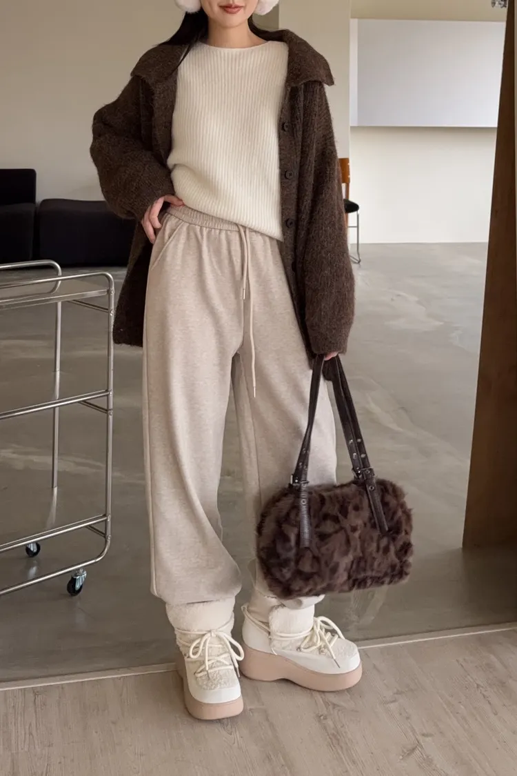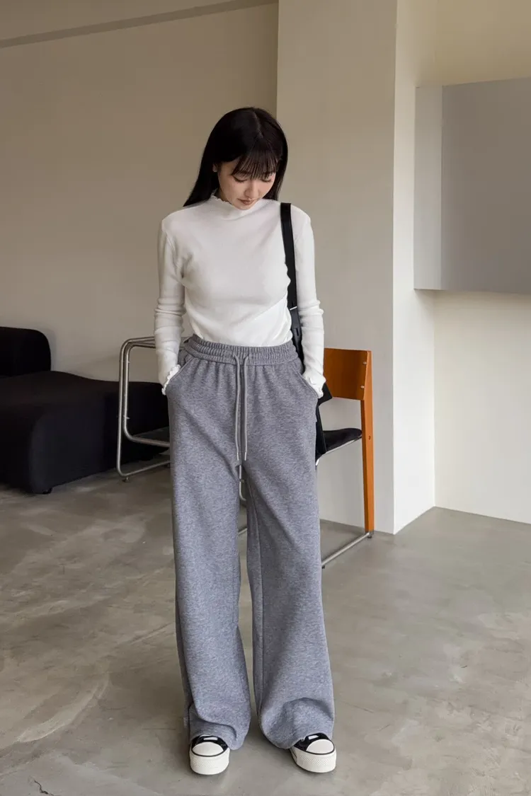 全鬆緊 建議尺寸S-大M小L 兩側口袋 小直筒版型 內刷毛